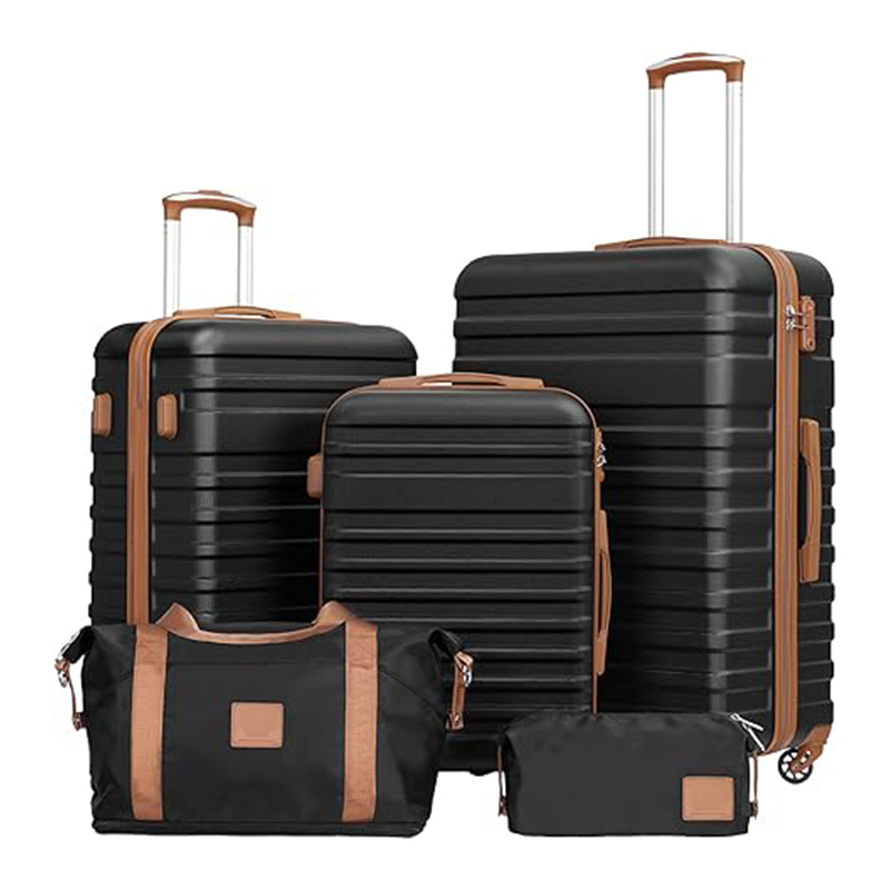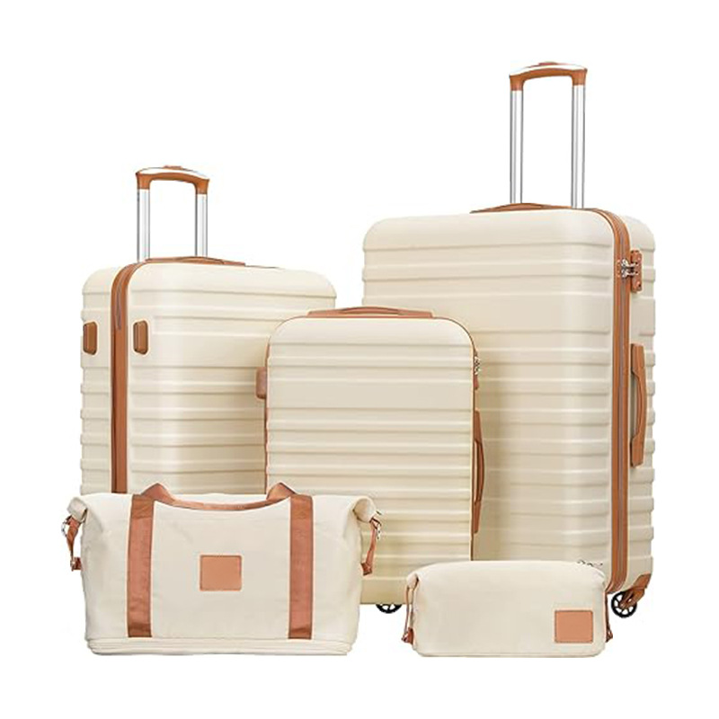소스 제조업체 5피스 지퍼 트롤리 케이스, 무소음 범용 휠 비밀번호 탑승 케이스, 학생 여행 가방