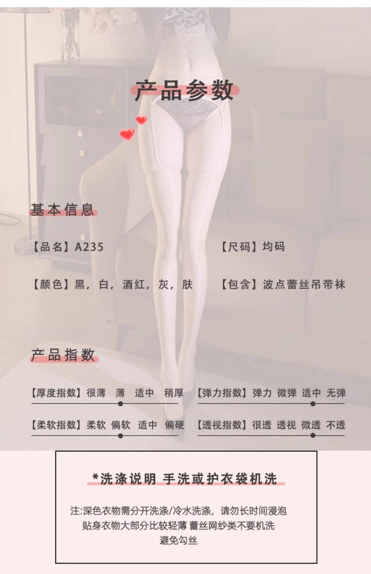 • 레이스 도트 멜빵 스타킹[블랙]
