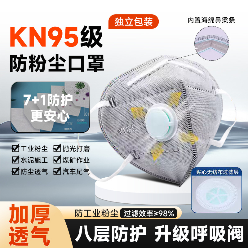 Kn95 마스크 먼지 마스크 활성화된 탄소 호흡 밸브 반대로 산업 먼지 분리 포장 마스크 도매 무료 배송