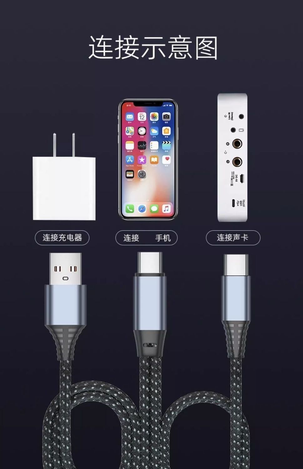 라이브 방송 사운드 카드 OTG 케이블에 적합 Android Apple 휴대폰 otg 변환 측면 충전 및 라이브 방송 충전 케이블스토어 가기