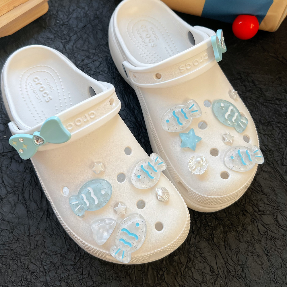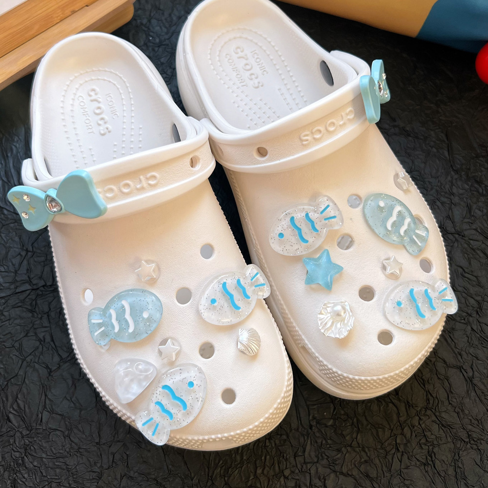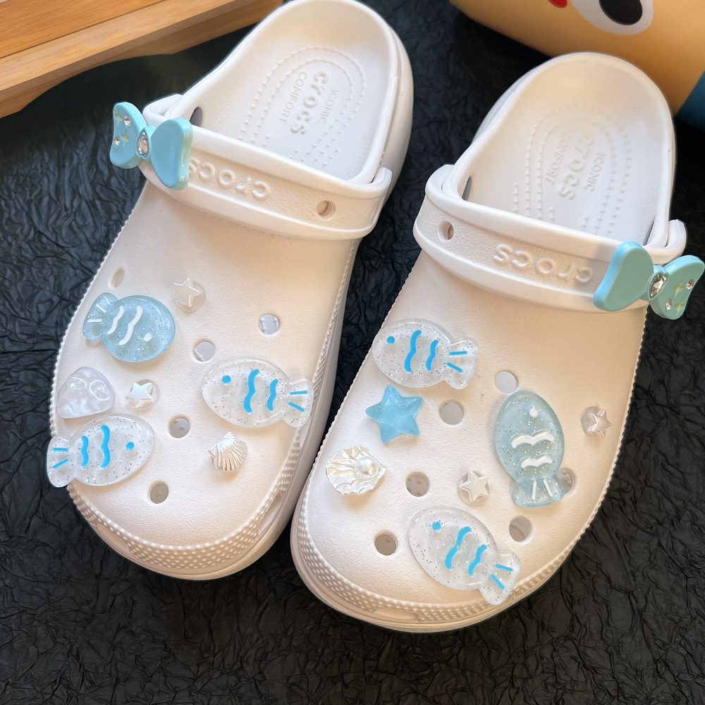 Croc 신발 액세서리 신발 꽃 귀여운 만화 고양이 파란색 물고기 신발 버클 diy 분리형 갑피 장식 액세서리스토어 가기