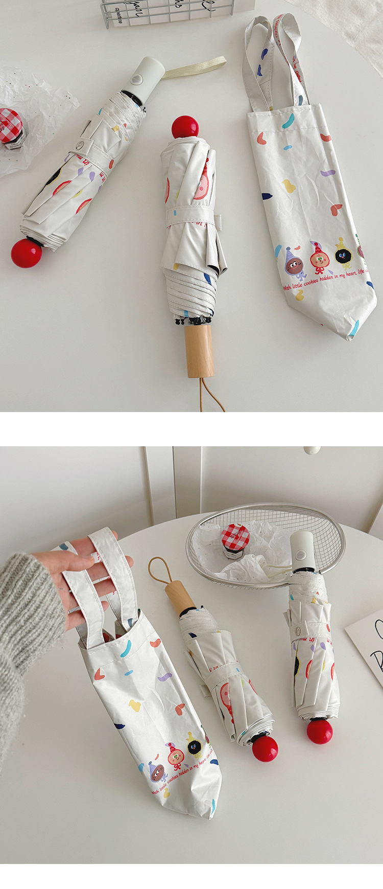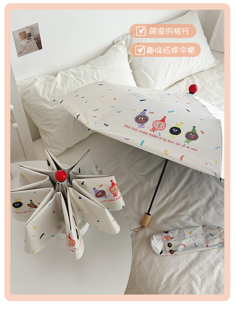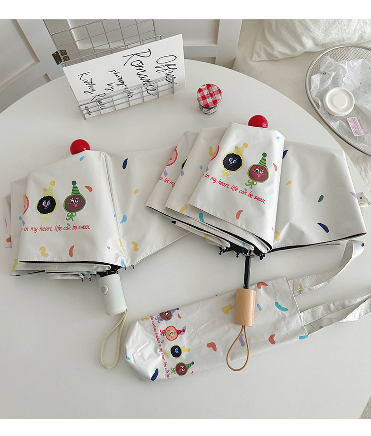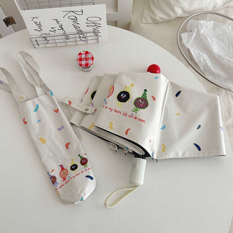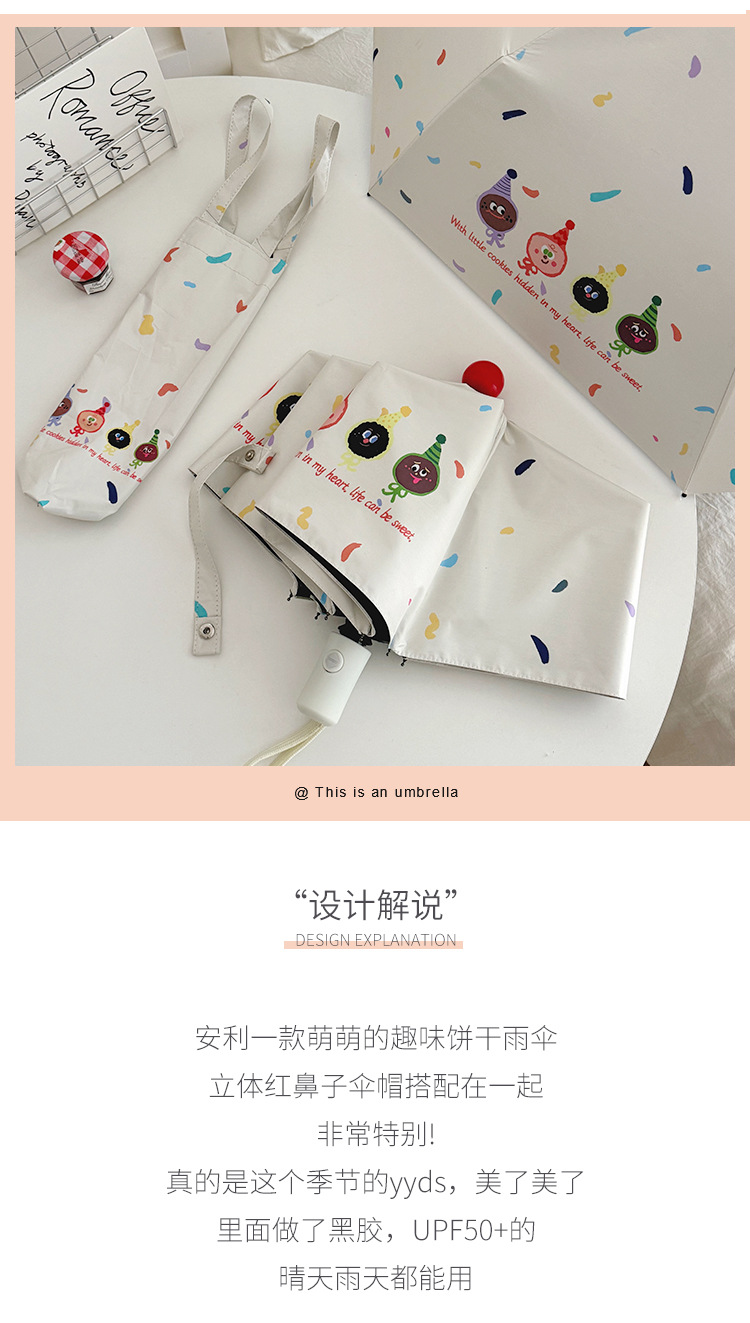 재미있는 비스킷 빨간 코 자동 우산 맑고 비 이중 사용 검은 고무 태양 보호 자외선 보호 태양 우산스토어 가기