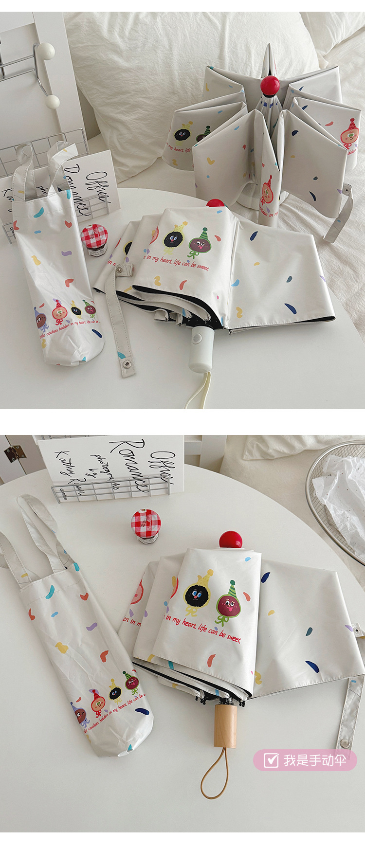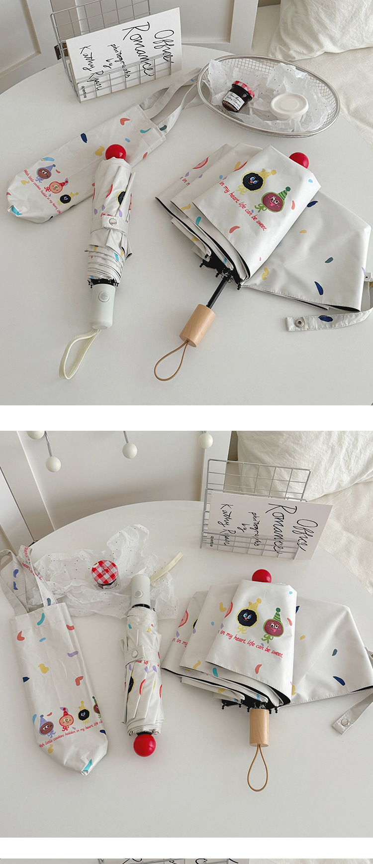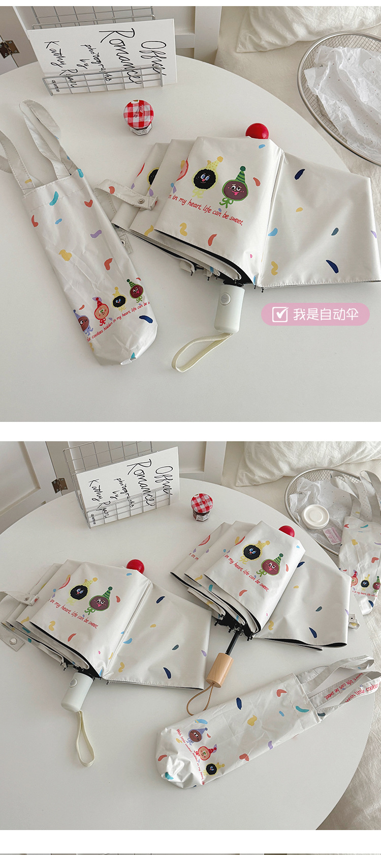 재미있는 비스킷 빨간 코 자동 우산 맑고 비 이중 사용 검은 고무 태양 보호 자외선 보호 태양 우산스토어 가기