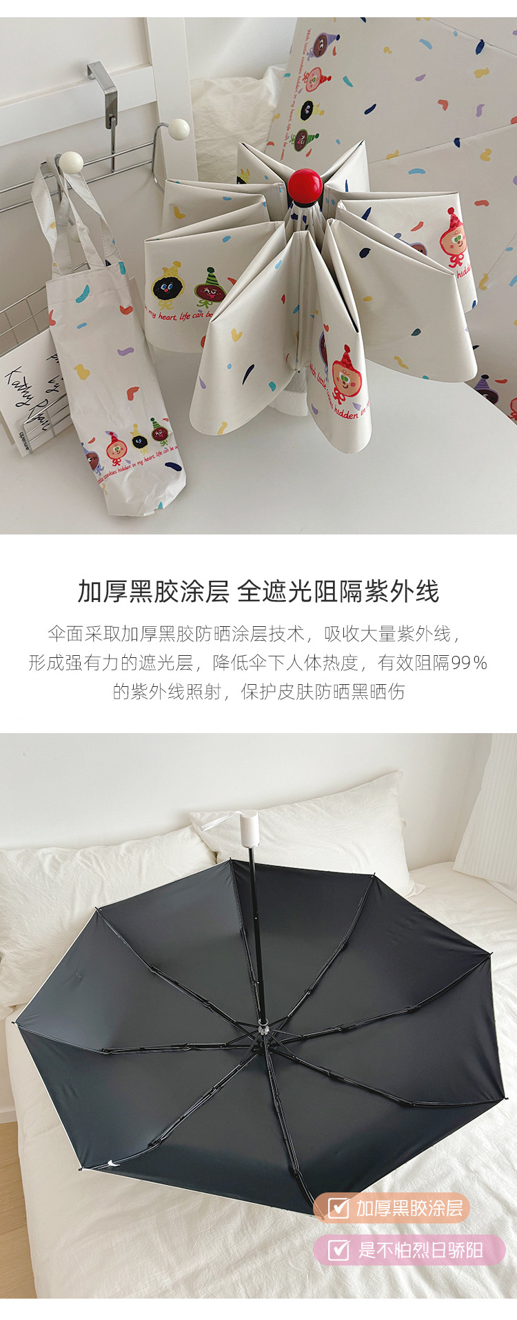 재미있는 비스킷 빨간 코 자동 우산 맑고 비 이중 사용 검은 고무 태양 보호 자외선 보호 태양 우산