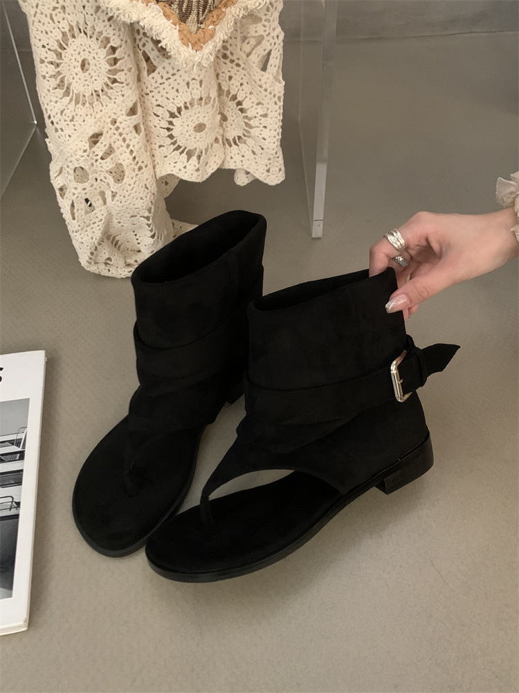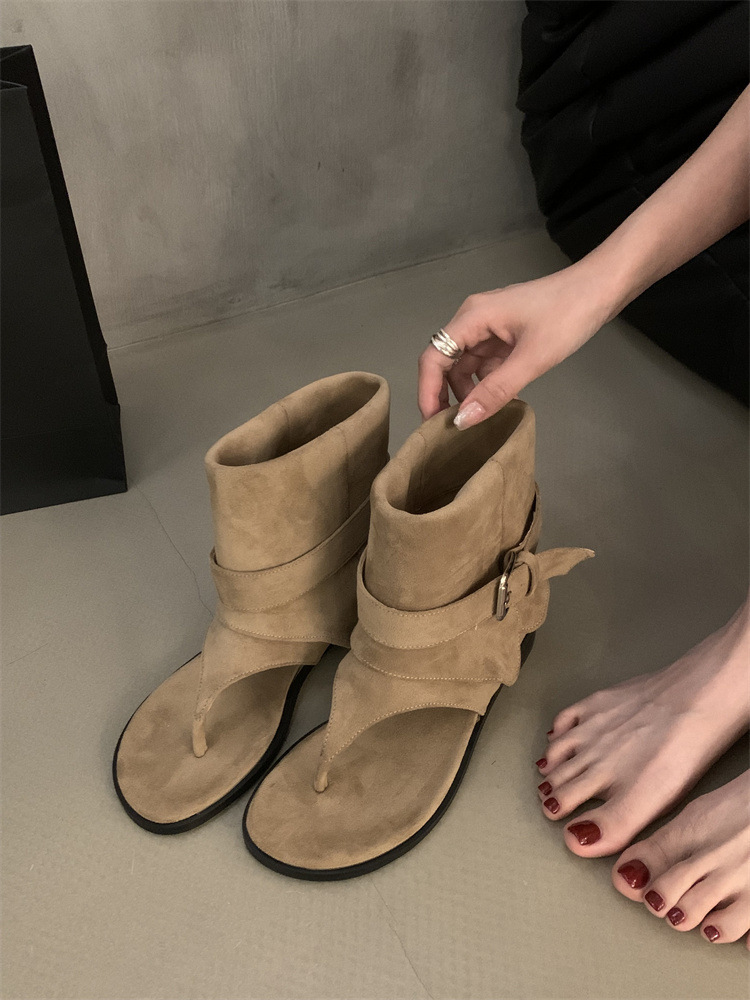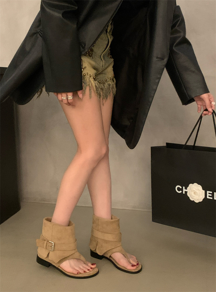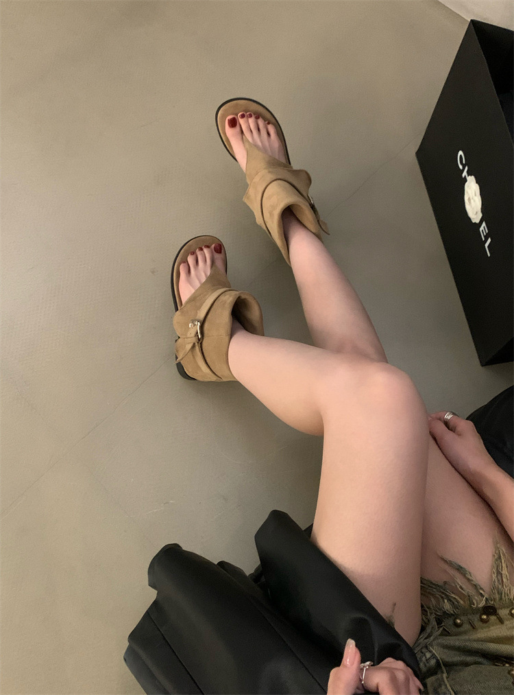Maillard 부츠 여자 여름 2025 새로운 도착 리어 지퍼 짧은 클램프-발가락 샌들 두꺼운 힐 웨스턴 카우보이 부츠스토어 가기