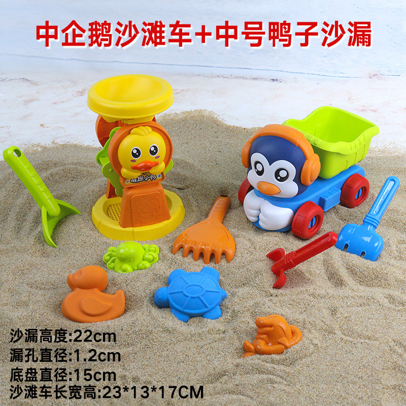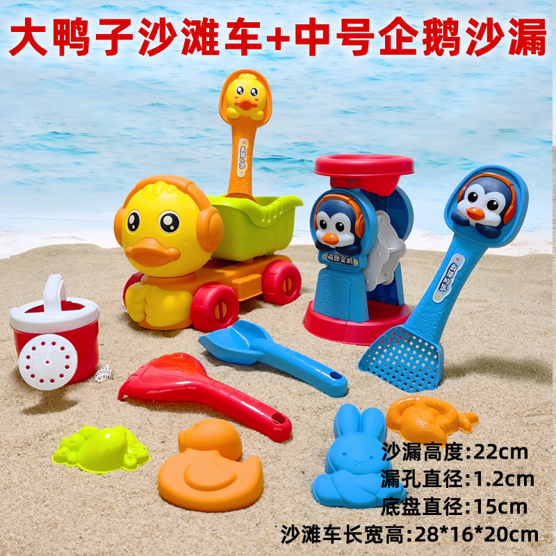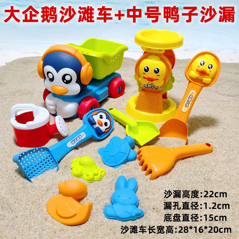 • 빅 펭귄 ATV + 미디엄 오리 모래시계 비치 세트 11개