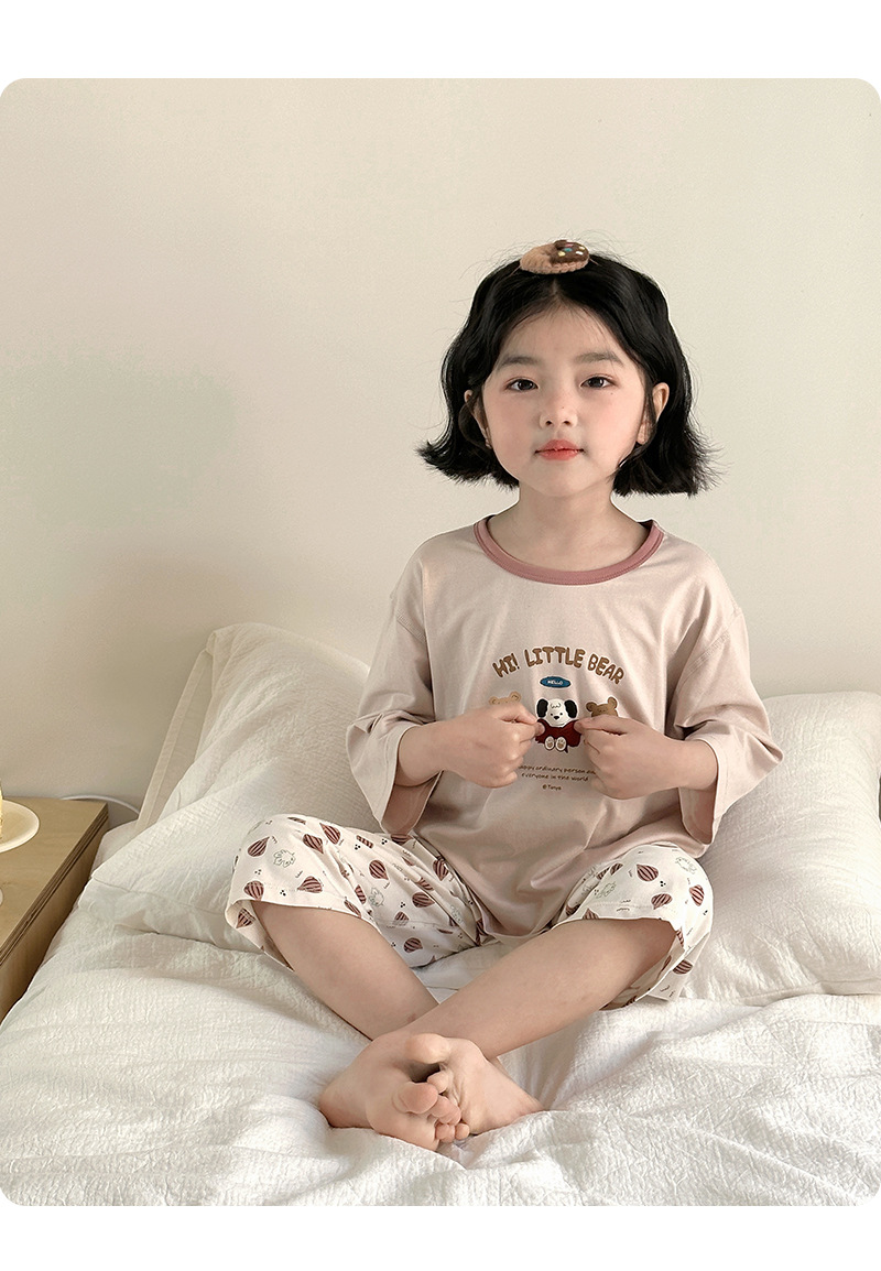 검은 카페 곰 둥근 목 만화 유카 실크면 클래스 어린이 집 옷 봄과 여름 레저 여성용 목회 소나무 침낭스토어 가기