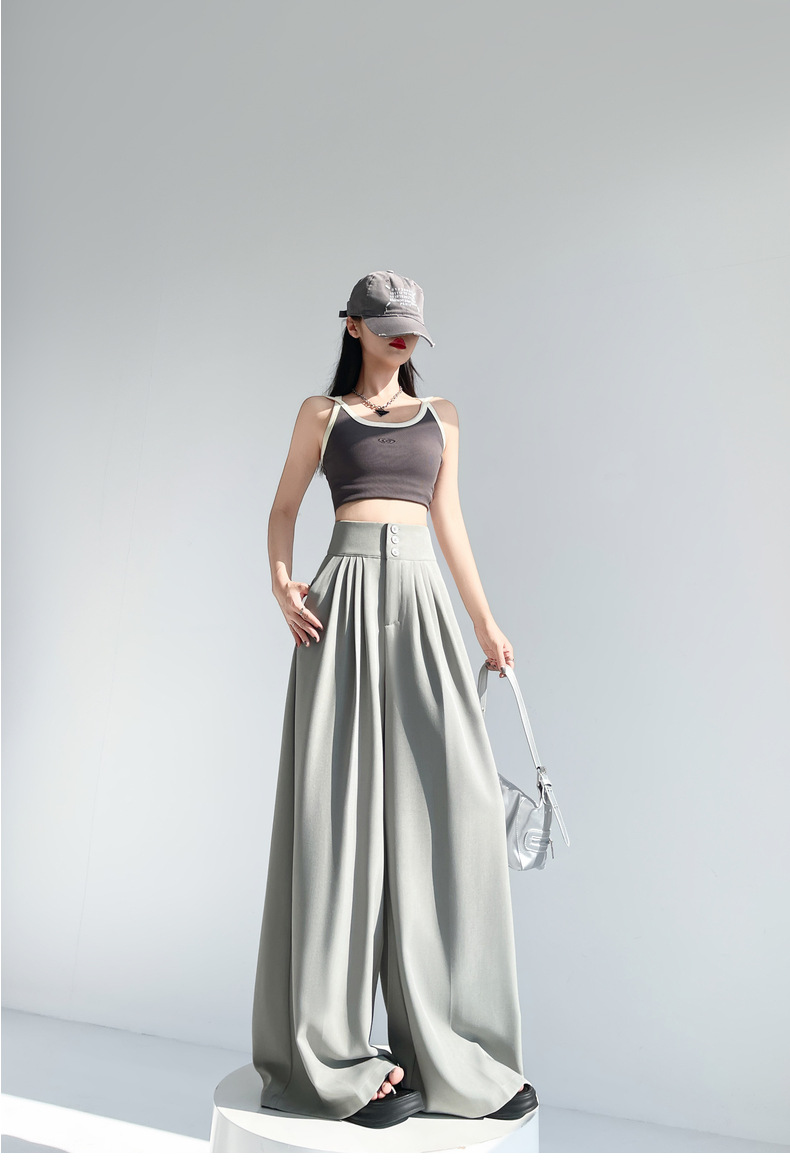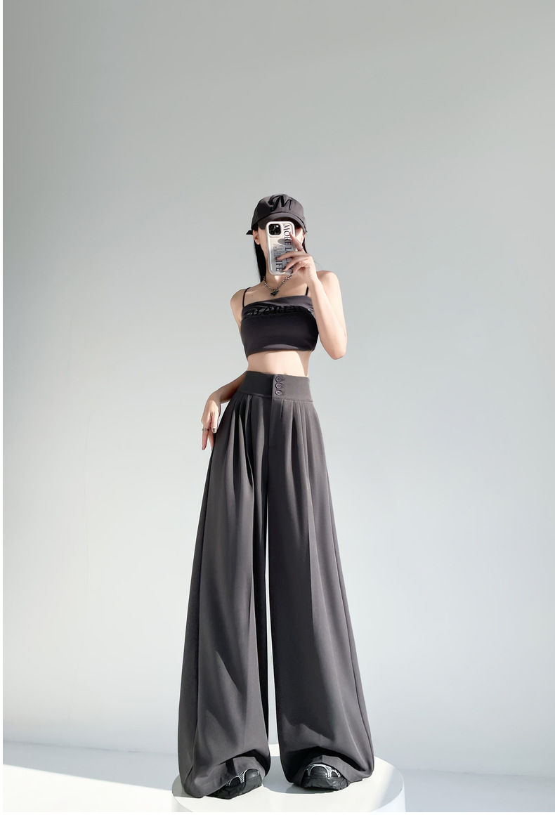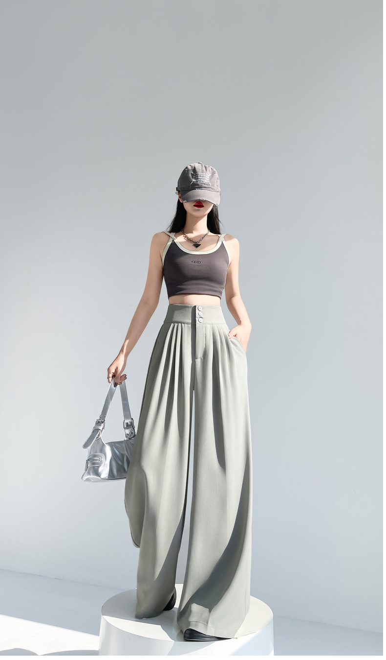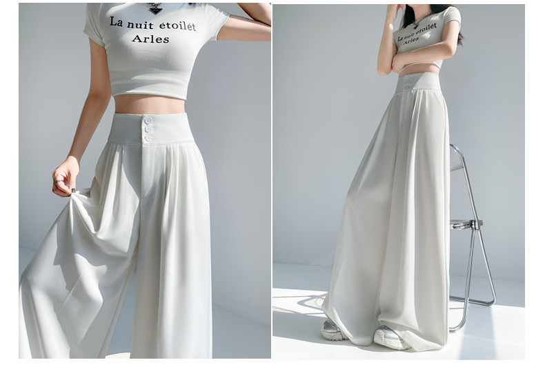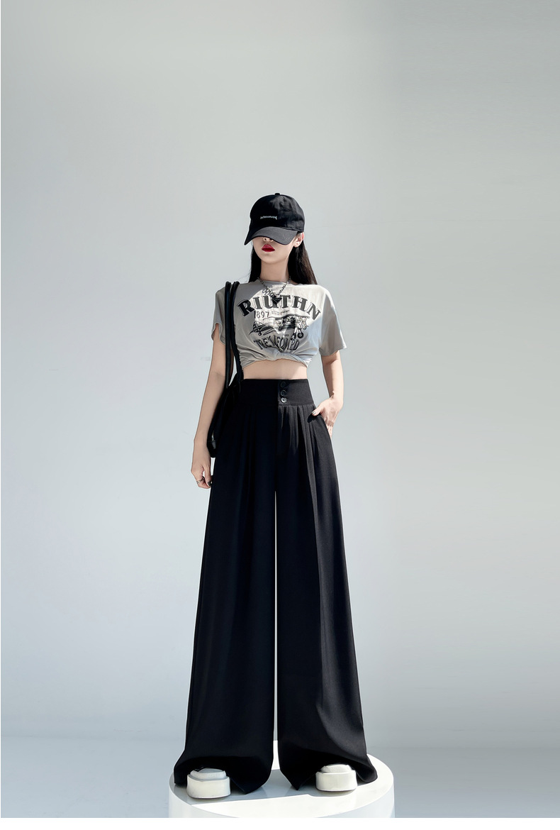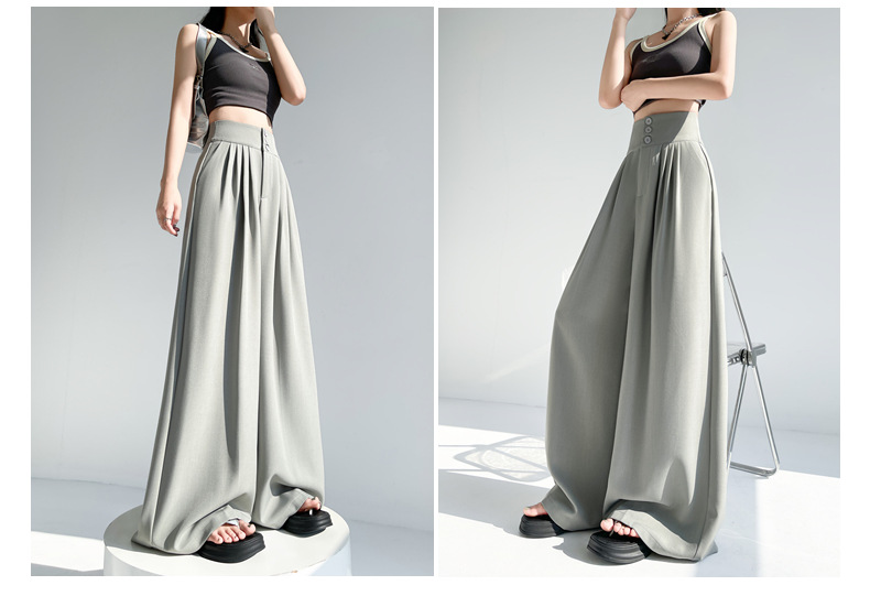 새로운 높은 허리 슬리밍 올매치 느슨한 넓은 다리 바지 여자 2025 여름 얇은 덩굴 아이스 실크 세트 멋진 바지스토어 가기