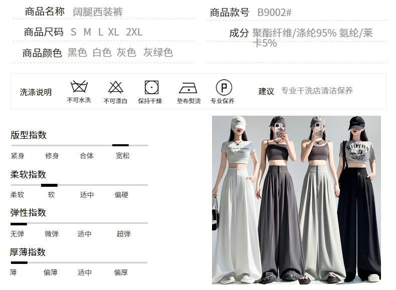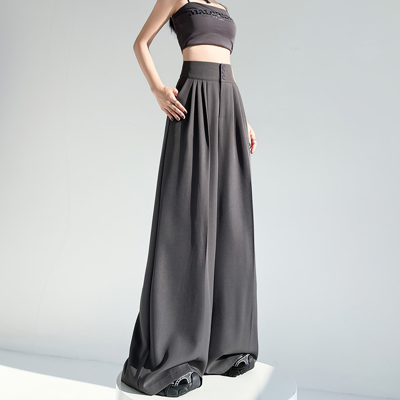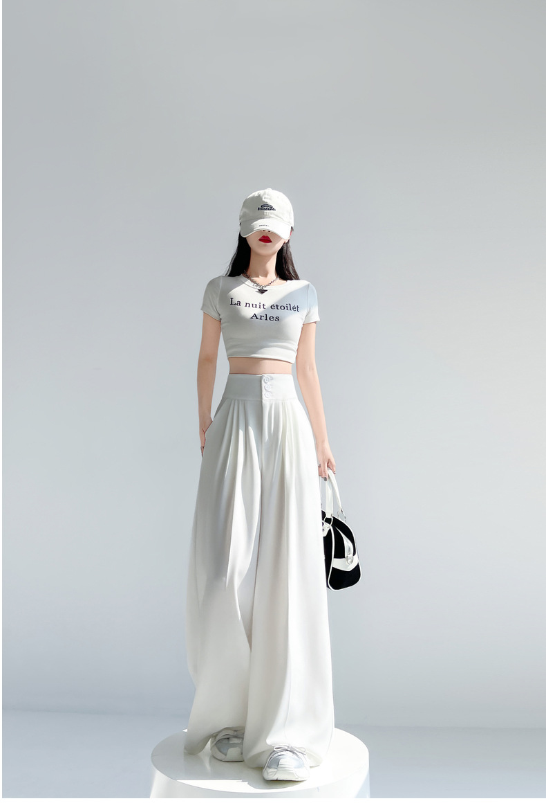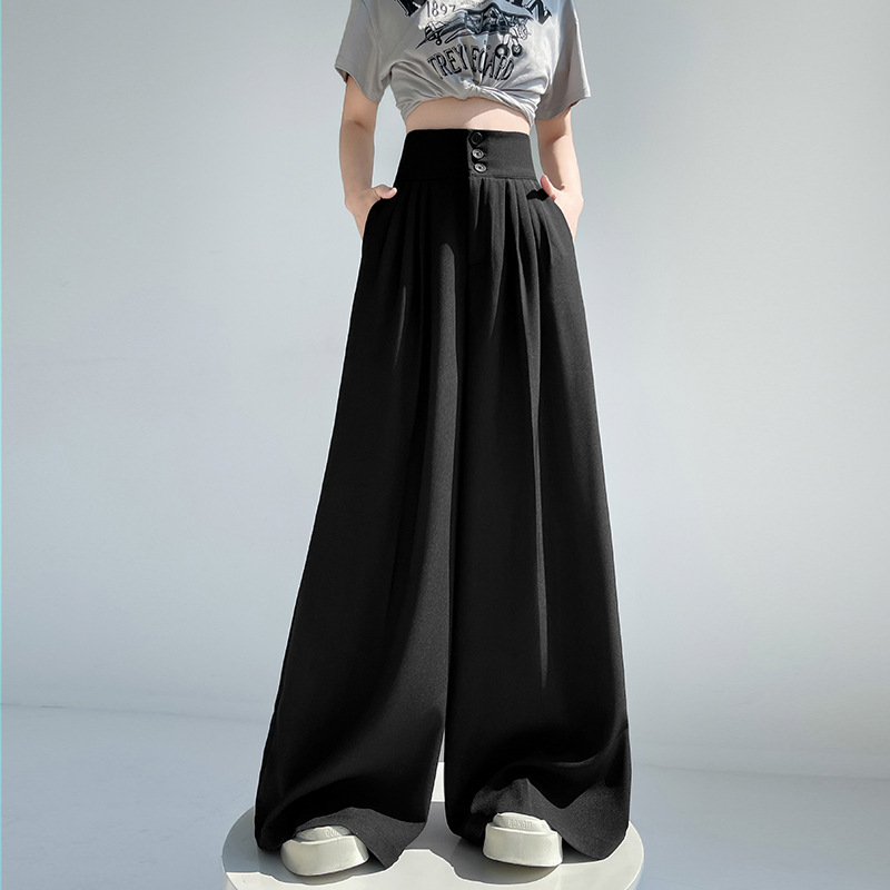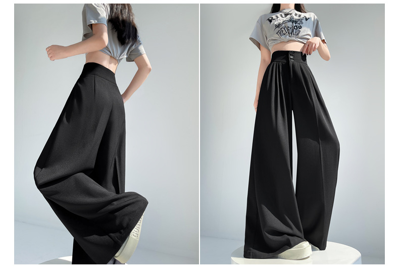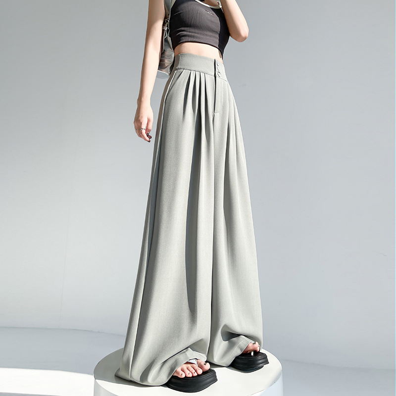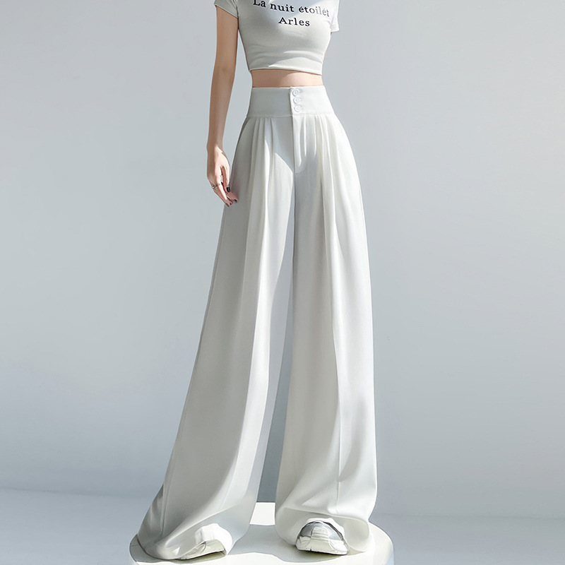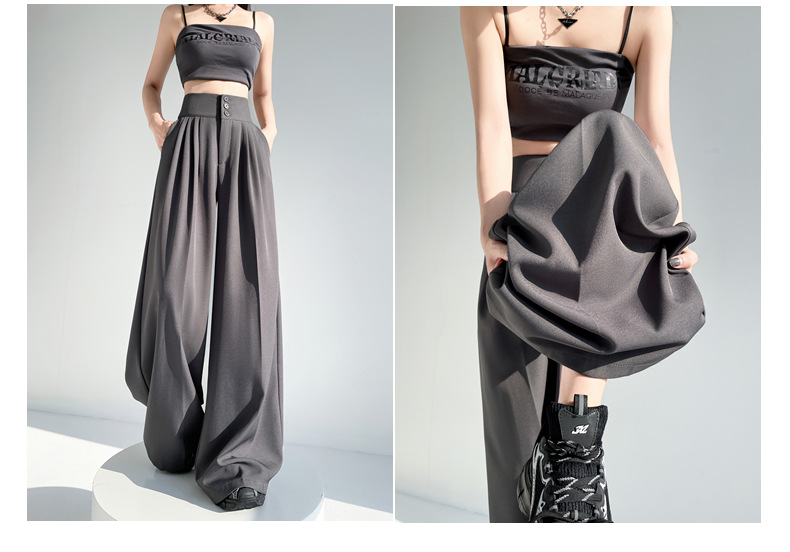 새로운 높은 허리 슬리밍 올매치 느슨한 넓은 다리 바지 여자 2025 여름 얇은 덩굴 아이스 실크 세트 멋진 바지스토어 가기