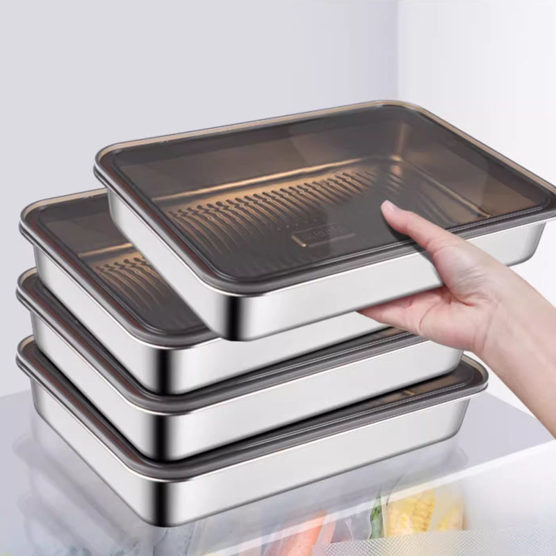 도매 스테인리스 생선찜 뚜껑 바베큐 냉장고 보관함 과일 접시 생선구이 접시 사각 접시 냉채 보관함