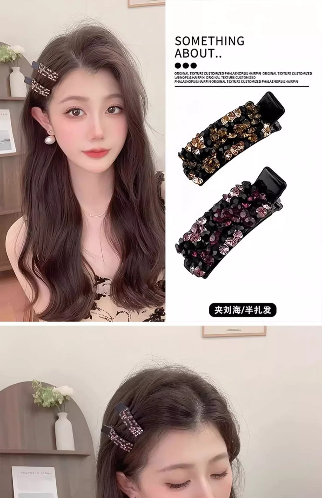 다채로운 모조 다이아몬드 머리핀 사이드 앞머리 클립 2025 새로운 고급 크리스탈 머리핀 원활한 덕빌 클립 클립 머리 장식