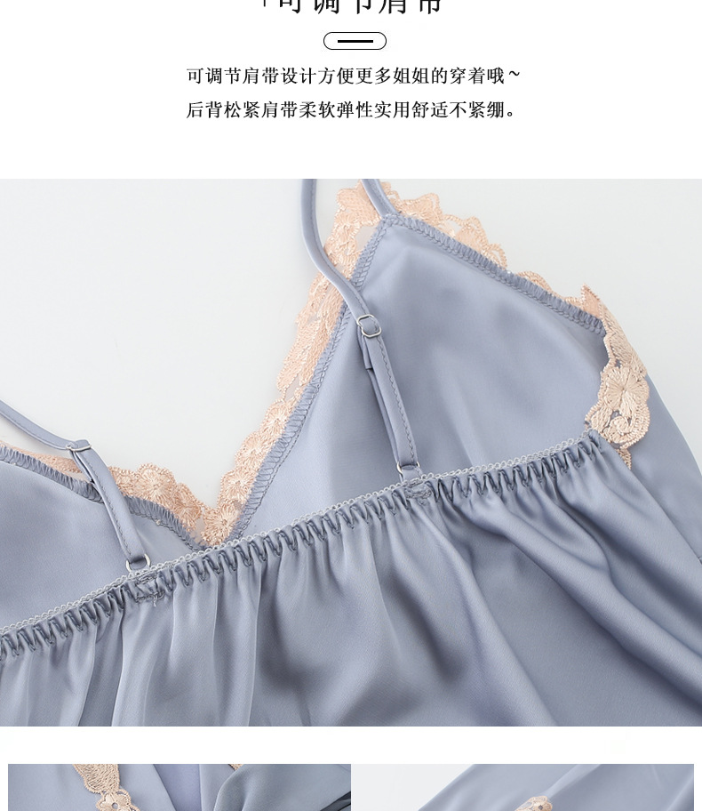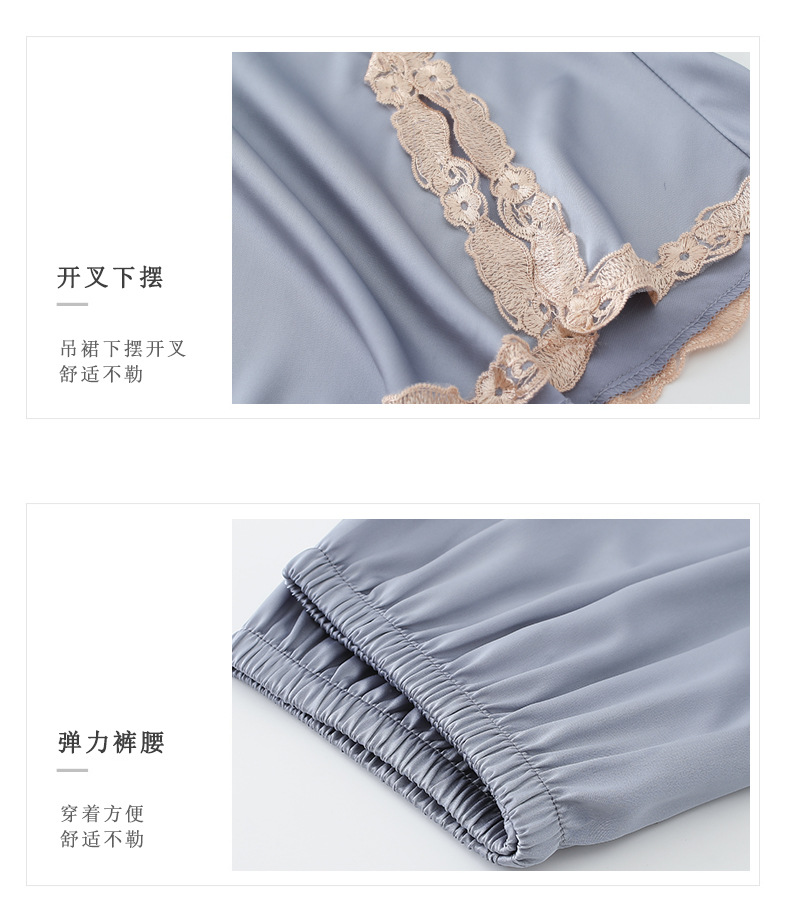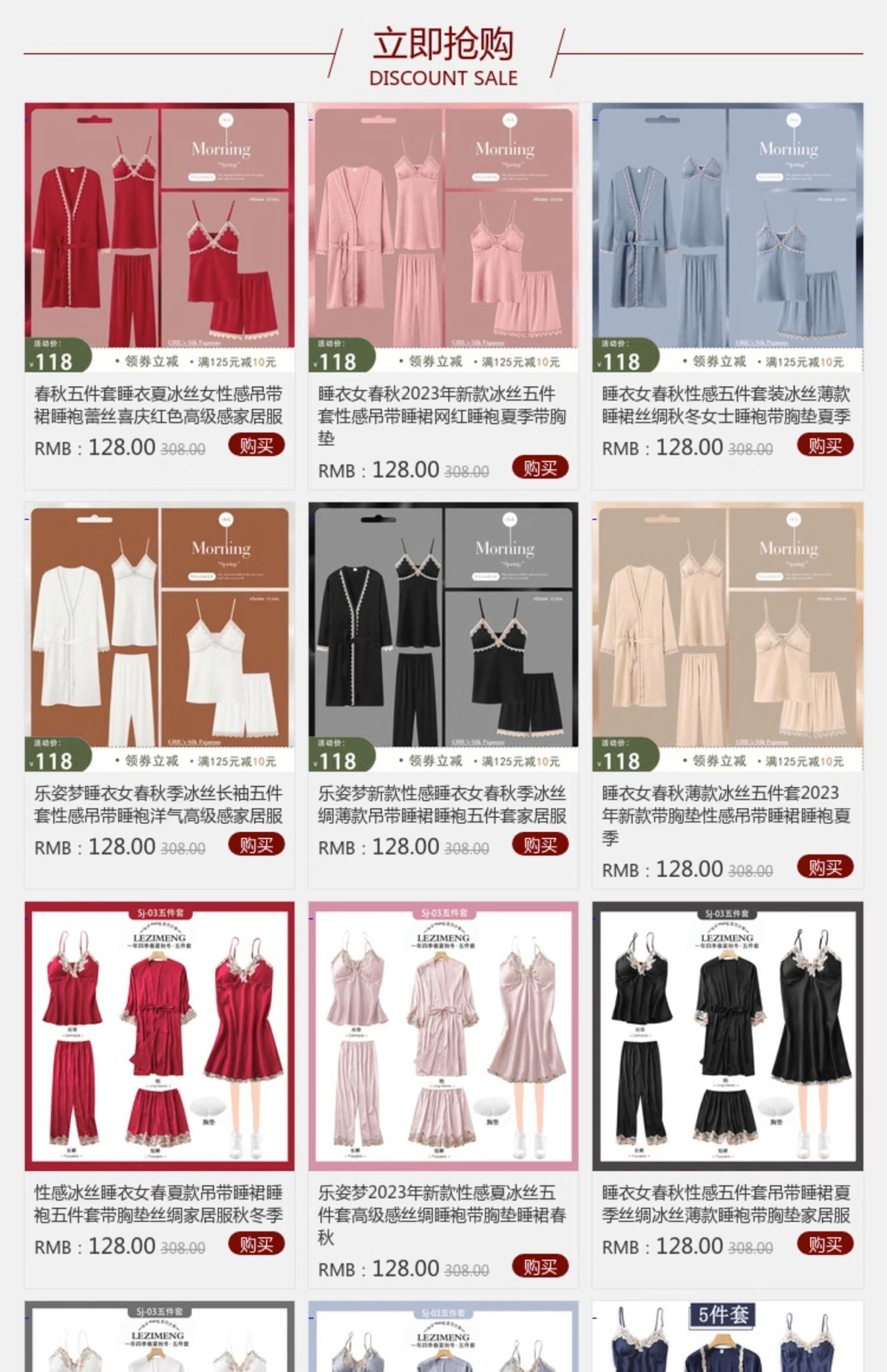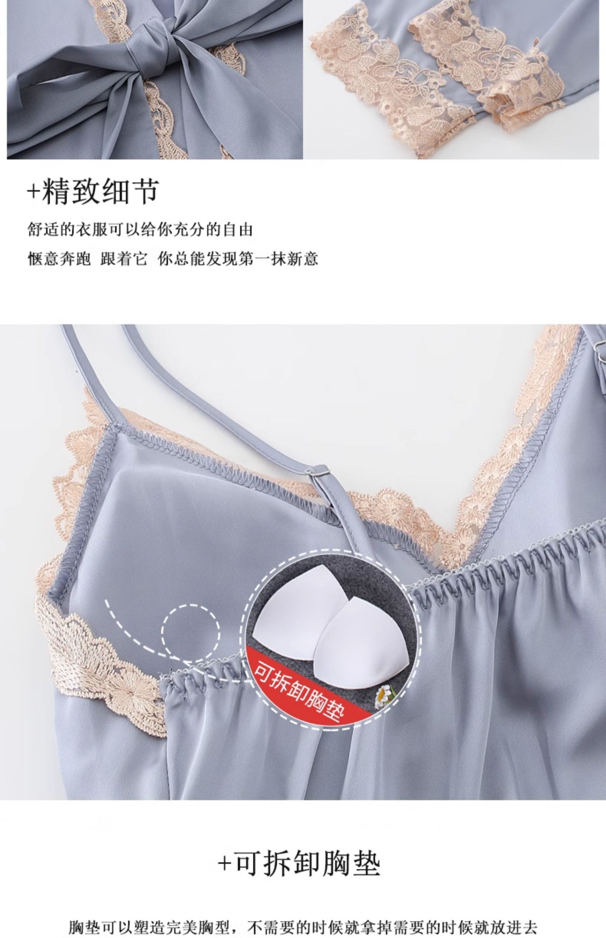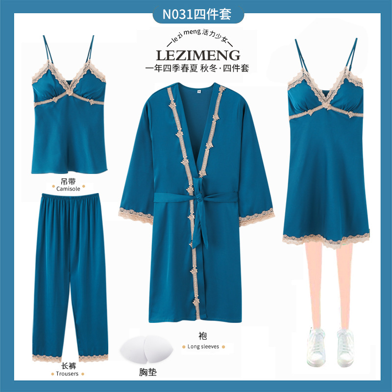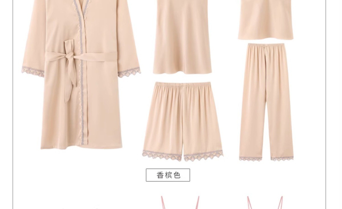 여성을위한 얼음 실크 잠옷 봄과 여름 새로운 긴팔 하이 엔드 달콤한 실크 홈웨어 5 피스 세트스토어 가기