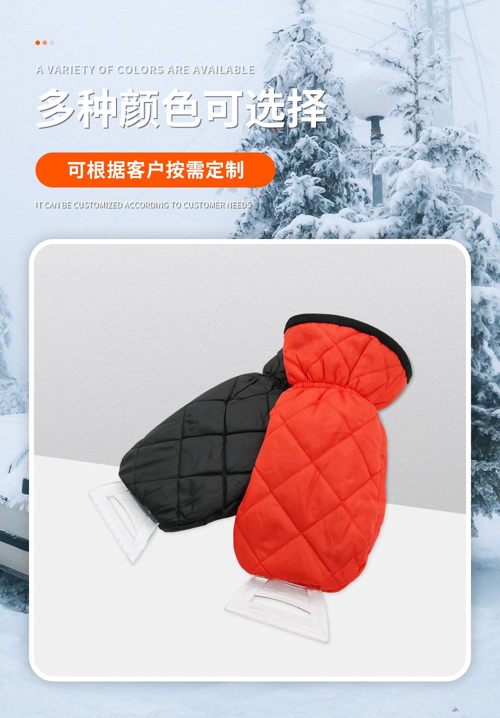 소스 공장 210D 옥스포드 천 퀼트 장갑 스노우 삽 야외 자동차 제빙 삽 겨울 스노우 삽