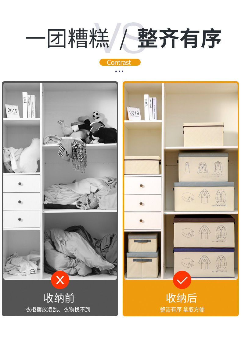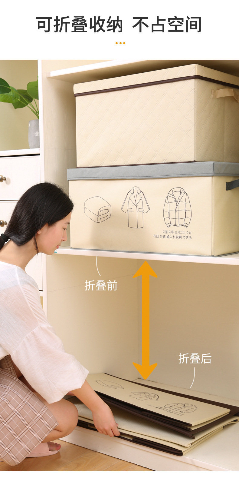 뚜껑이 있는 일본식 의류, 이불, 장난감, 속옷 보관함, 마름모 격자 옷장, 의류 및 이불 보관함, 접이식스토어 가기