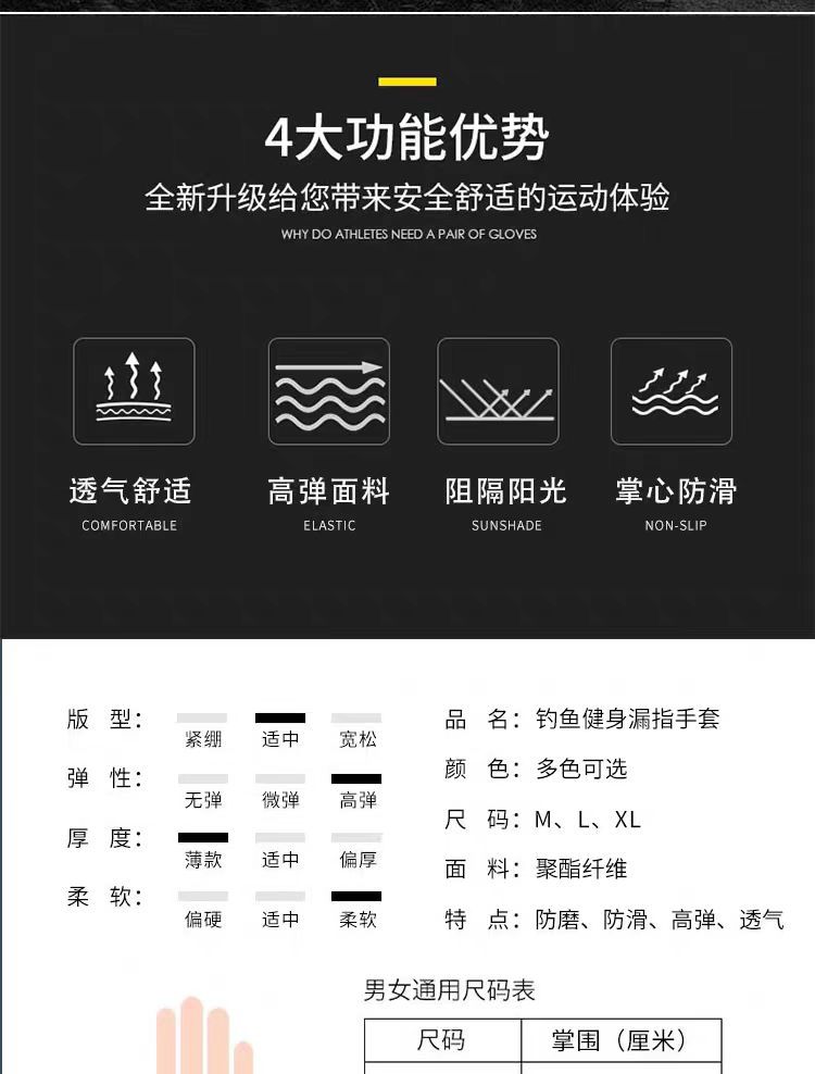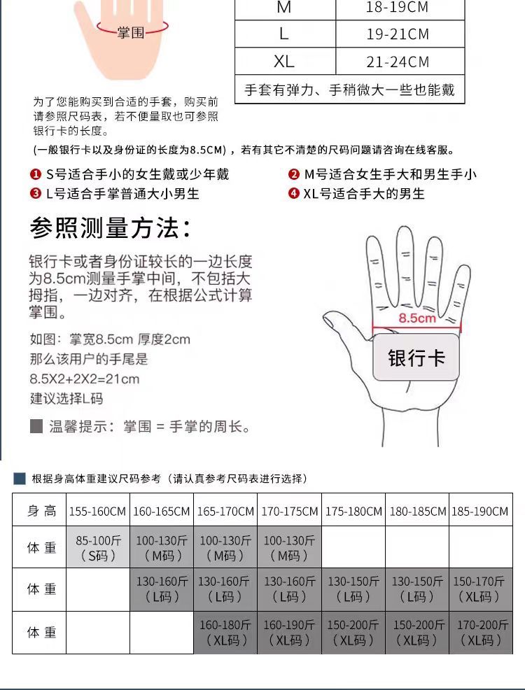【重量】约为:长指 M:40,L:42,XL:45 半指 M:37,L:38,XL:40