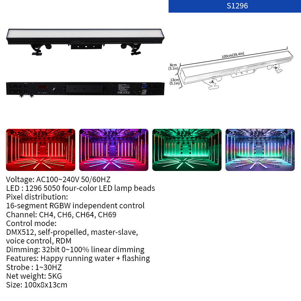 LED 16 세그먼트 스트립 스트로브 RGBW 단일 포인트 제어 픽셀 매트릭스 라이트 음악 축제 댄스 아름다운 무대 쇼 조명
