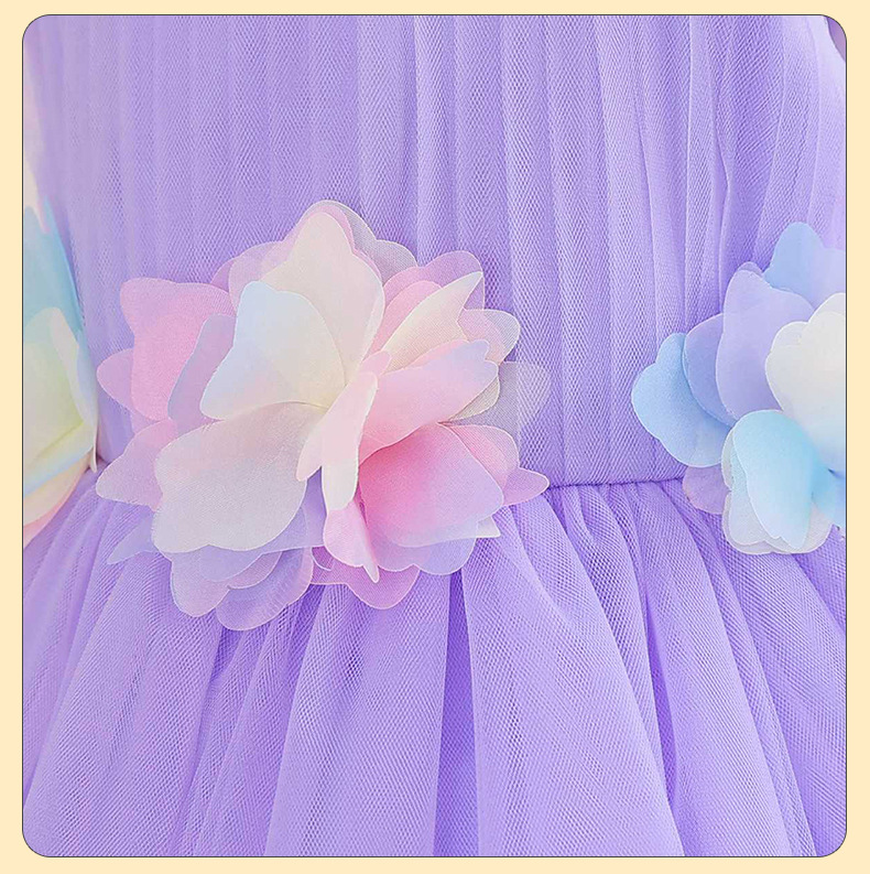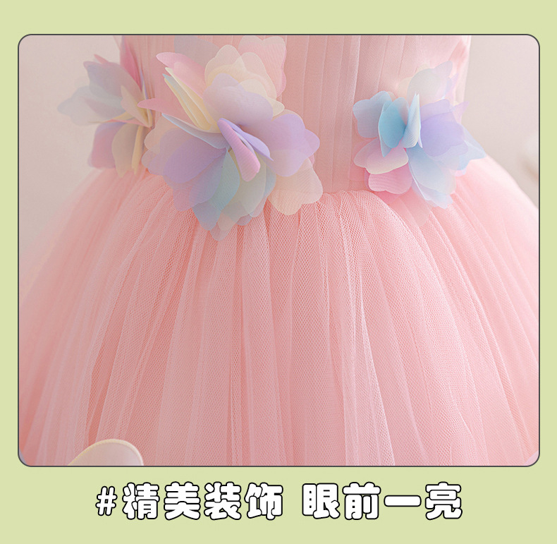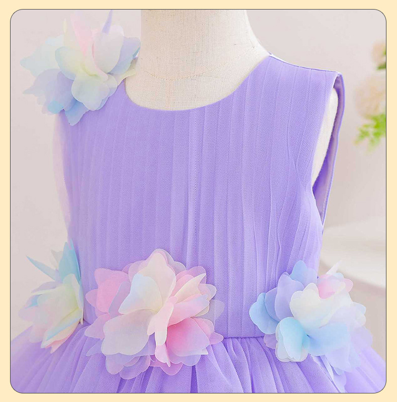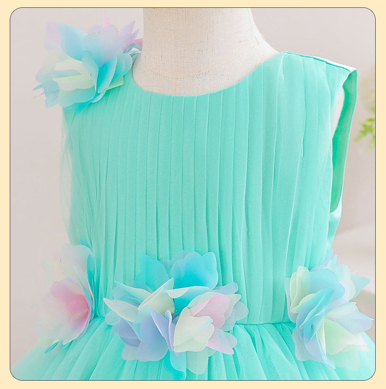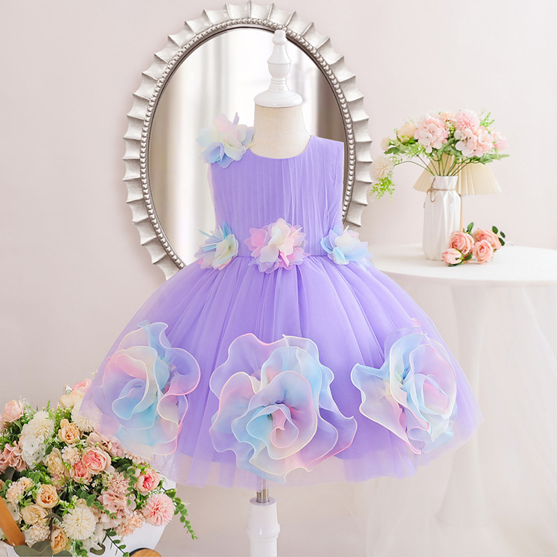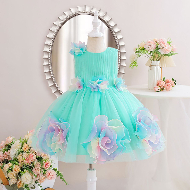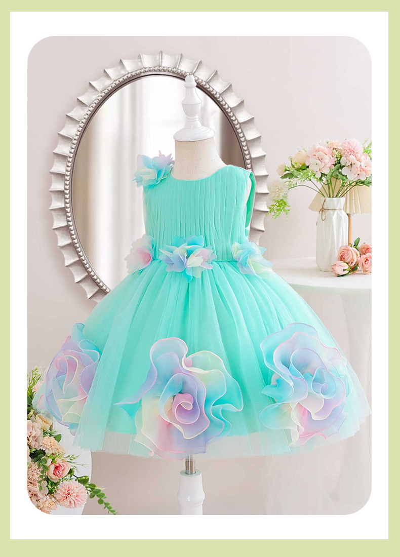 0-100-110-120码-130码    新款跨境女童连衣裙彩色花朵网纱公主裙小花童婚礼晚宴女童礼服裙