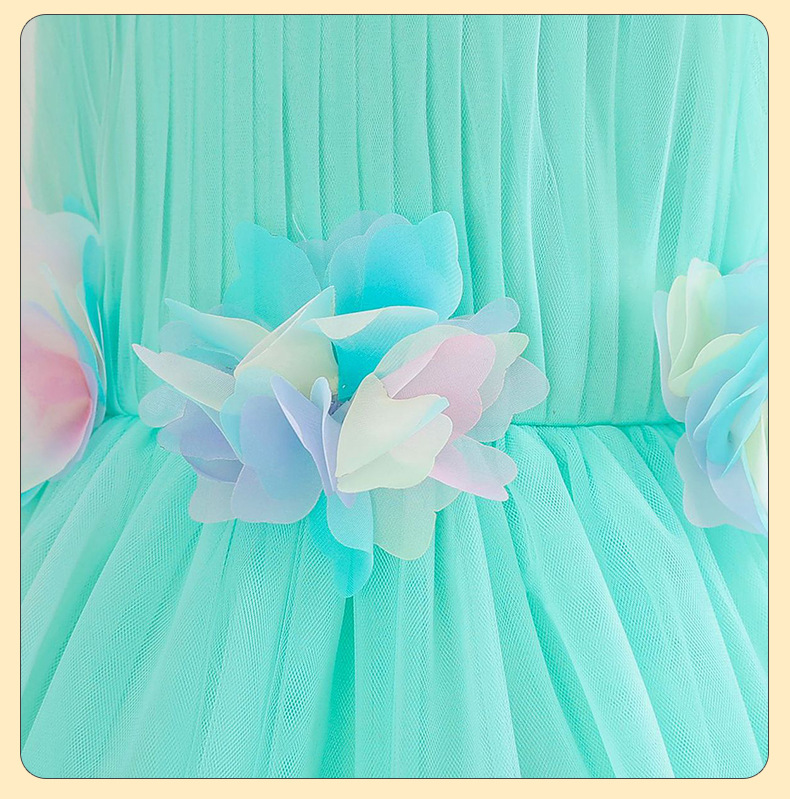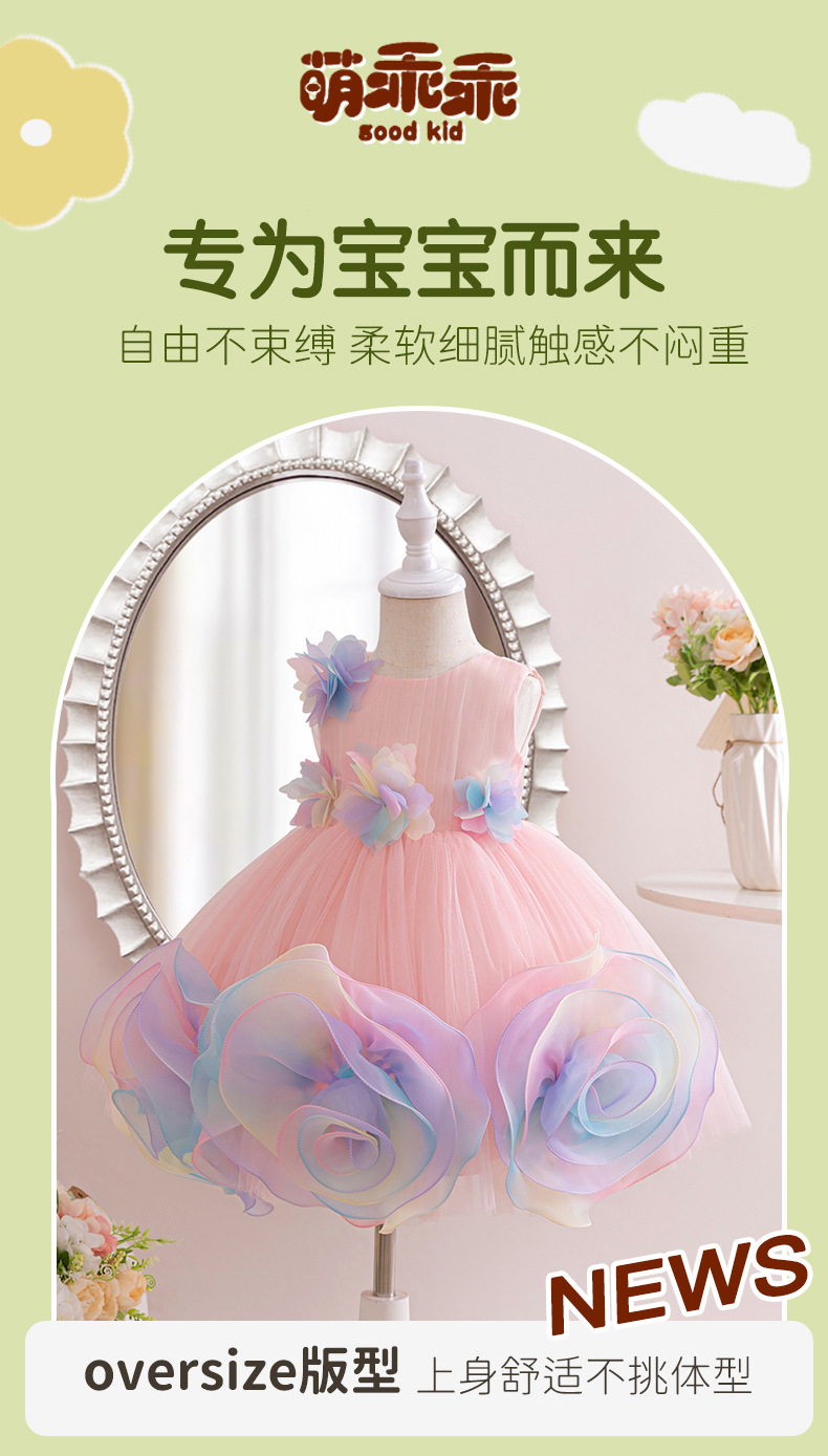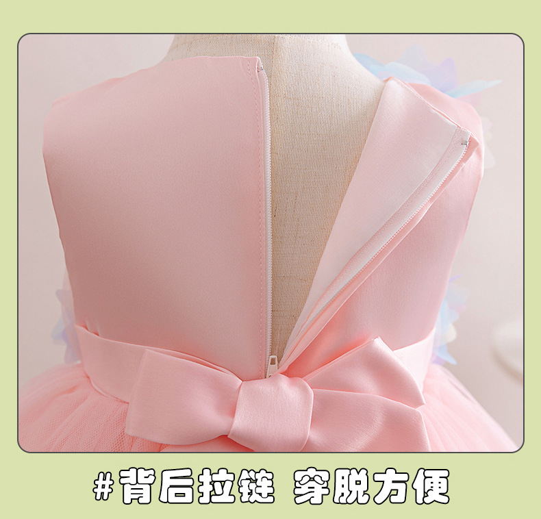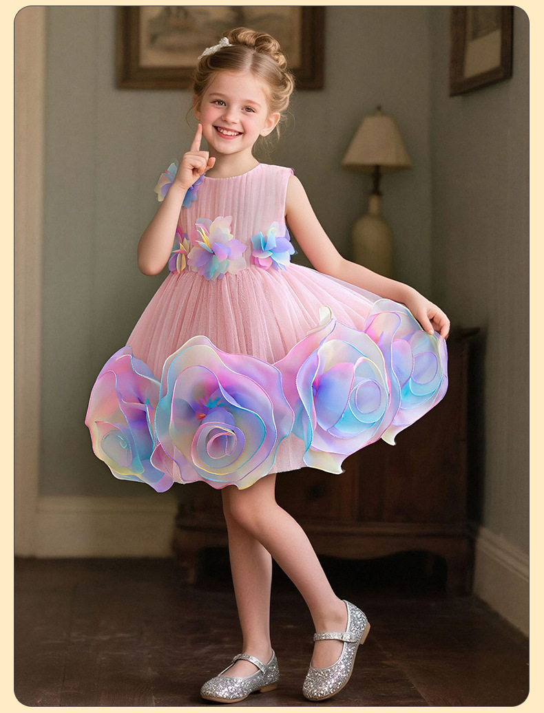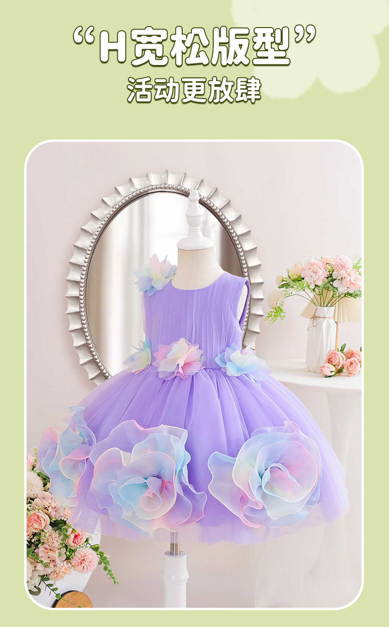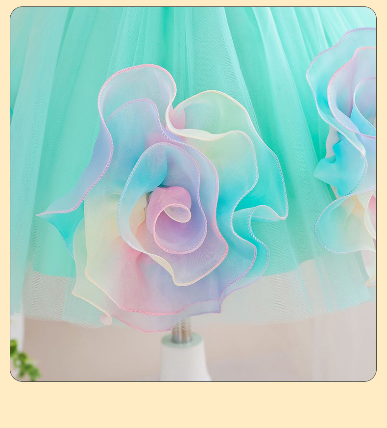 0-100-110-120码-130码    新款跨境女童连衣裙彩色花朵网纱公主裙小花童婚礼晚宴女童礼服裙
