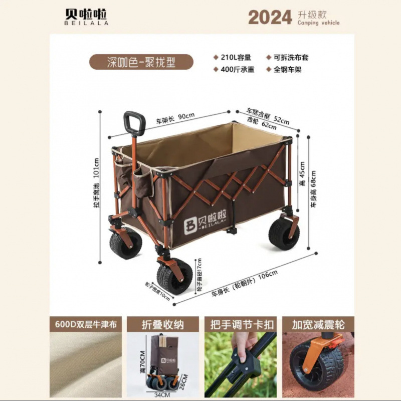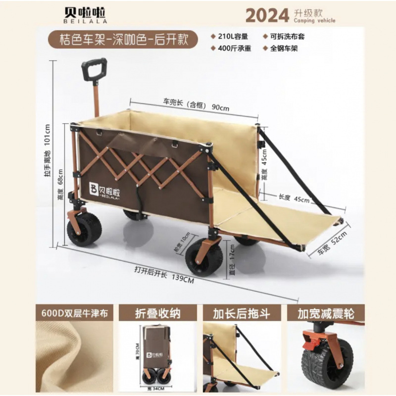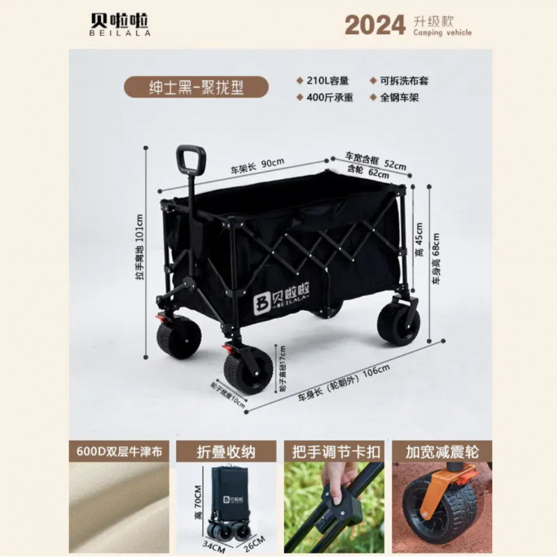 Beilala 캠핑 카, 4 륜 스톨 트롤리 캠핑 트롤리 피크닉 캠프 카 폴딩 트레일러 수집