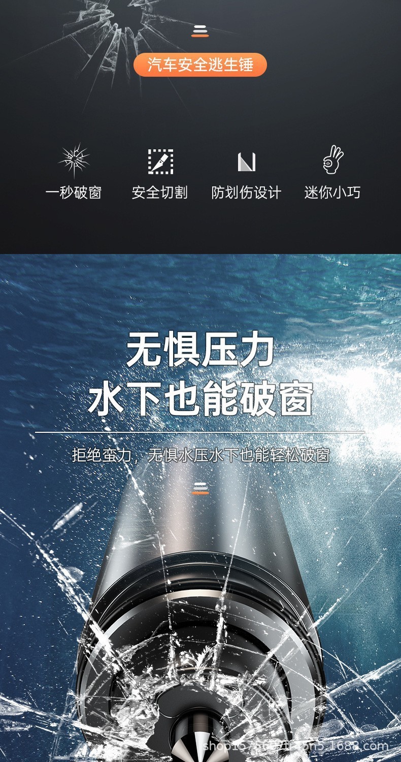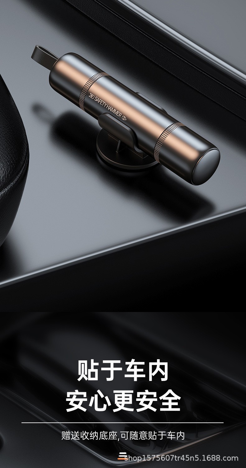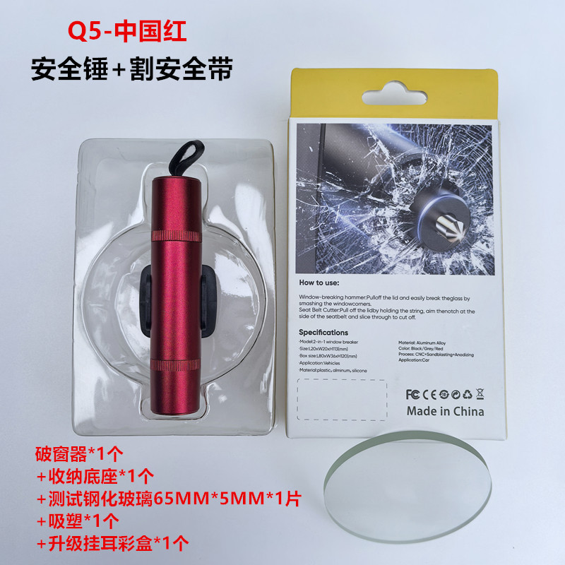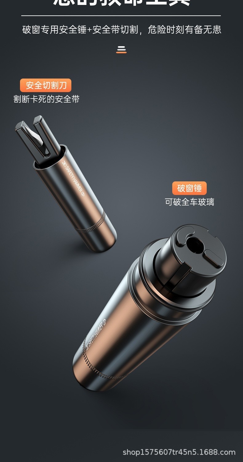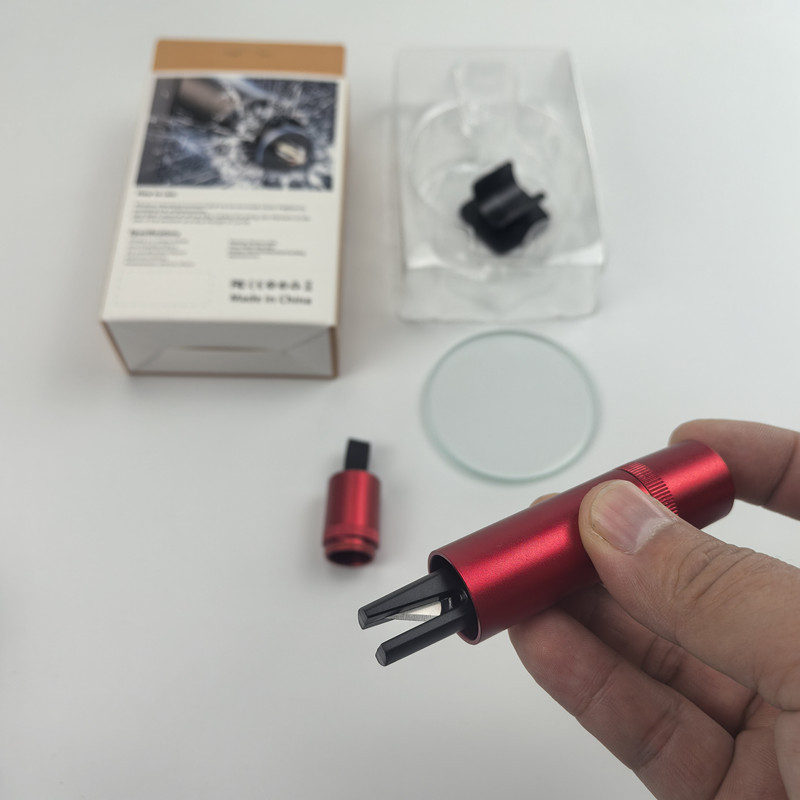 【产品特点】:二合一功能 自救、逃生破窗 开车人都该有的保命神器!航空合金破窗锤+安全带割刀,高雅的外观,精致又实用。合金钢锤头,坚硬无比,关键时刻能迅速破窗 ;隐藏式割刀,轻松割断安全带。别看它小小一支,却是危急时刻的“救命稻草”。现在下单,还送测试玻璃,送收纳底座,赶紧为爱车添置2个