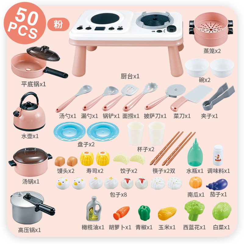 • 작은 주방 테이블 50피스 세트 핑크