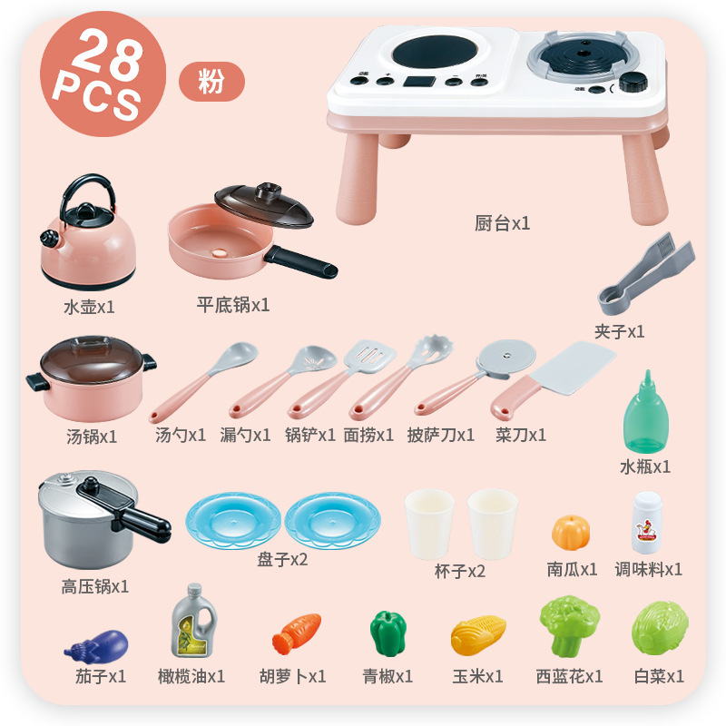 • 작은 주방 테이블 28점 세트 핑크