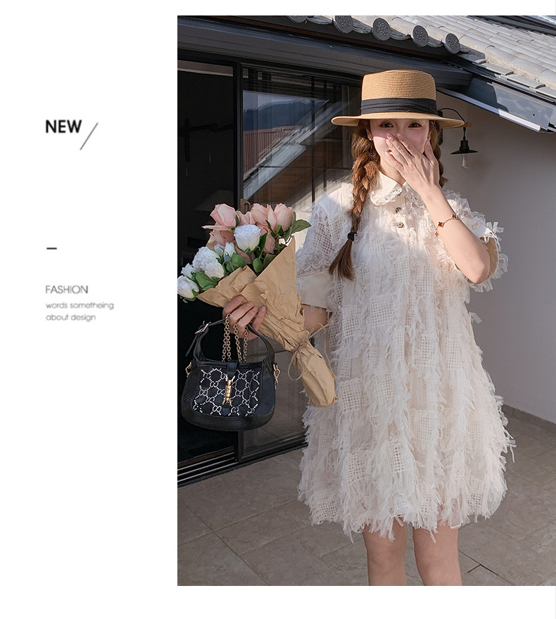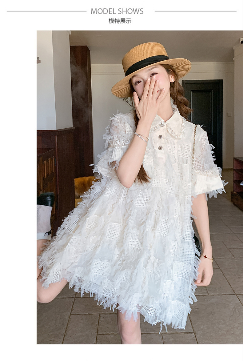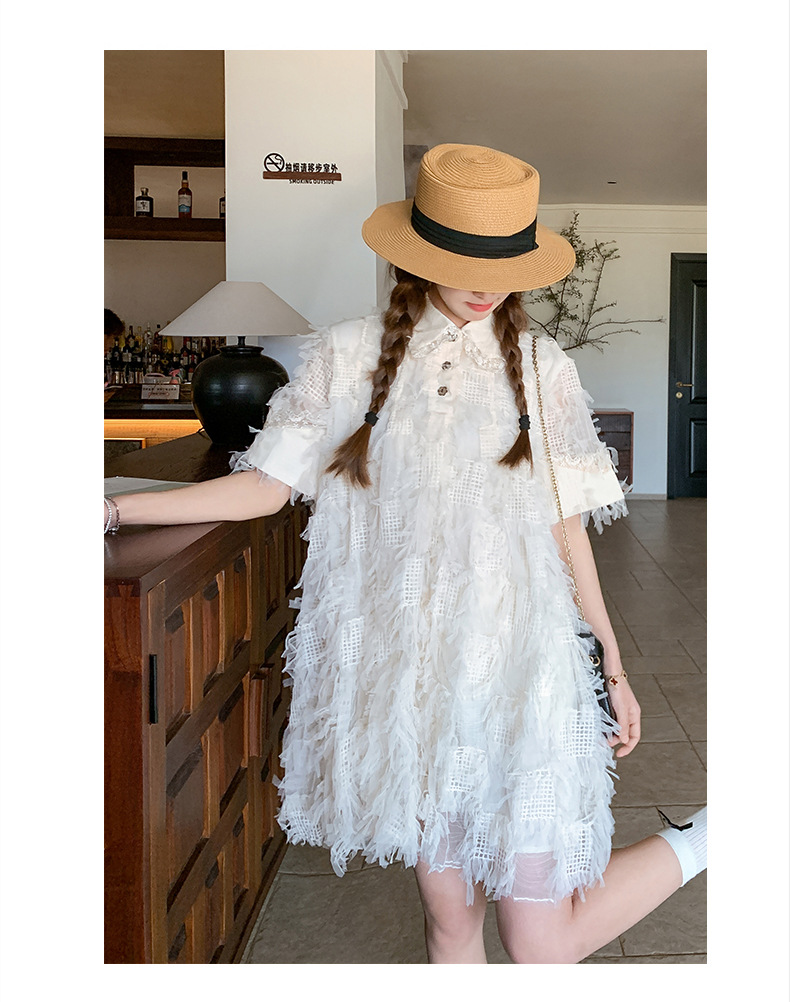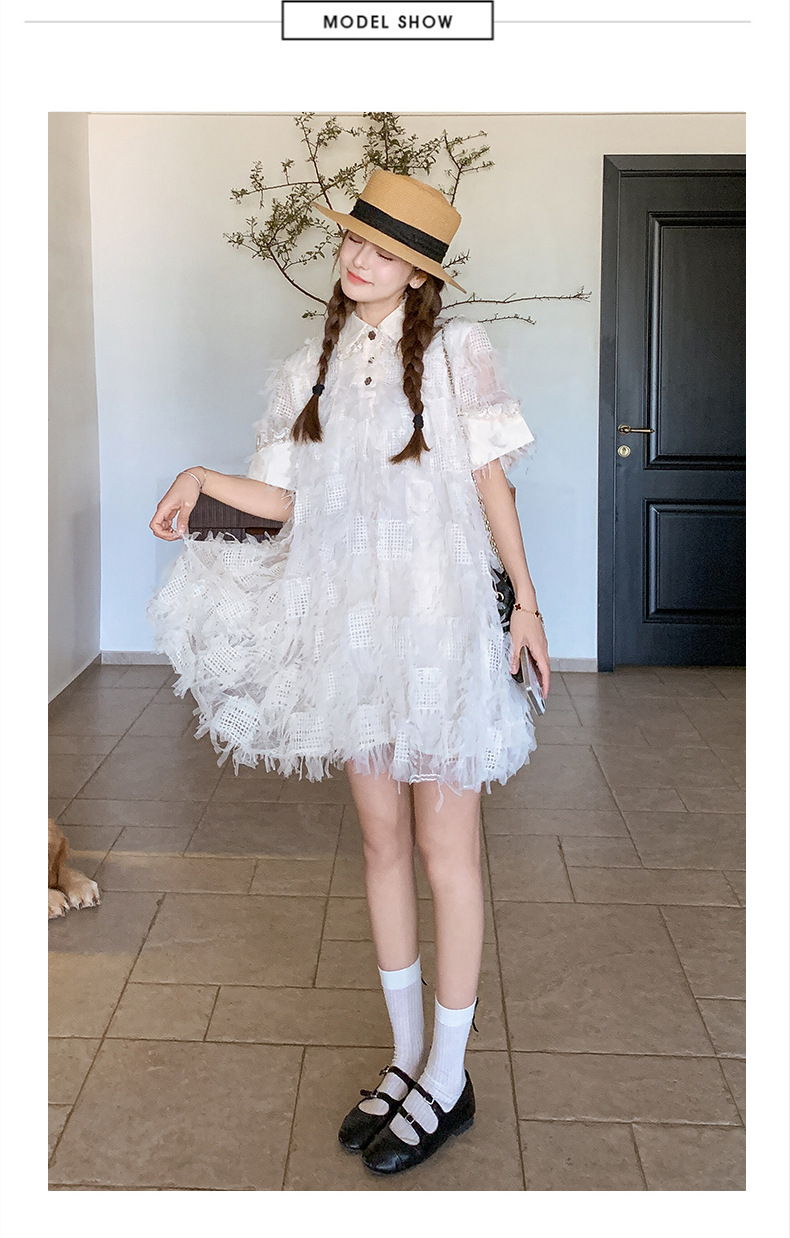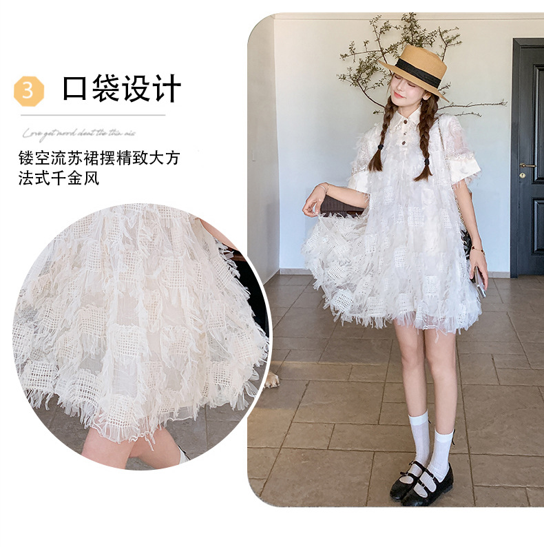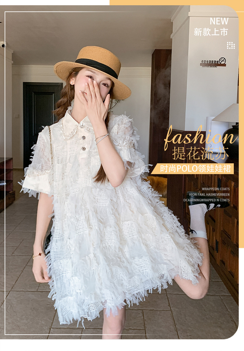 화이트 원피스 여성 2025 여름 새로운 프랑스 스타일 레트로 더미 스타일 틈새 디자인 센스 작은 인형 원피스스토어 가기