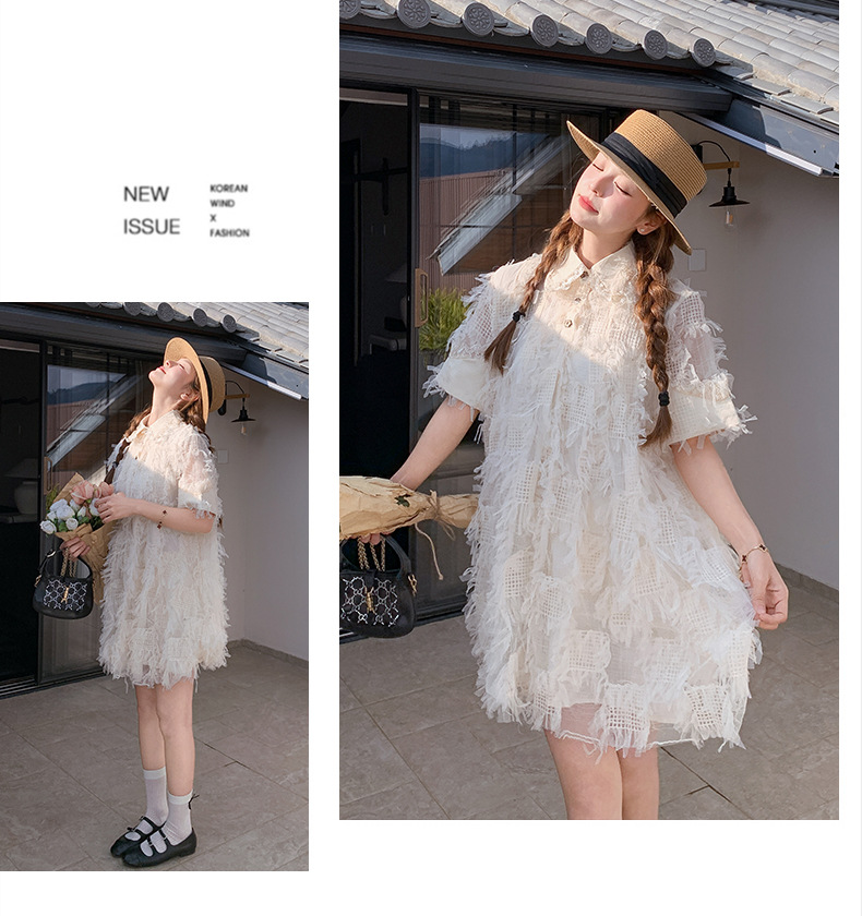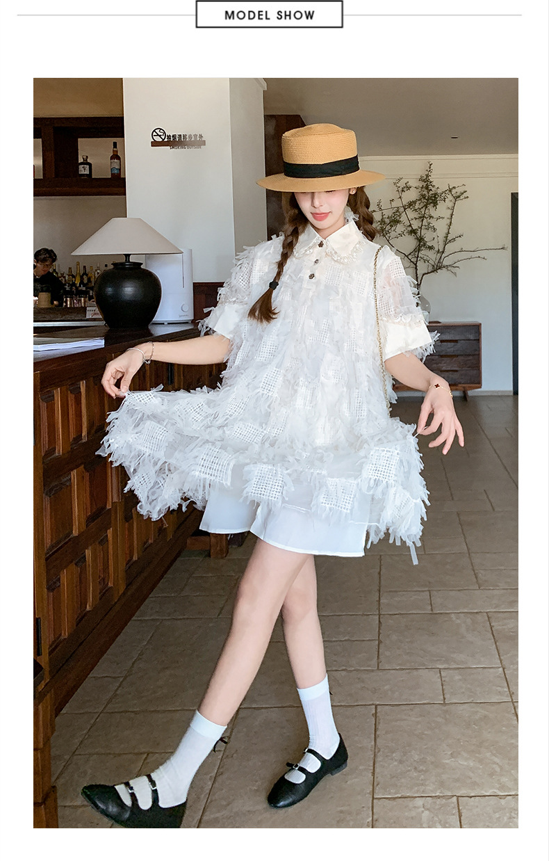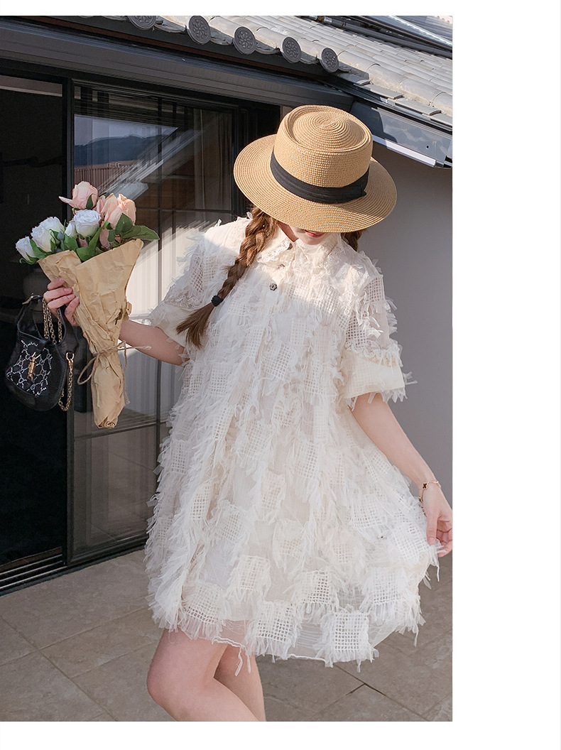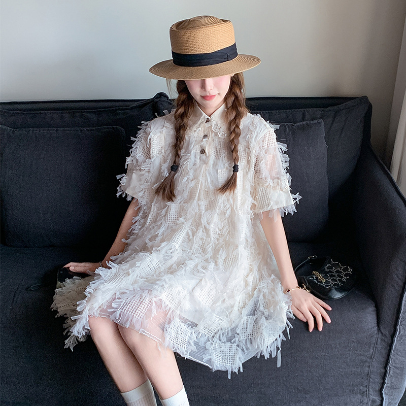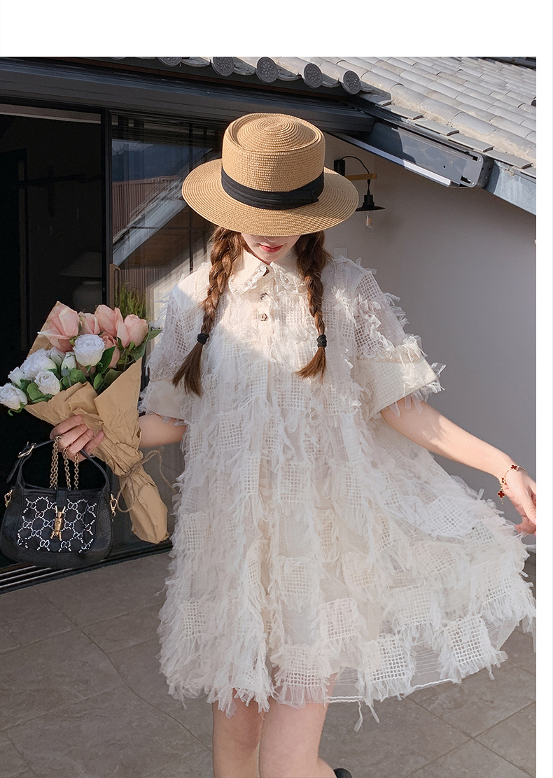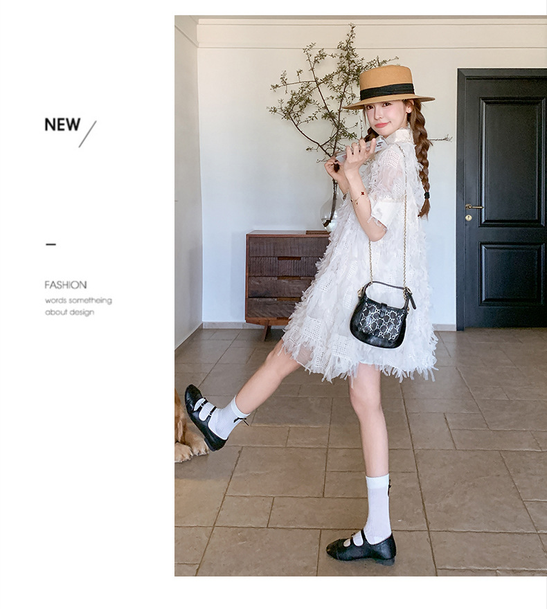 화이트 원피스 여성 2025 여름 새로운 프랑스 스타일 레트로 더미 스타일 틈새 디자인 센스 작은 인형 원피스스토어 가기