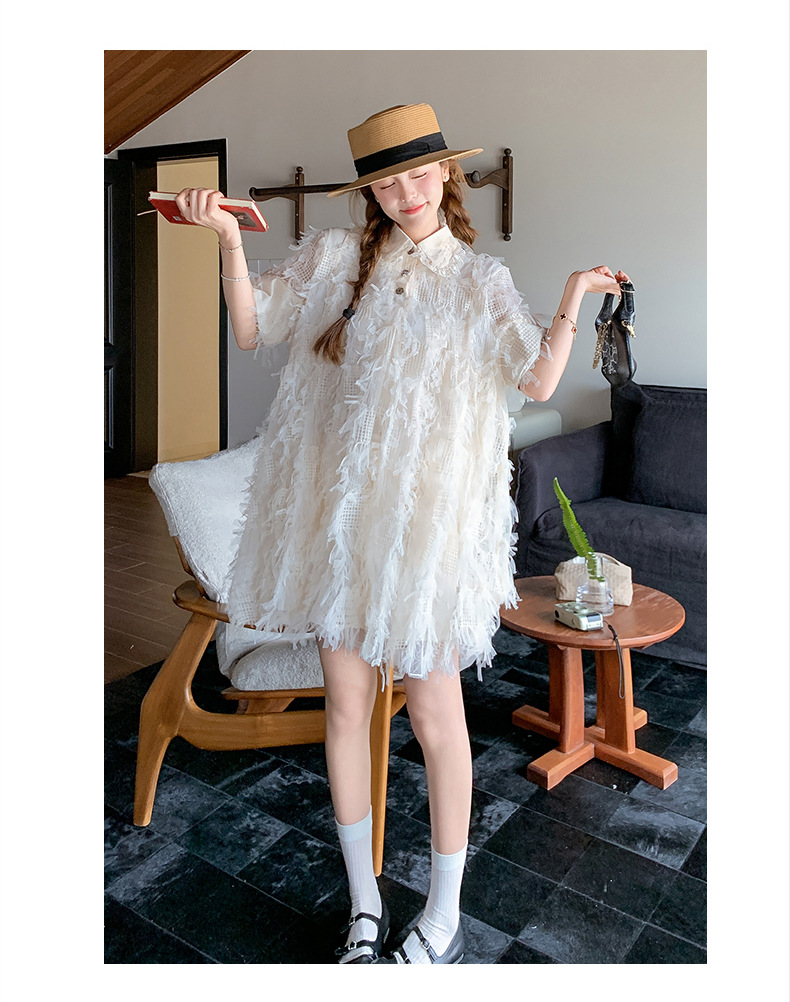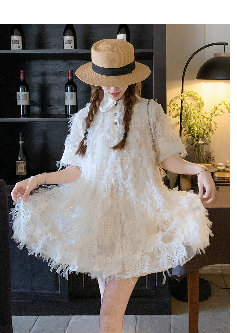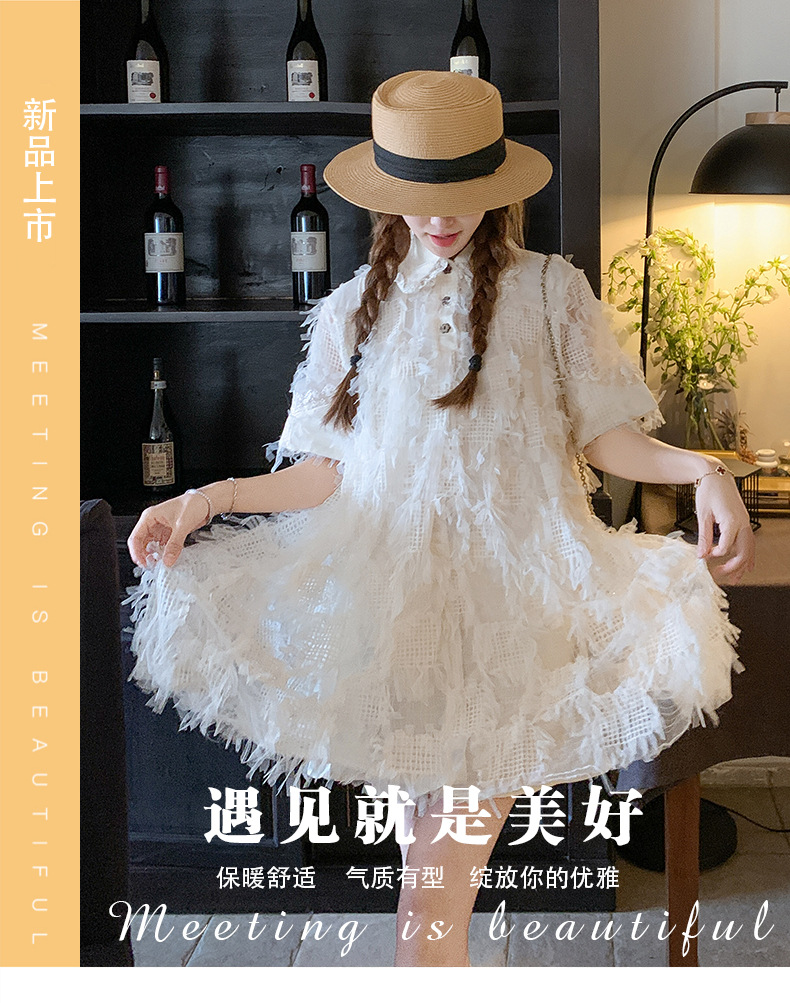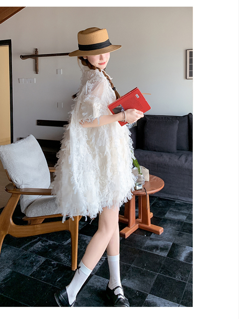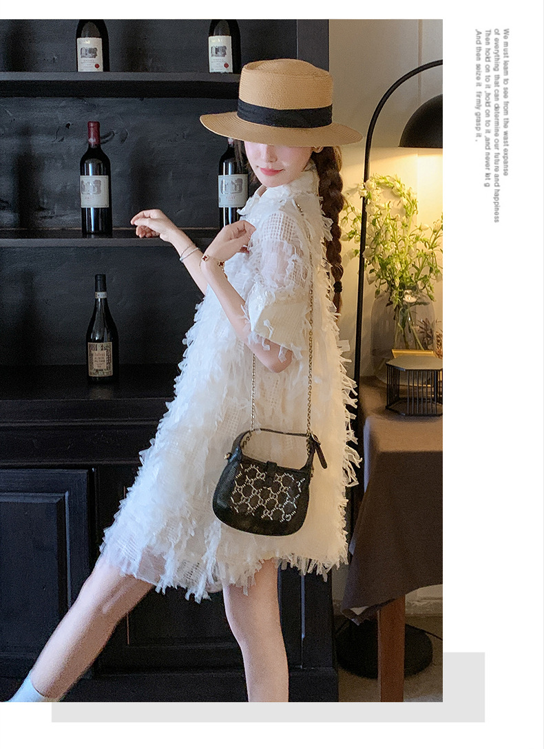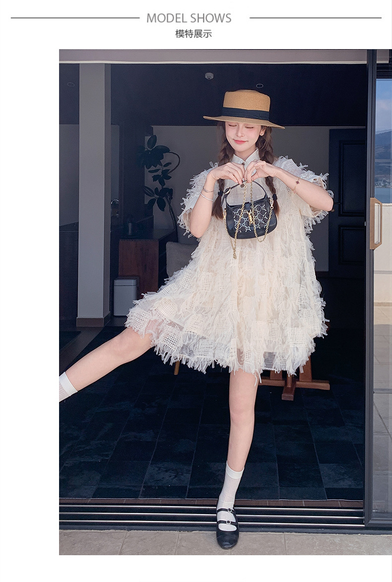 화이트 원피스 여성 2025 여름 새로운 프랑스 스타일 레트로 더미 스타일 틈새 디자인 센스 작은 인형 원피스스토어 가기