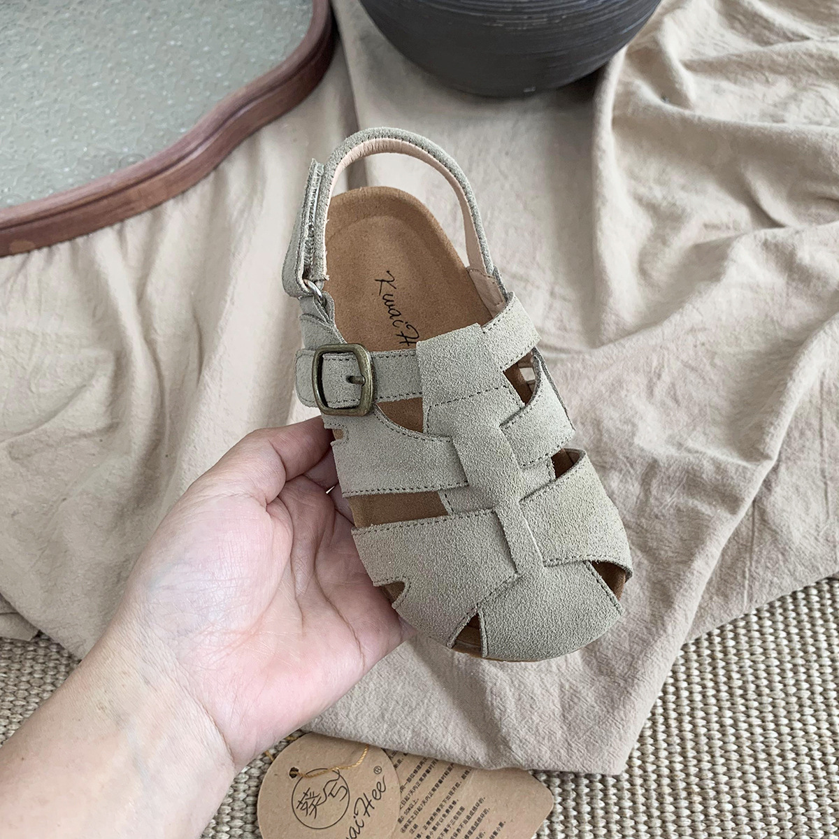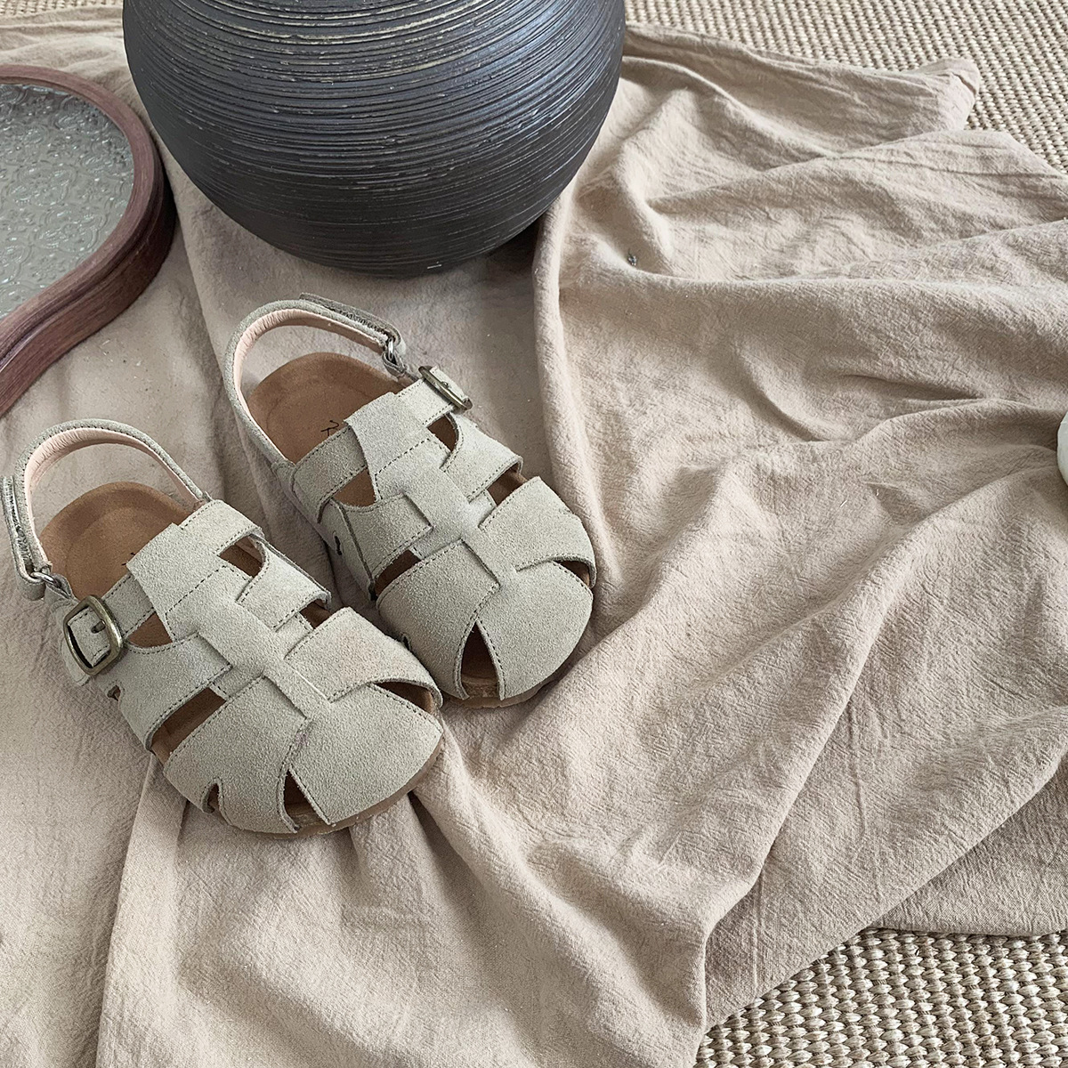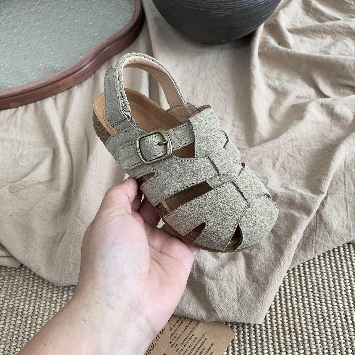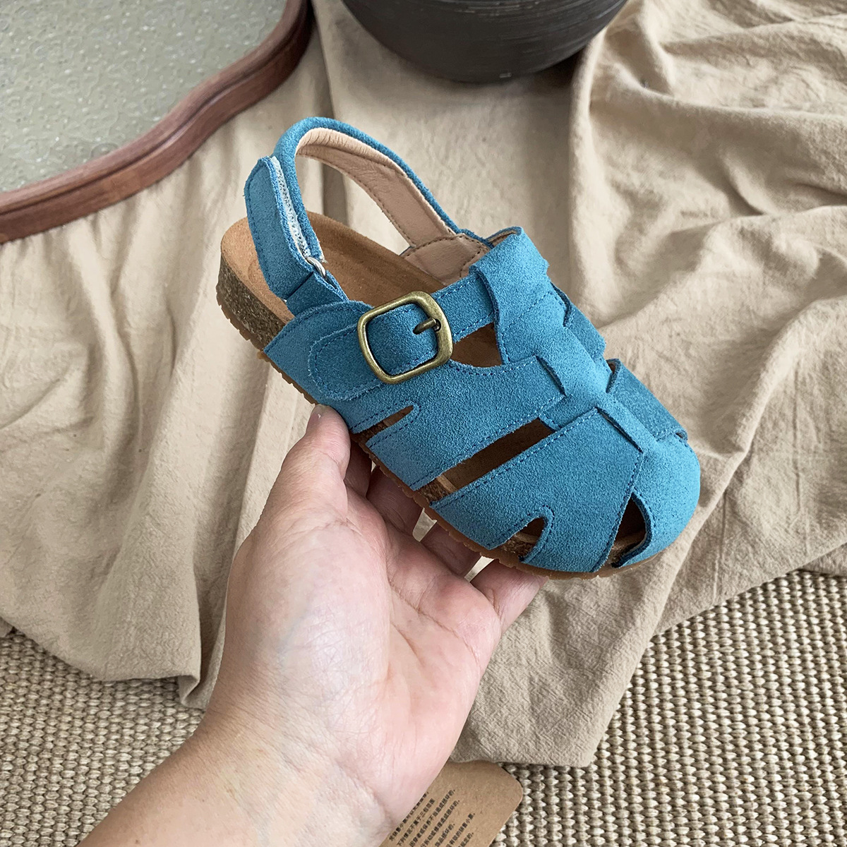 여름 새로운 대외 무역 폭발 Bocken 신발 어린이 부드러운 단독 짠 비치 신발 대형 소녀 가죽 샌들 배치스토어 가기