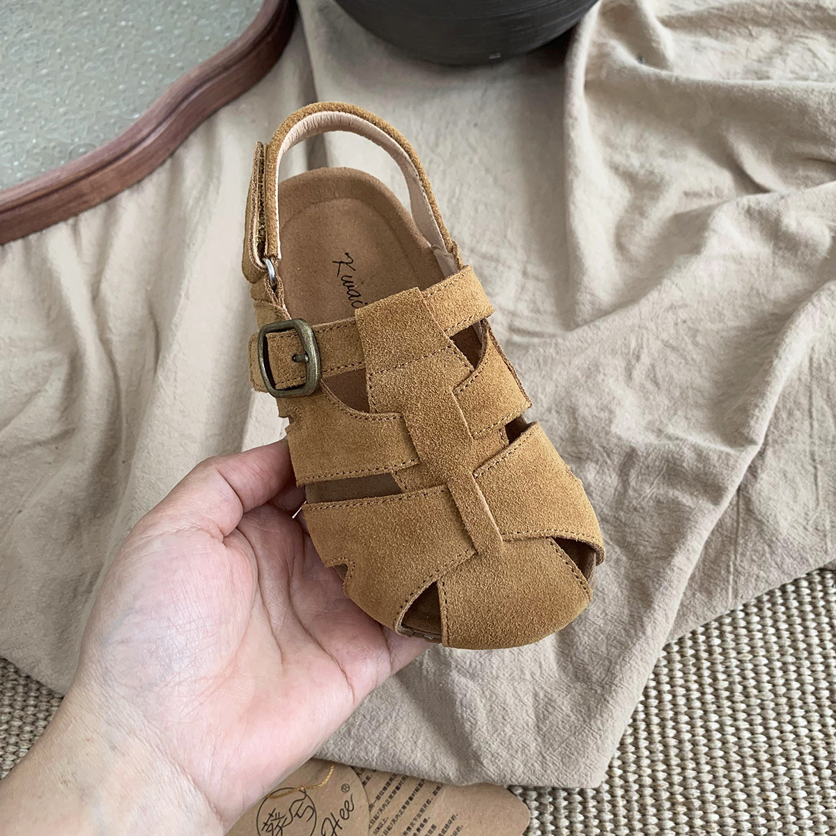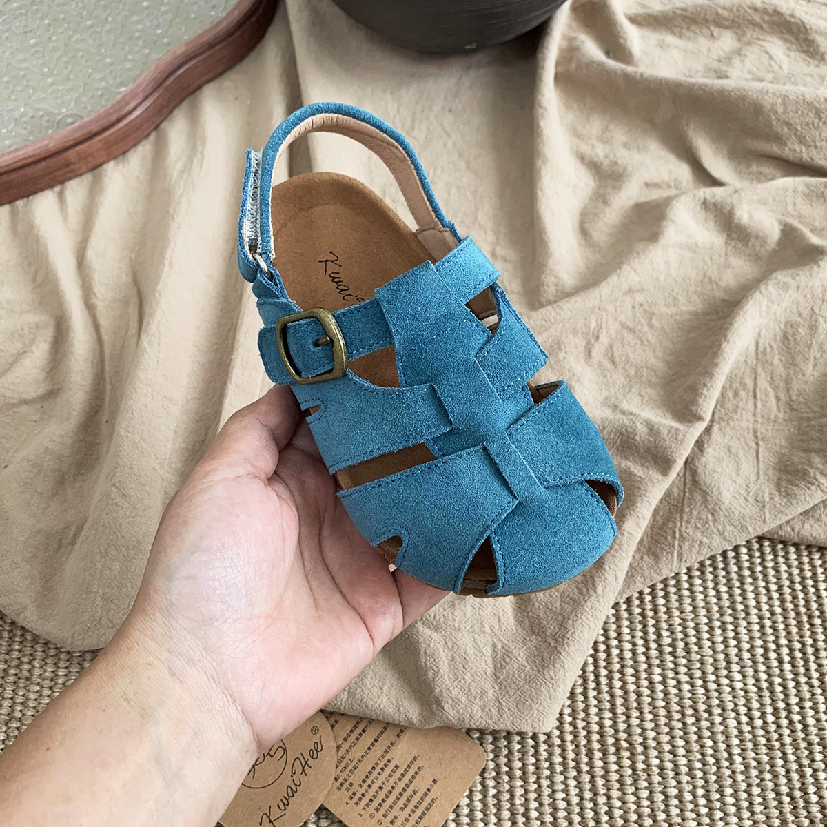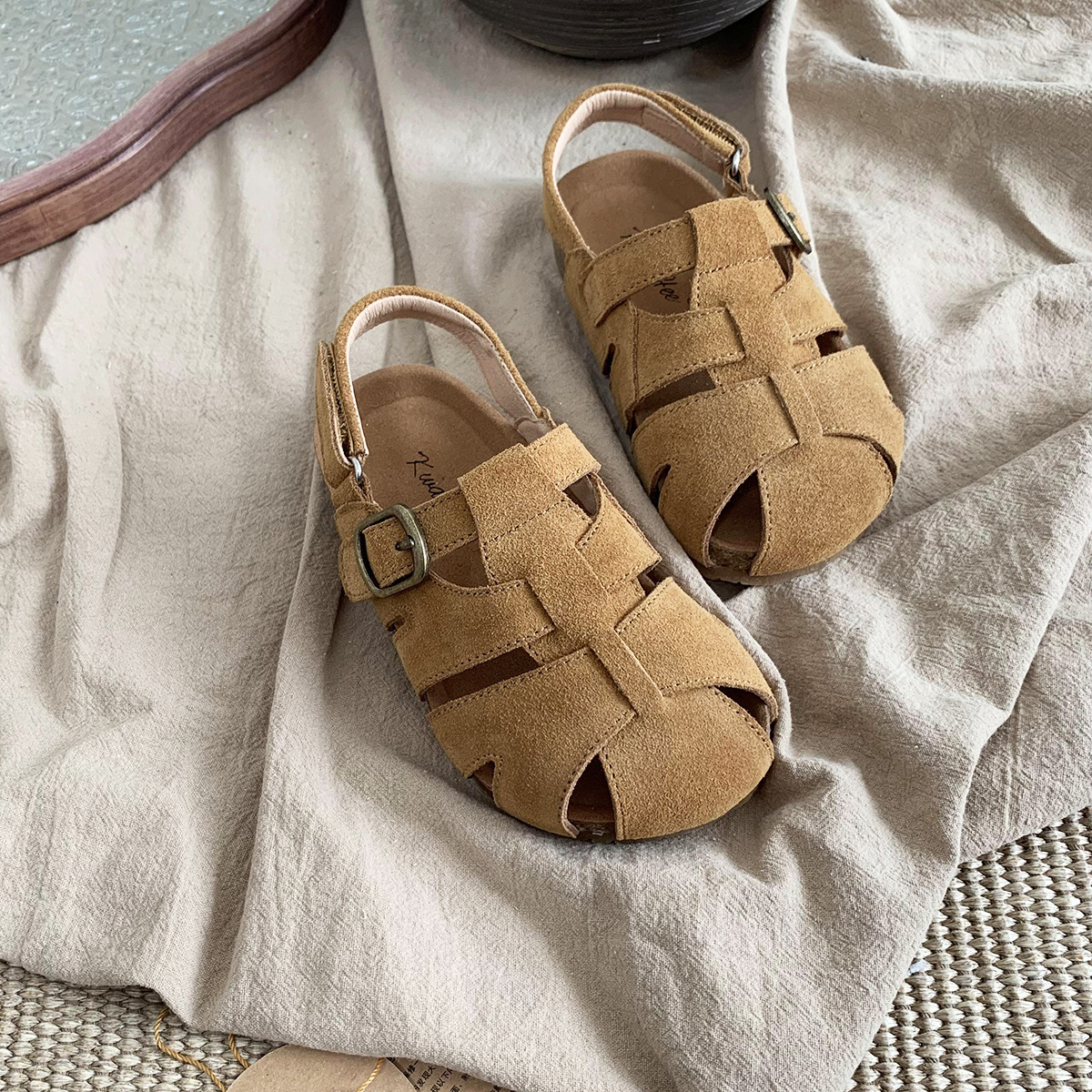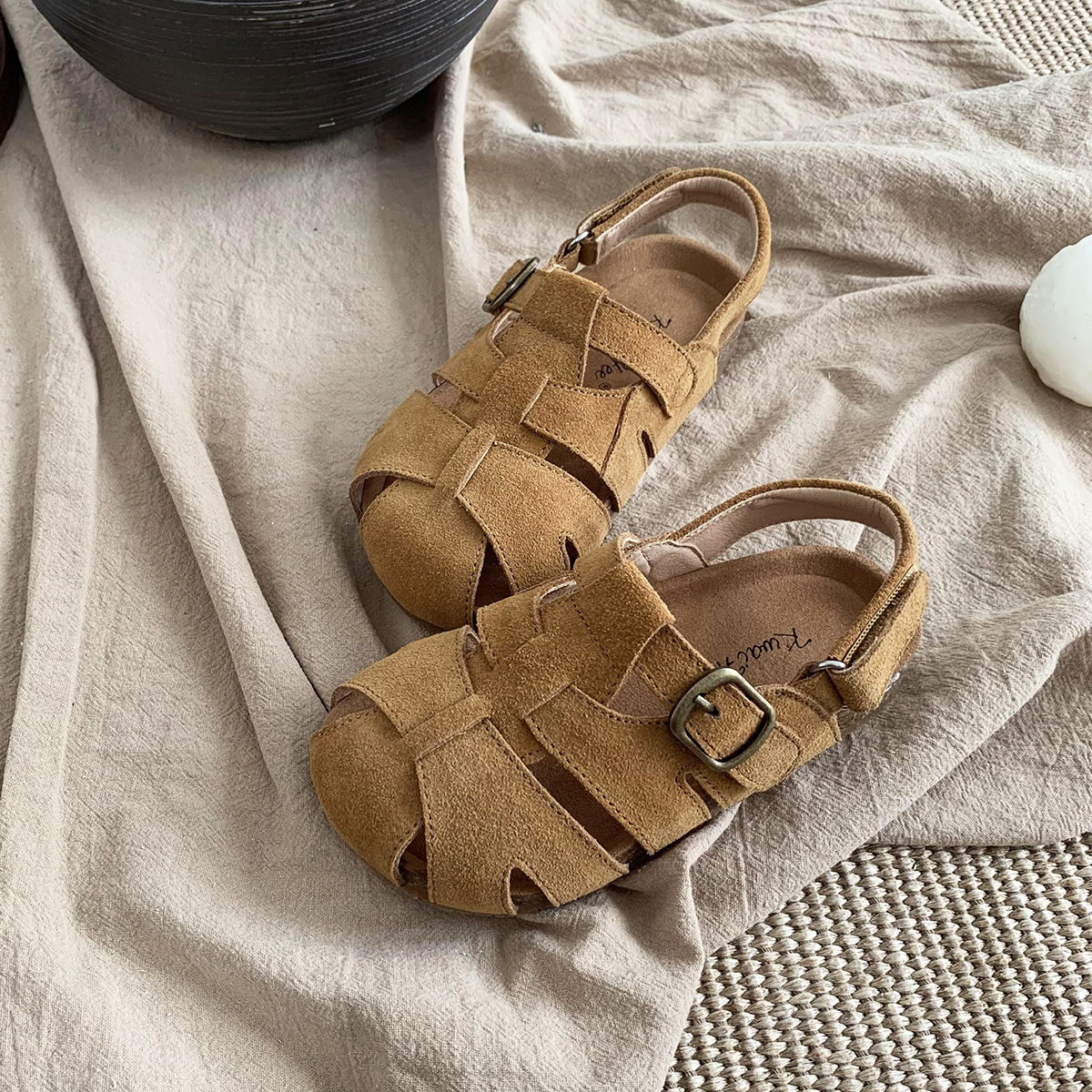여름 새로운 대외 무역 폭발 Bocken 신발 어린이 부드러운 단독 짠 비치 신발 대형 소녀 가죽 샌들 배치스토어 가기