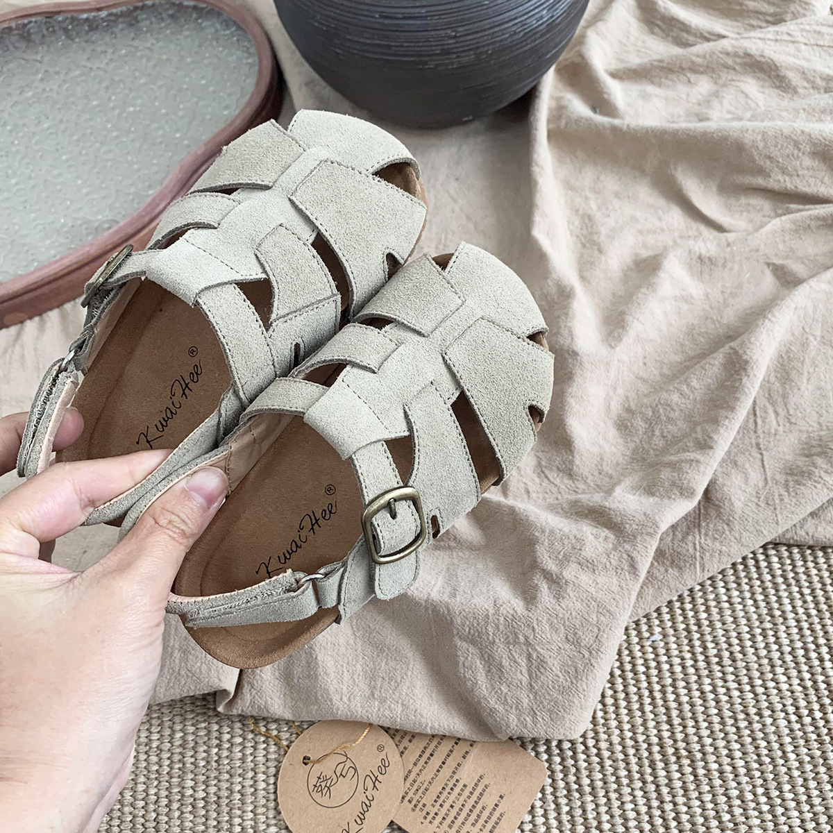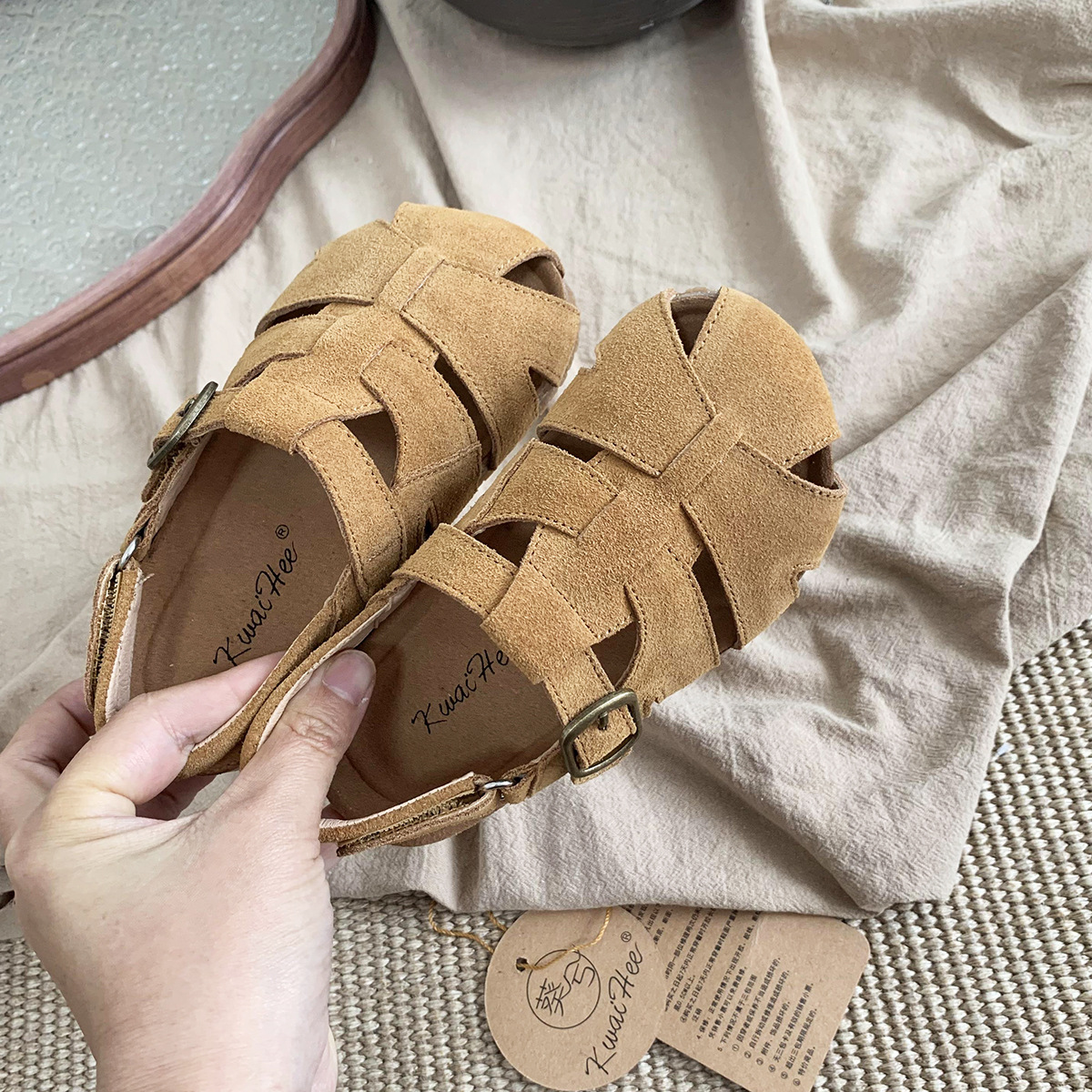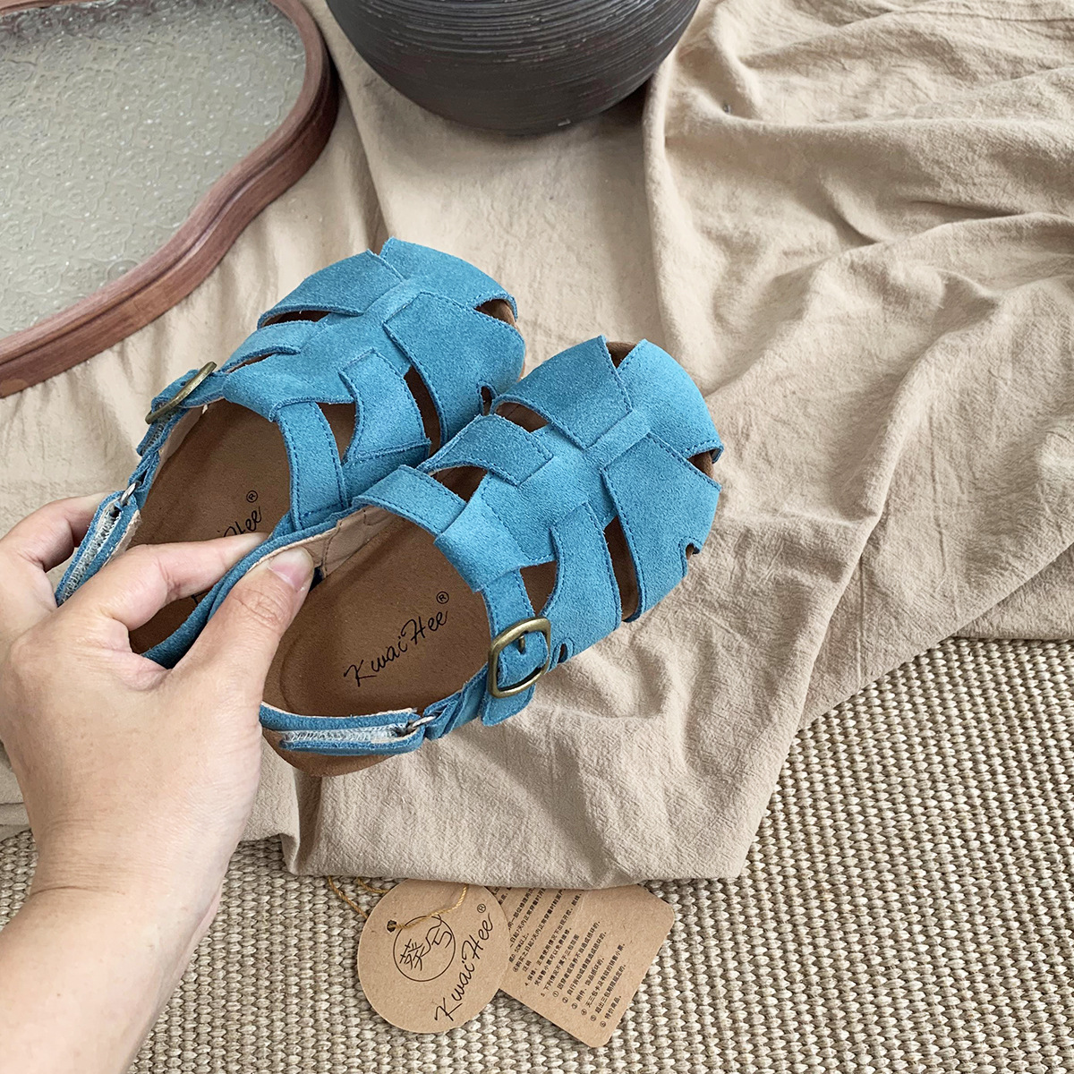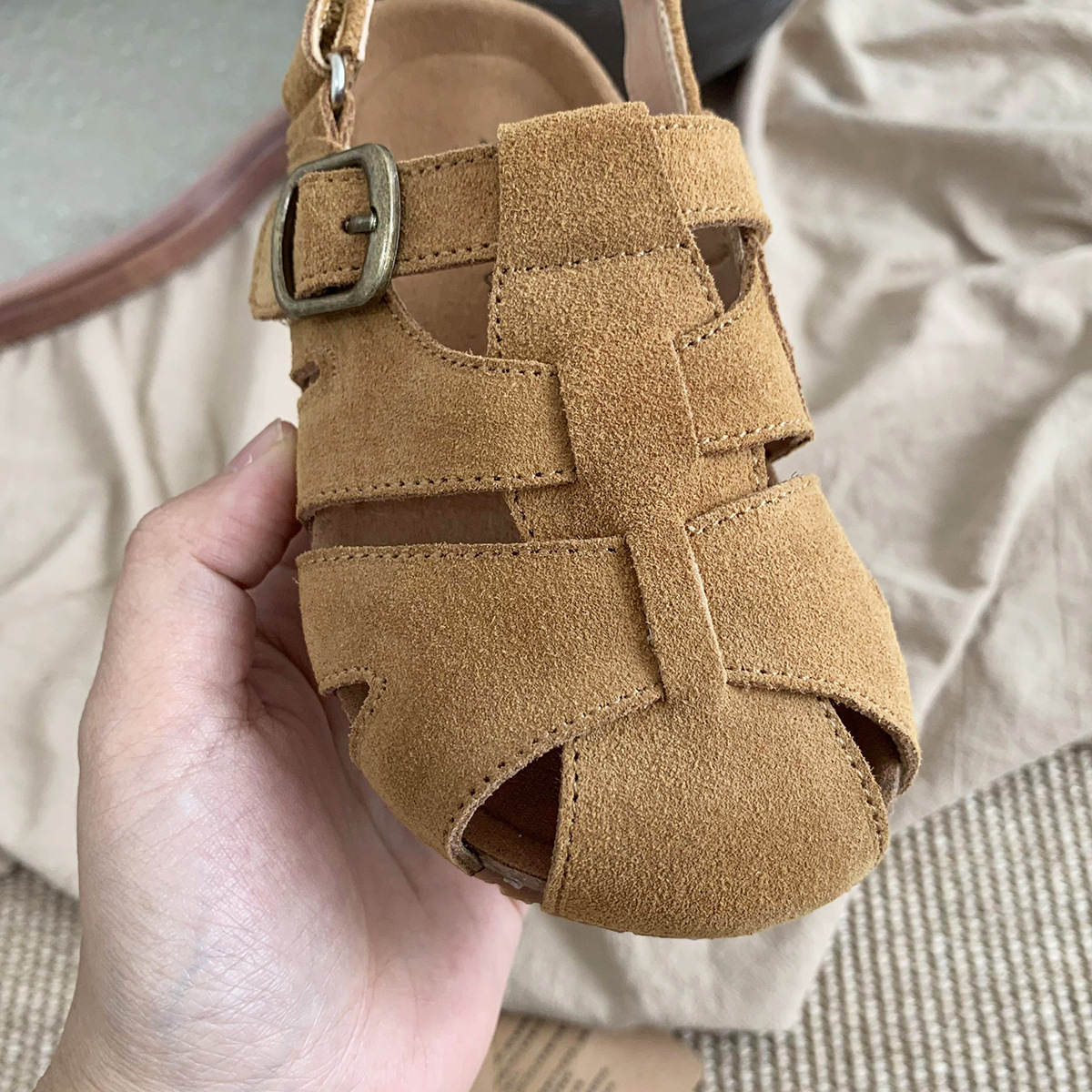 여름 새로운 대외 무역 폭발 Bocken 신발 어린이 부드러운 단독 짠 비치 신발 대형 소녀 가죽 샌들 배치스토어 가기