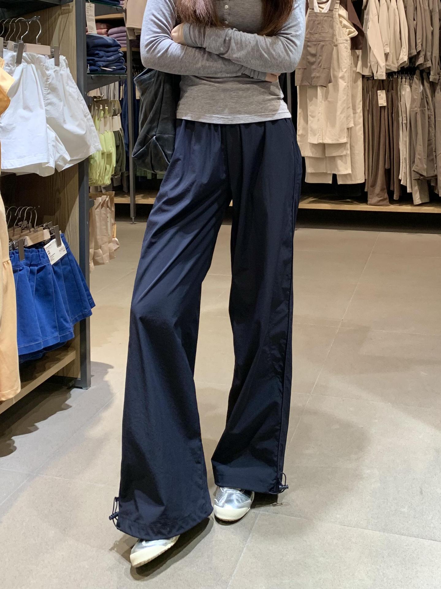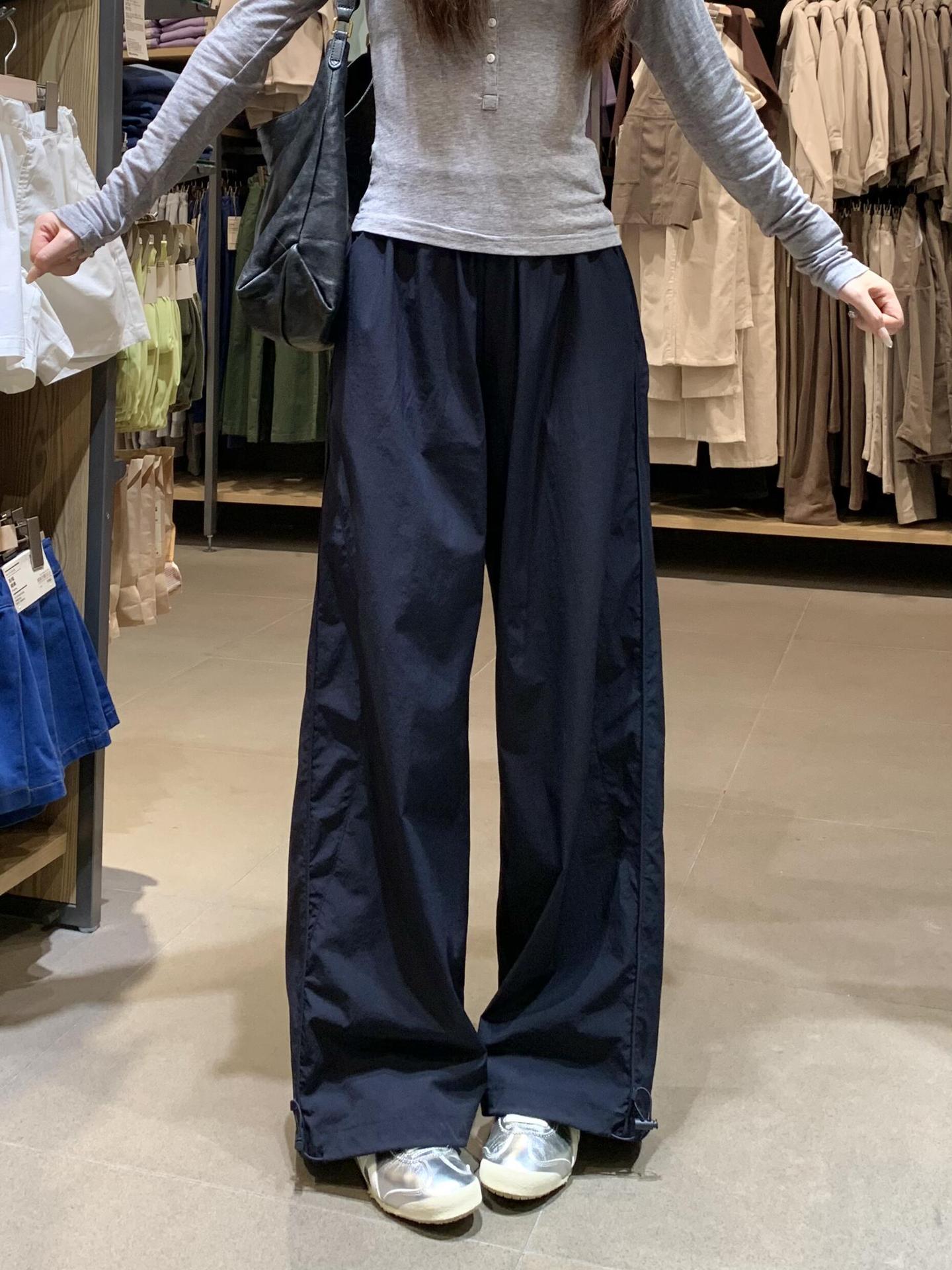봄, 가을, 여름 여성용 아메리칸 하이킹 작업복, 하이웨이스트, 루즈, 쁘띠, 와이드 레그, 아웃도어 속건성 벨벳 스웨트팬츠스토어 가기