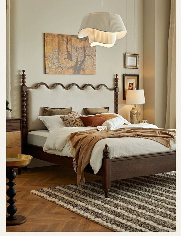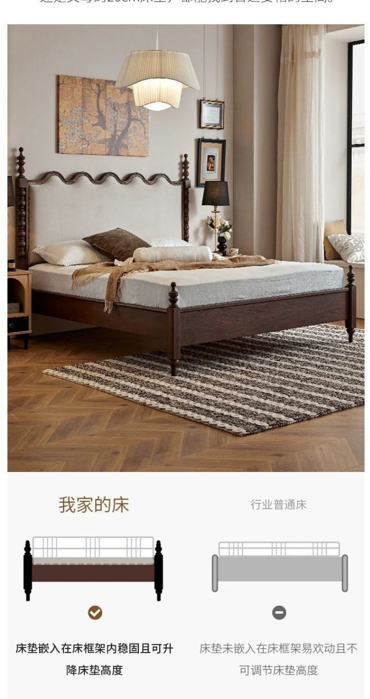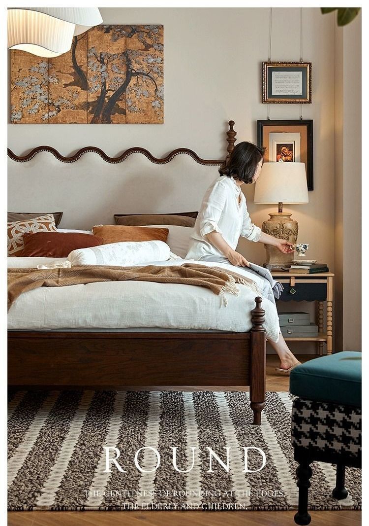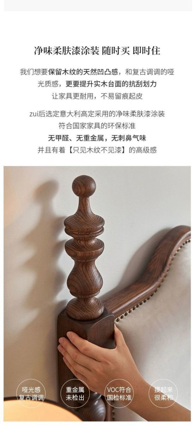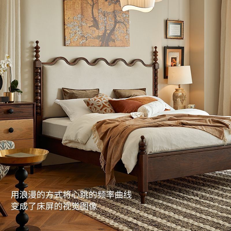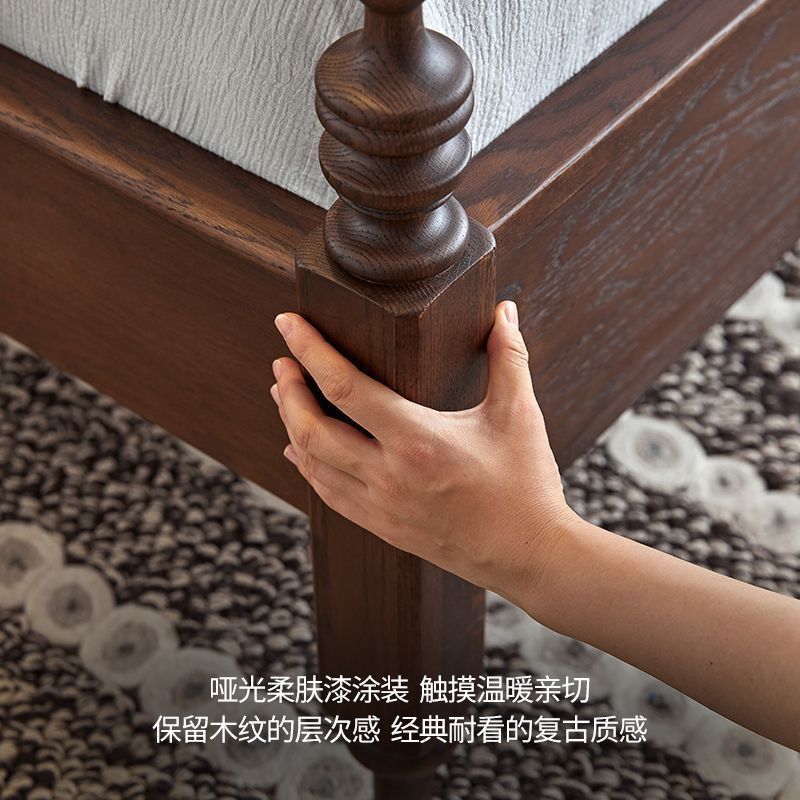 프랑스 복고풍 단단한 나무 침대 재 중세 더블 침대 1.8 미터 1.5 미터 마스터 침실 가구 미국 부드러운 가방 침대스토어 가기