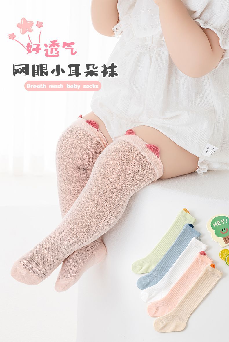 아기 양말 도매 대외 무역 국경 여름 얇은 메쉬 통기성 긴 튜브 면 양말 소년 소녀 아기 모기 양말스토어 가기
