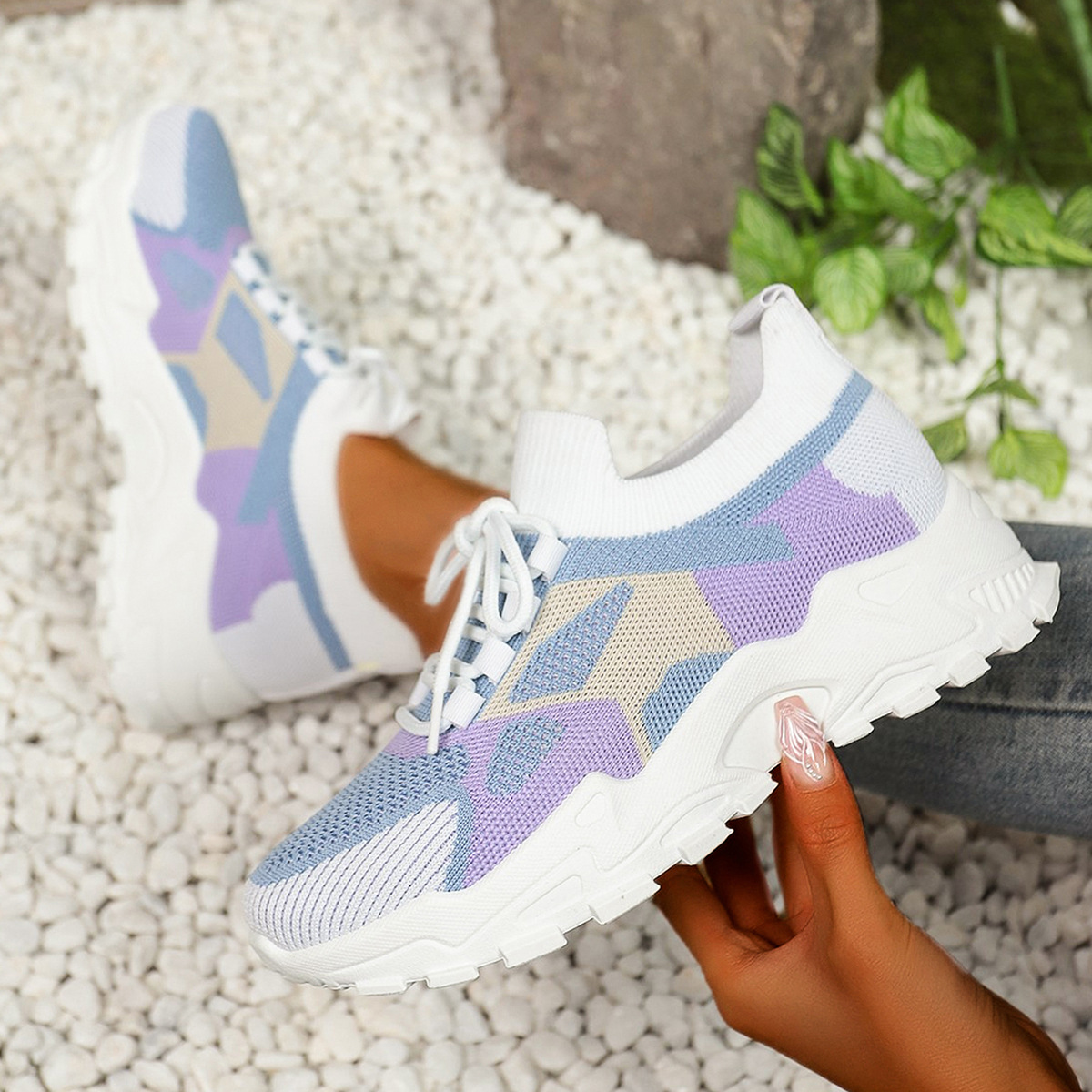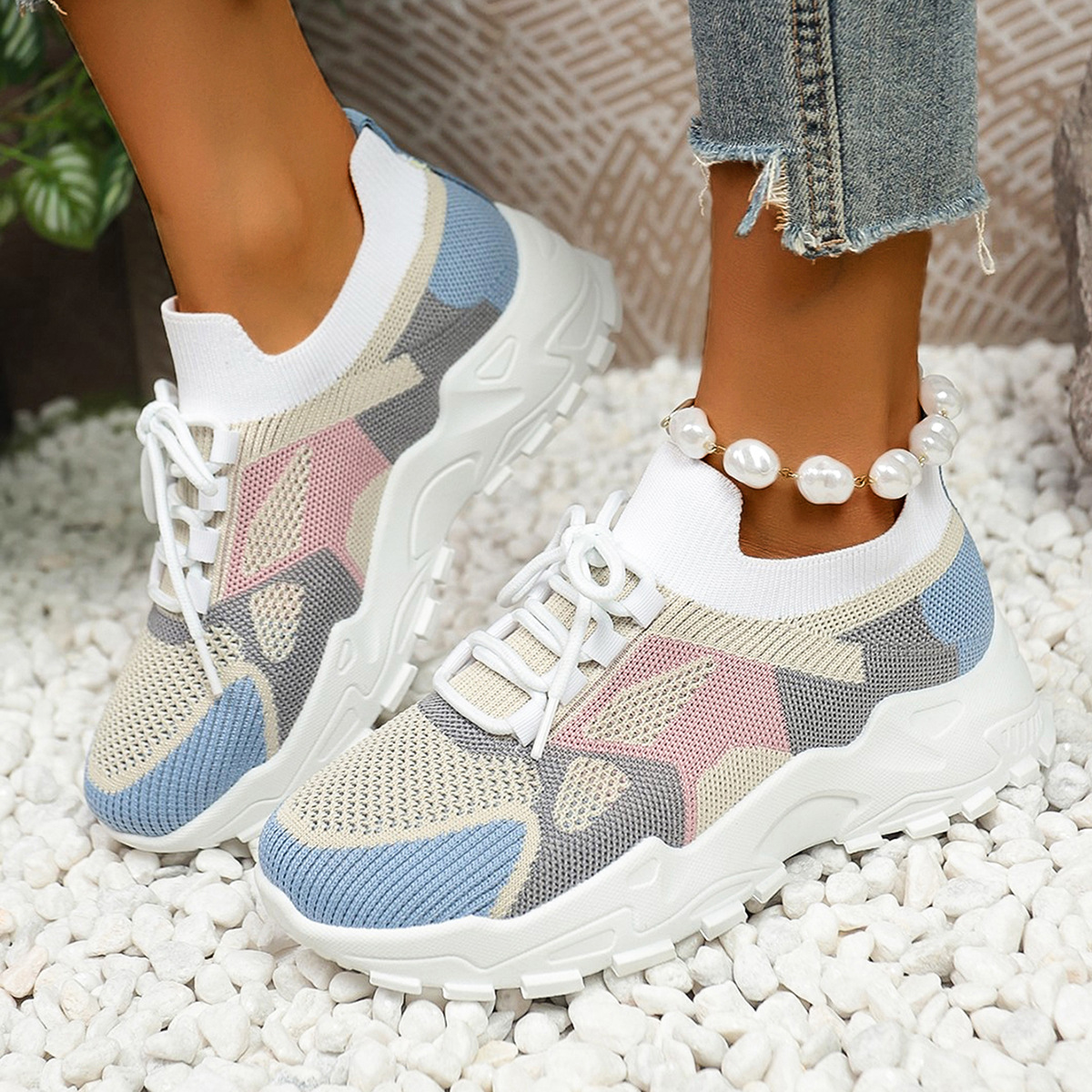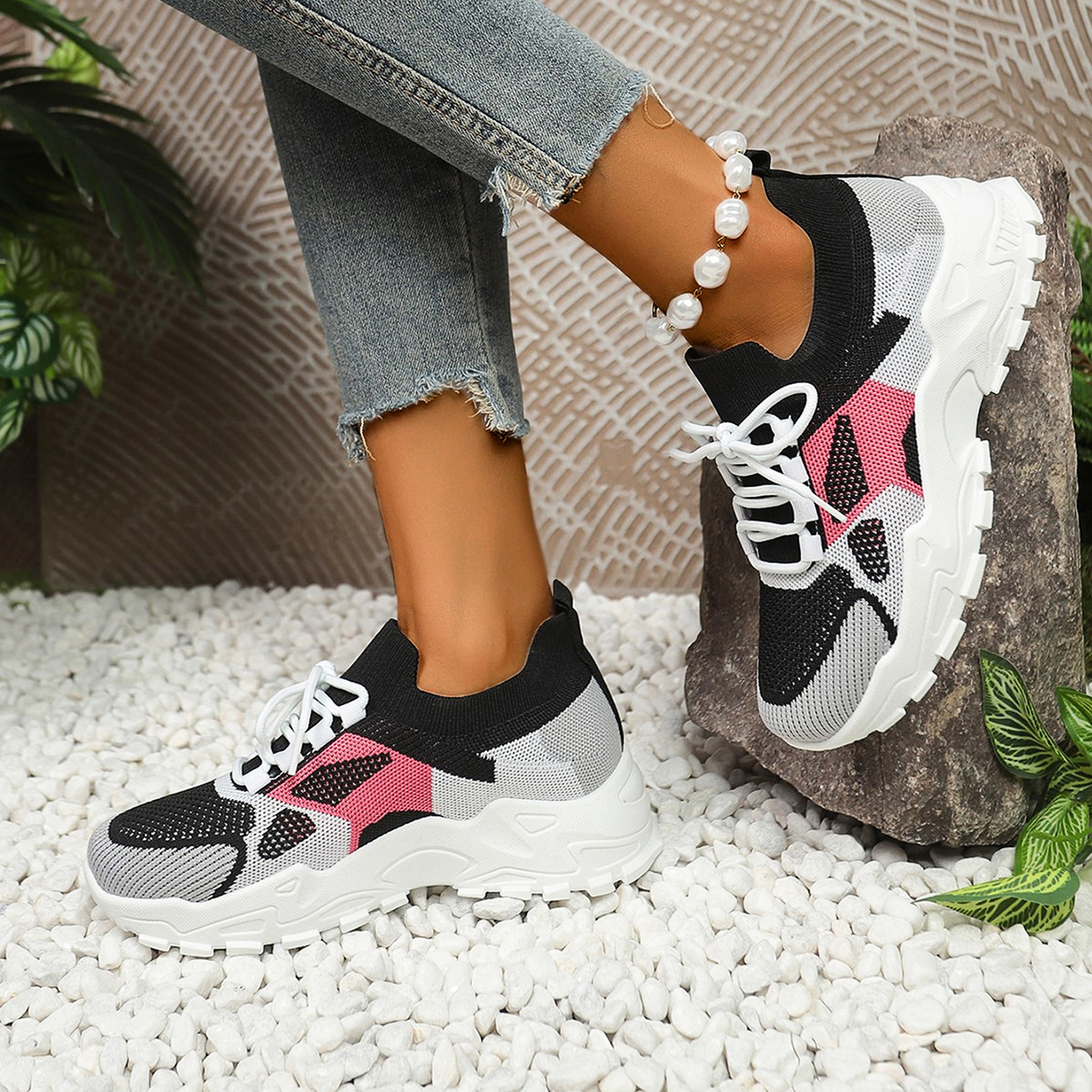 2025 새로운 한국 스타일 캐주얼 초경량 여성 신발 아빠 신발 여성 신발 플라이 짠 메쉬 신발 여름 통기성 스포츠 신발