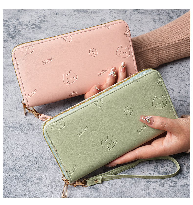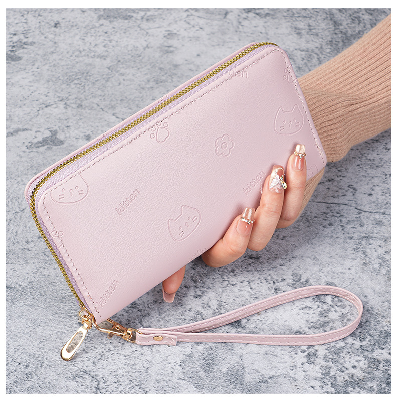 2025 한국식 새로운 싱글 지퍼 다기능 긴 여성용 지갑 유행 간단한 만화 지갑 클러치 가방스토어 가기