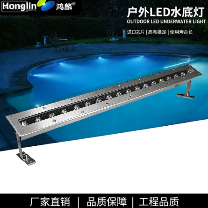 LED 긴 수중 빛 야외 방수 스트립 임베디드 스테인레스 스틸 스트립 수영장 빛 9W