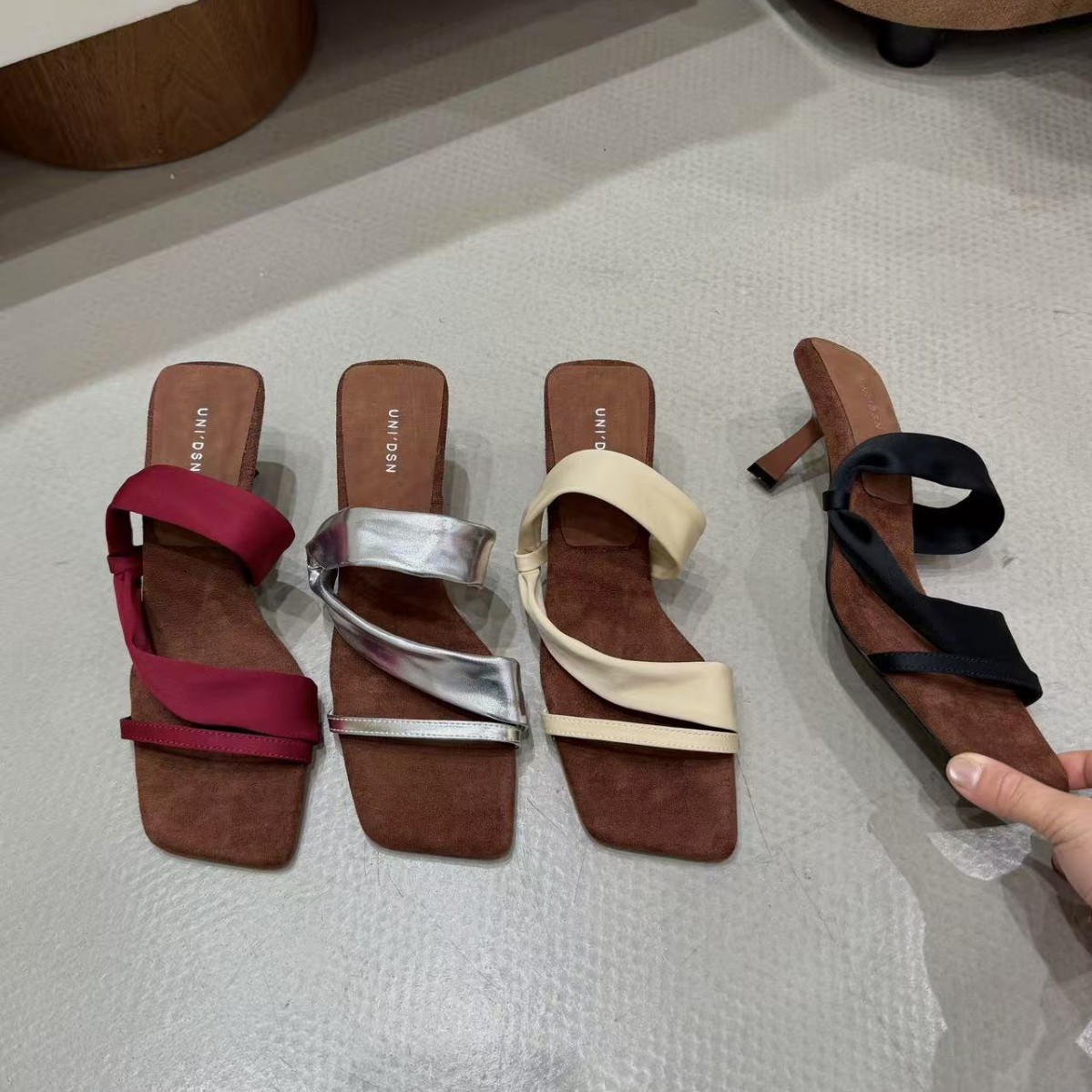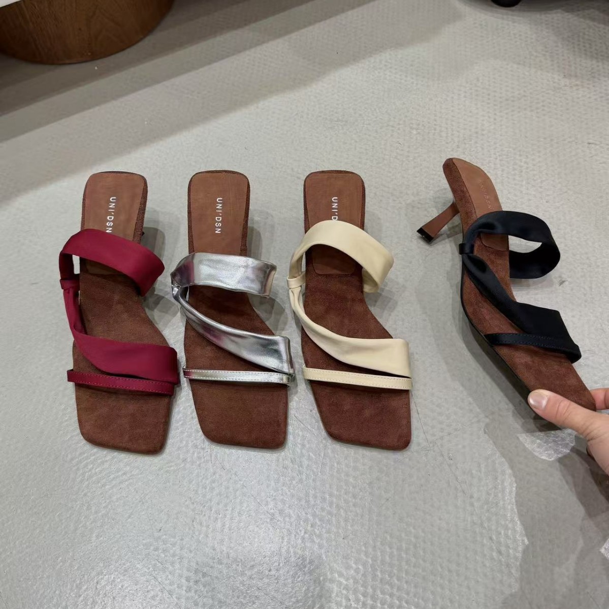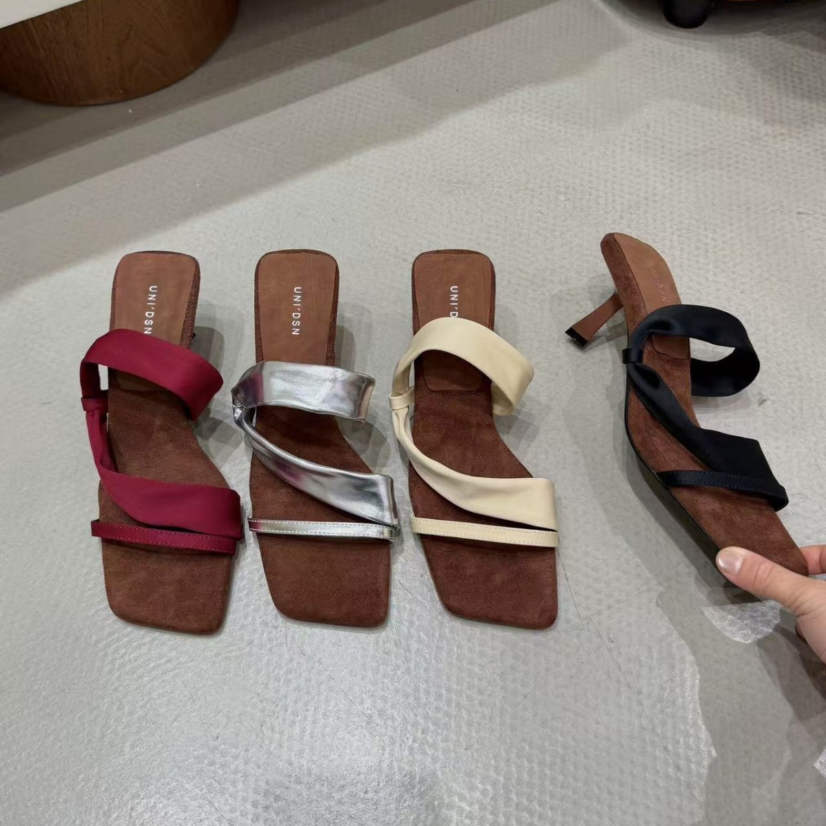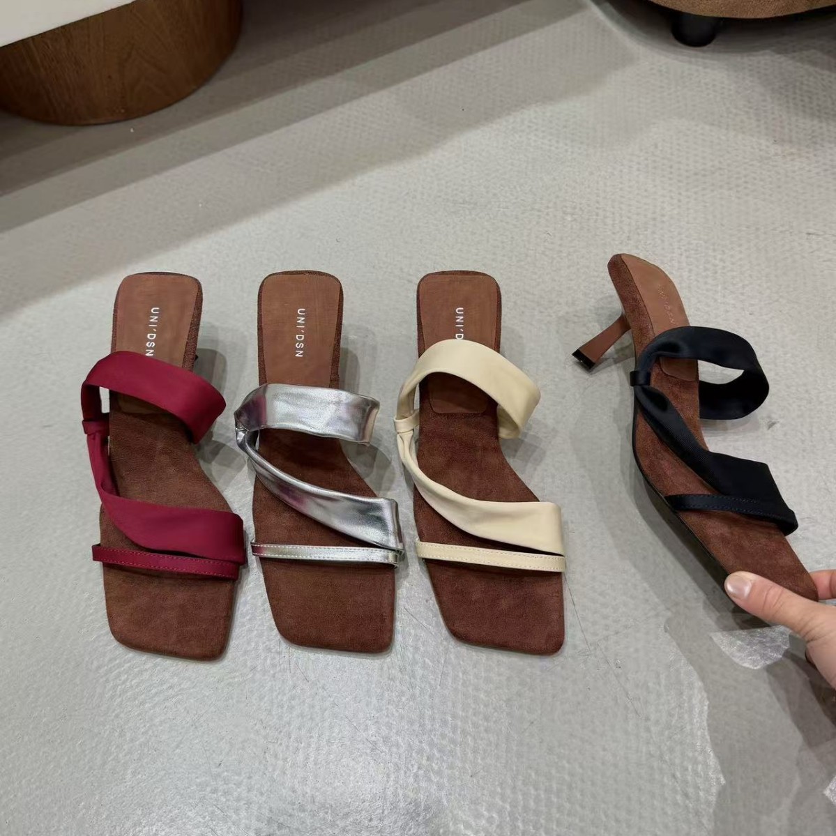 레트로 핫걸 스타일! 여성용 스퀘어 토 스웨이드 스트랩 스틸레토 샌들 여름 한국식 스트랩 오픈 토 샌들