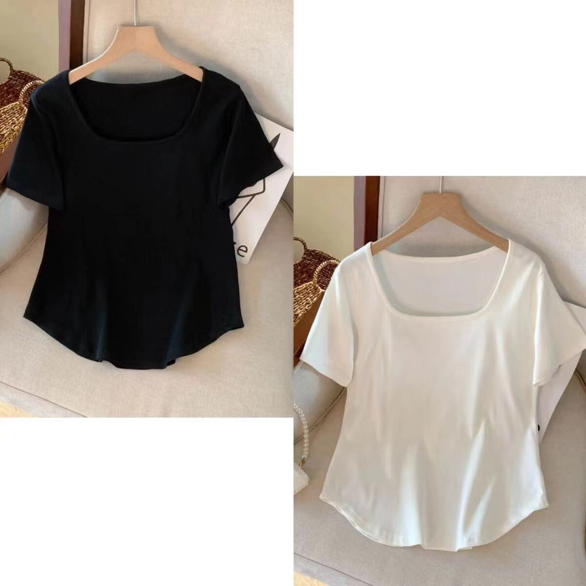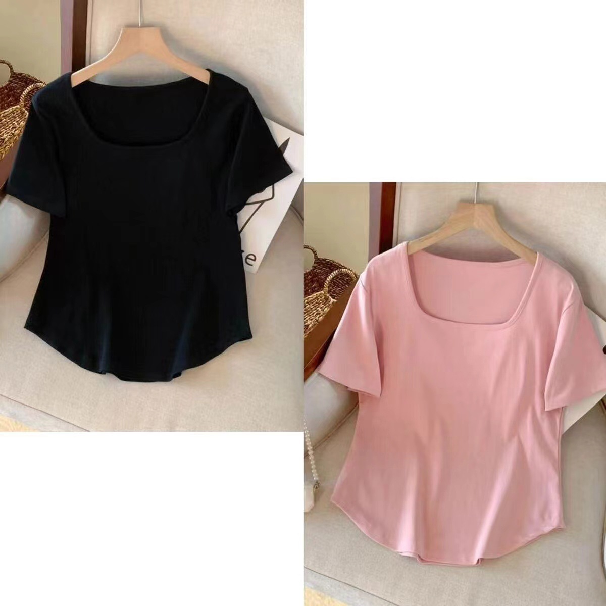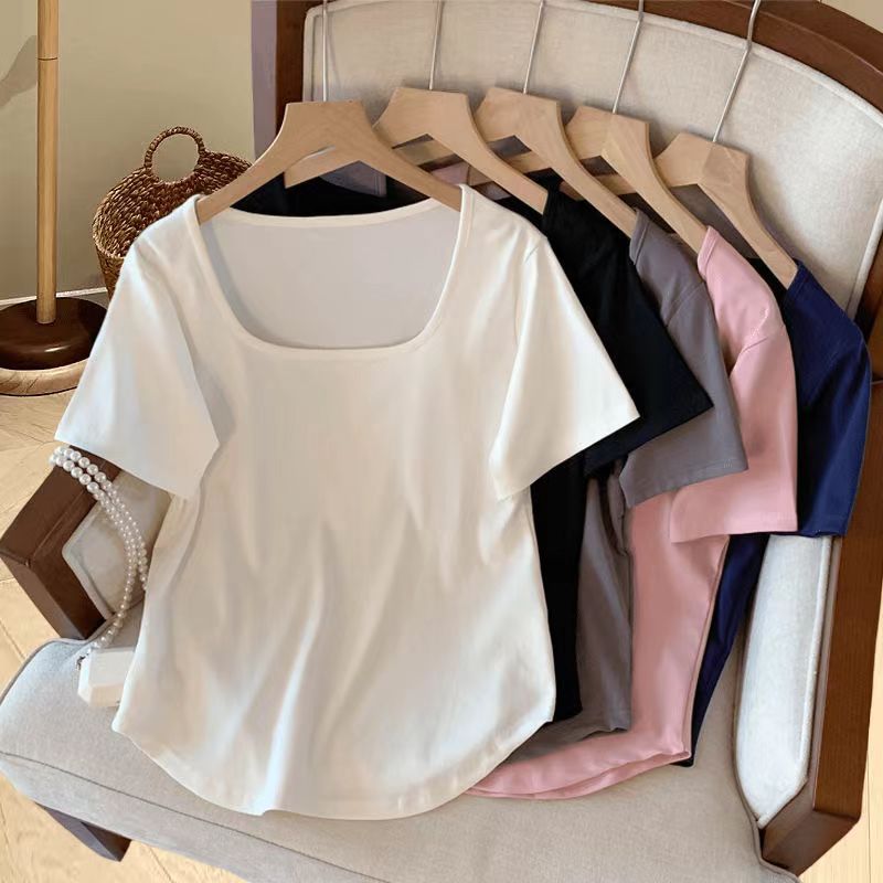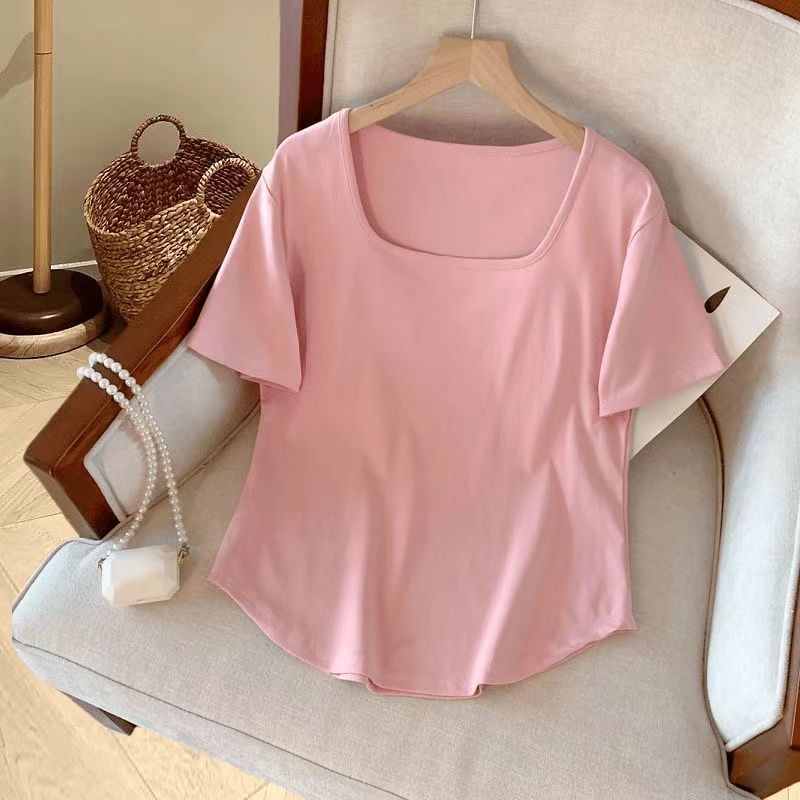 모달면 플러스 사이즈 통통녀 배꼽 덮개 어깨 광장 칼라 반팔 티셔츠 여성 여름 한국식 슬리밍베이스 셔츠 탑