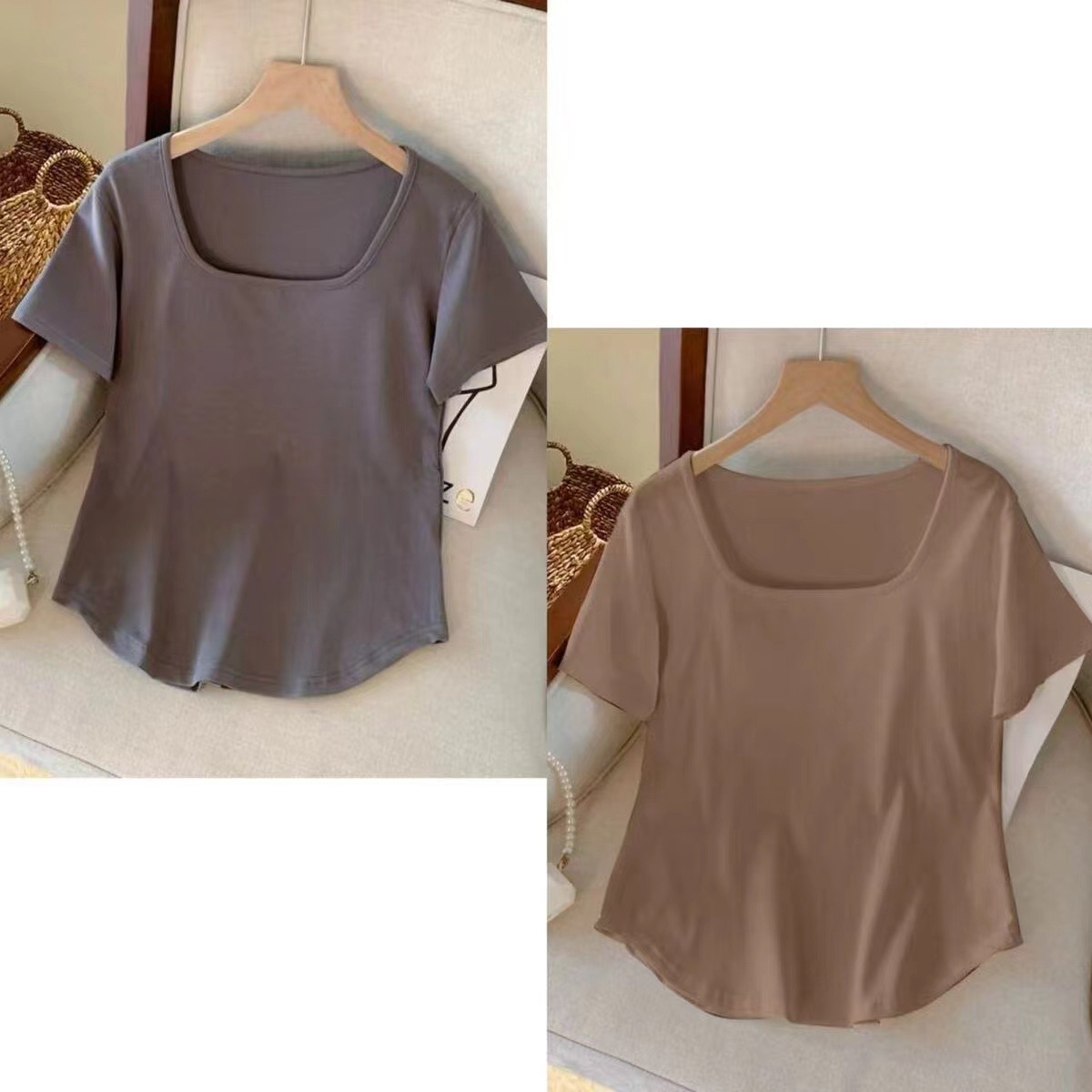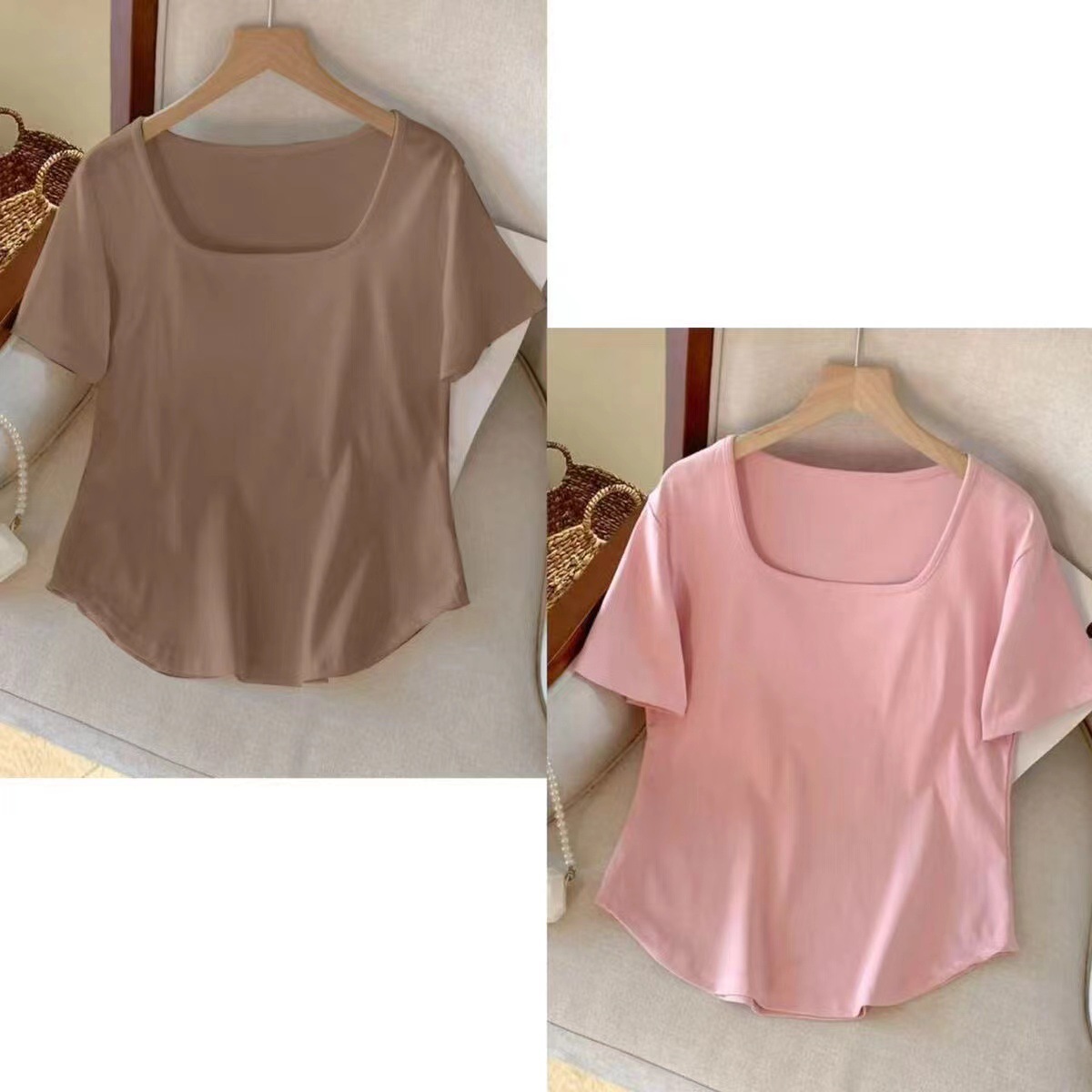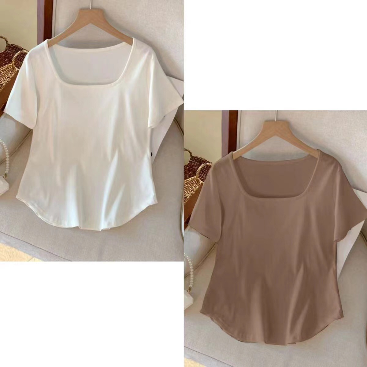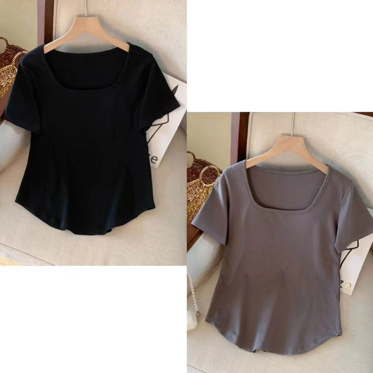 모달면 플러스 사이즈 통통녀 배꼽 덮개 어깨 광장 칼라 반팔 티셔츠 여성 여름 한국식 슬리밍베이스 셔츠 탑