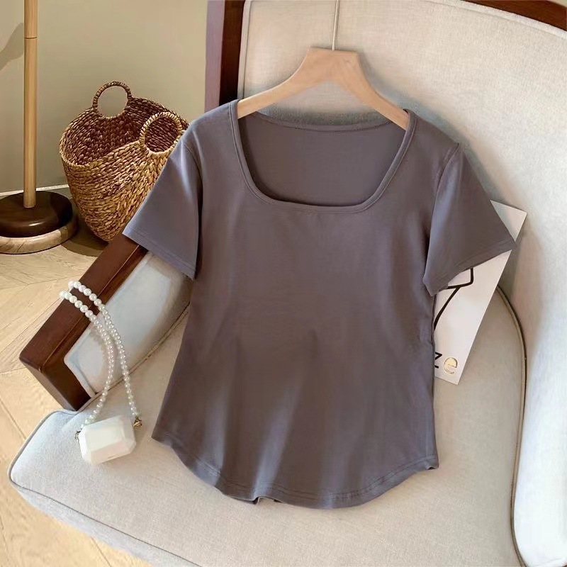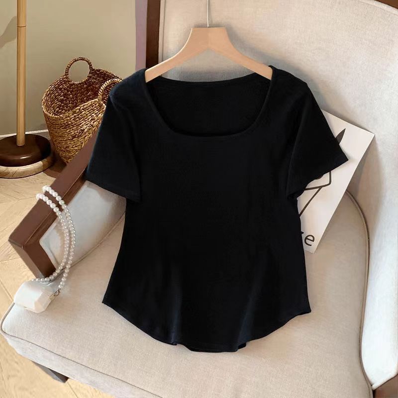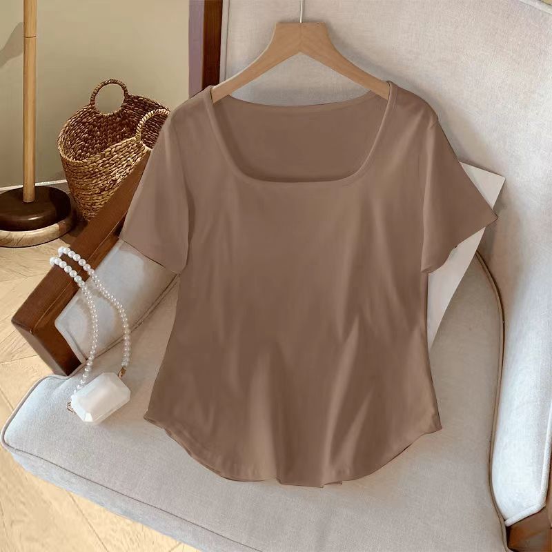 모달면 플러스 사이즈 통통녀 배꼽 덮개 어깨 광장 칼라 반팔 티셔츠 여성 여름 한국식 슬리밍베이스 셔츠 탑스토어 가기
