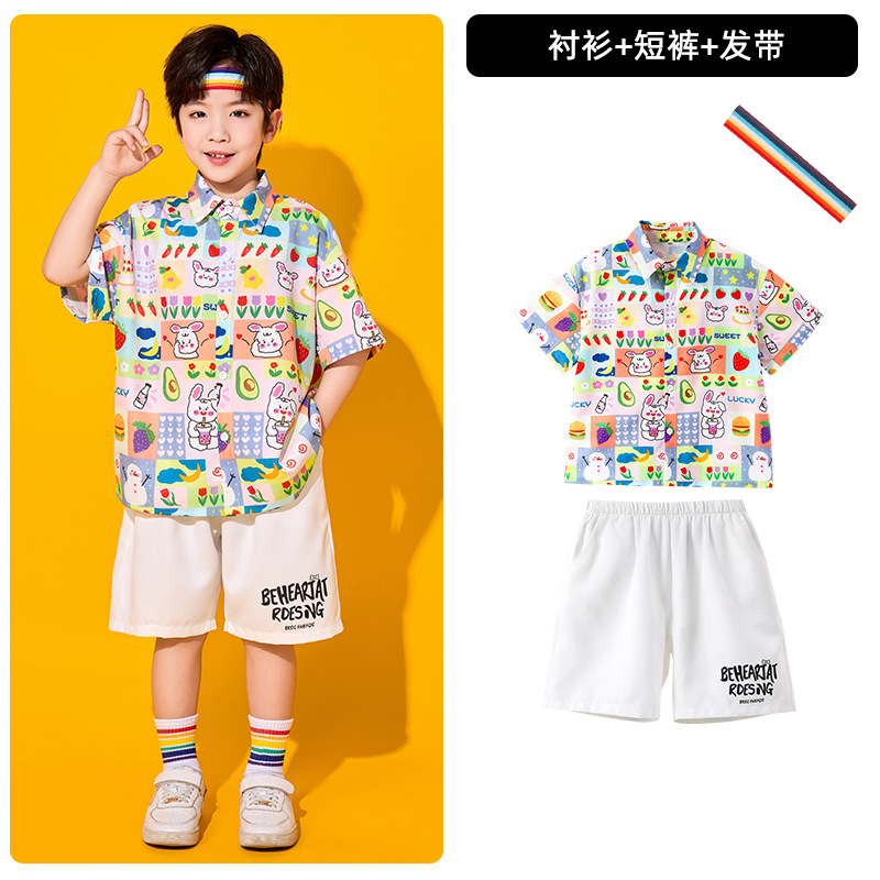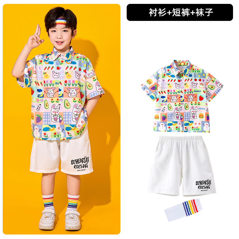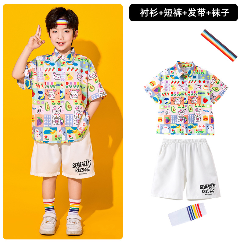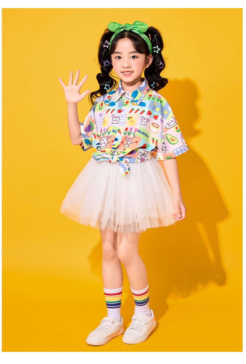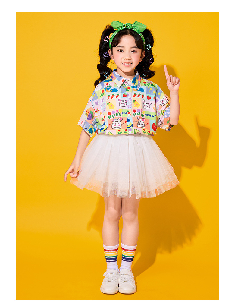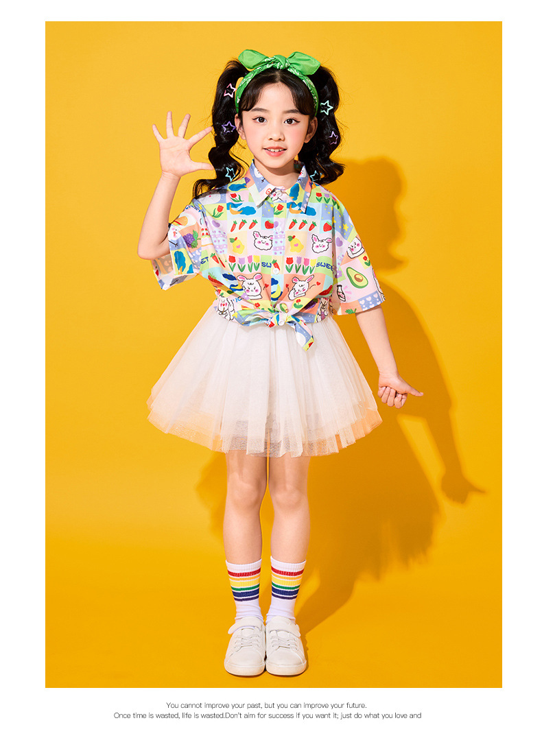 어린이 치어리딩 의상, 초등학교 체육복, 여아 셔츠, 거즈 스커트, 유치원 합창복