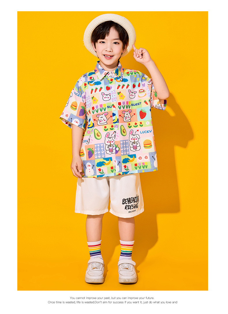 • 반팔 셔츠 + 흰색 반바지 + 무지개 양말