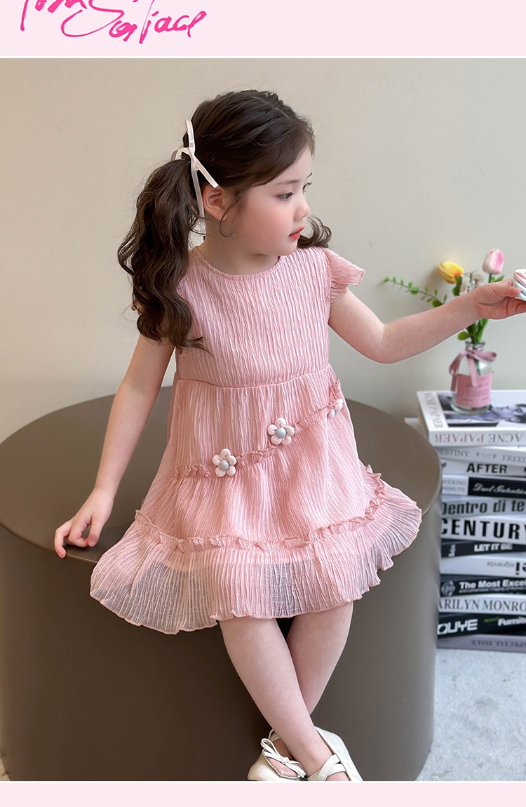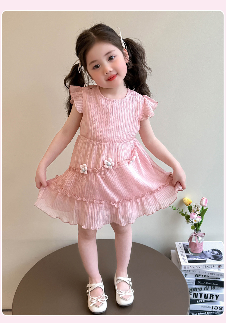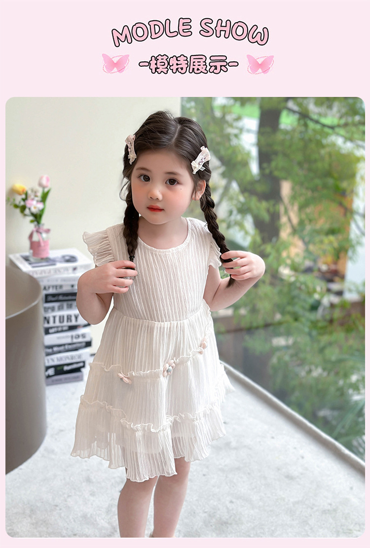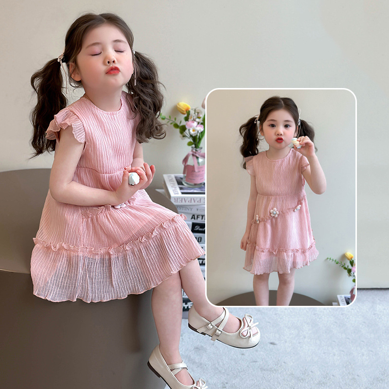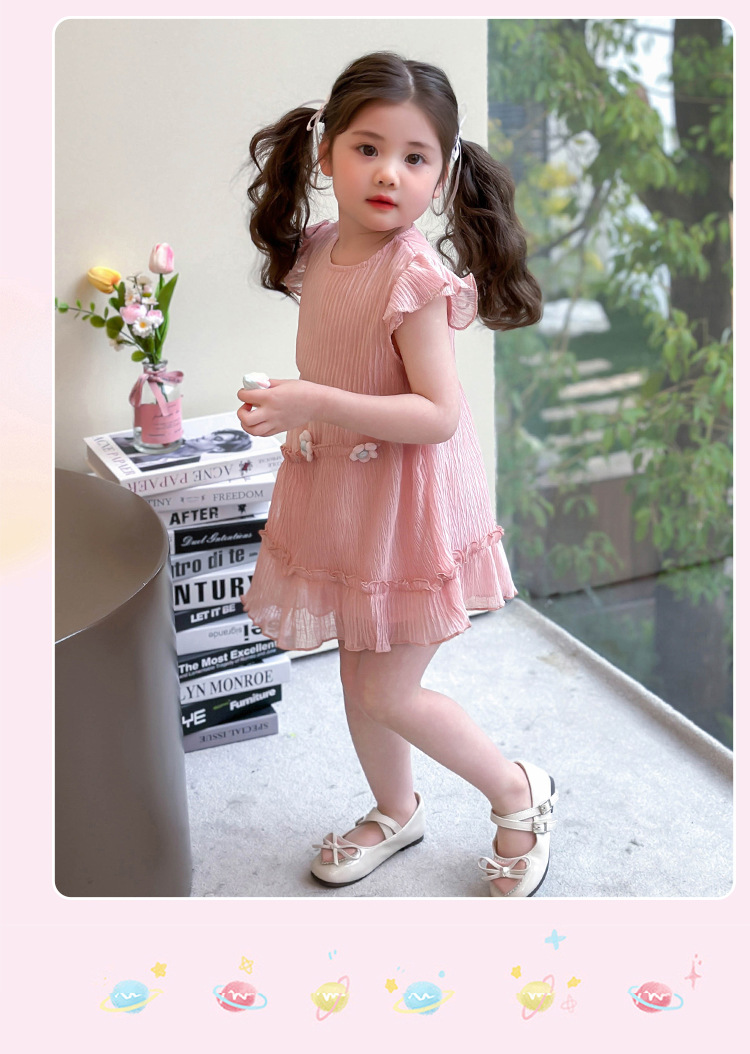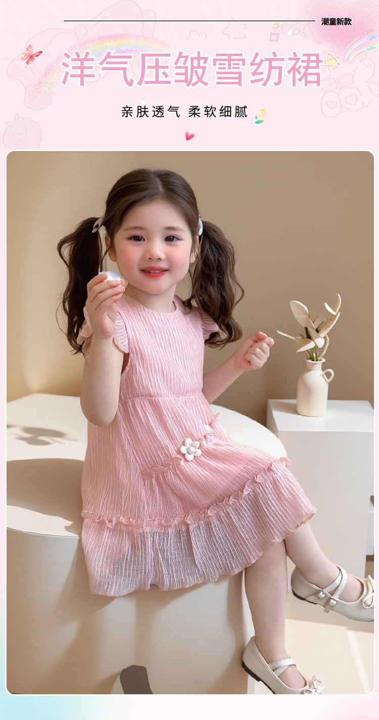 여자 크럼플 쉬폰 원피스 2025 여름 새로운 패션 소녀 세련된 공주 원피스 어린이 여름 원피스스토어 가기