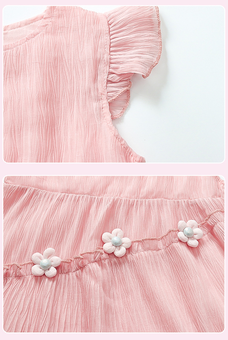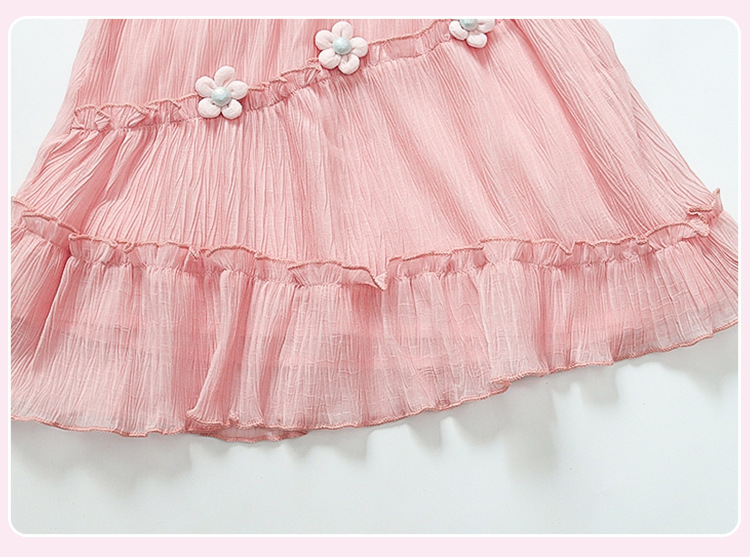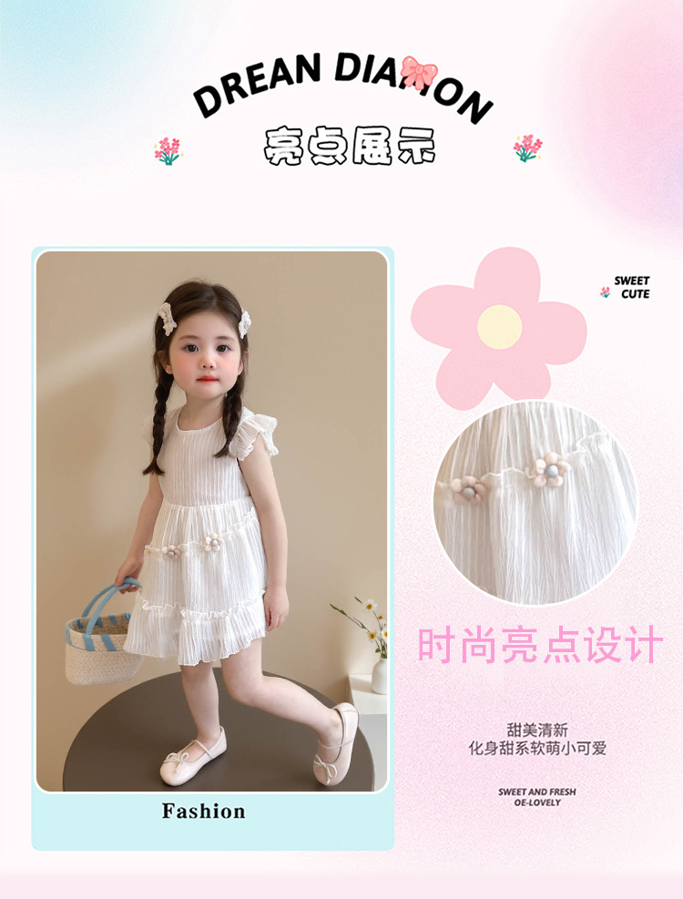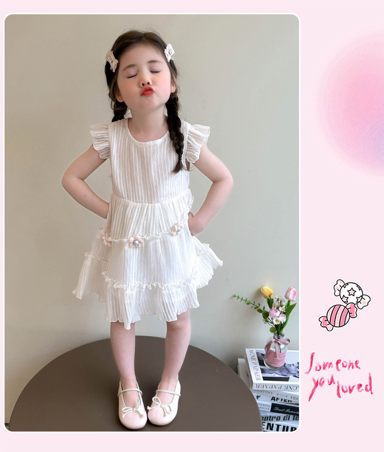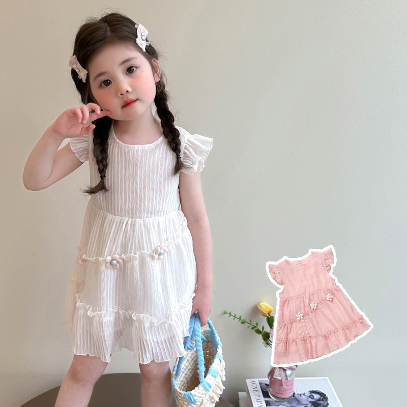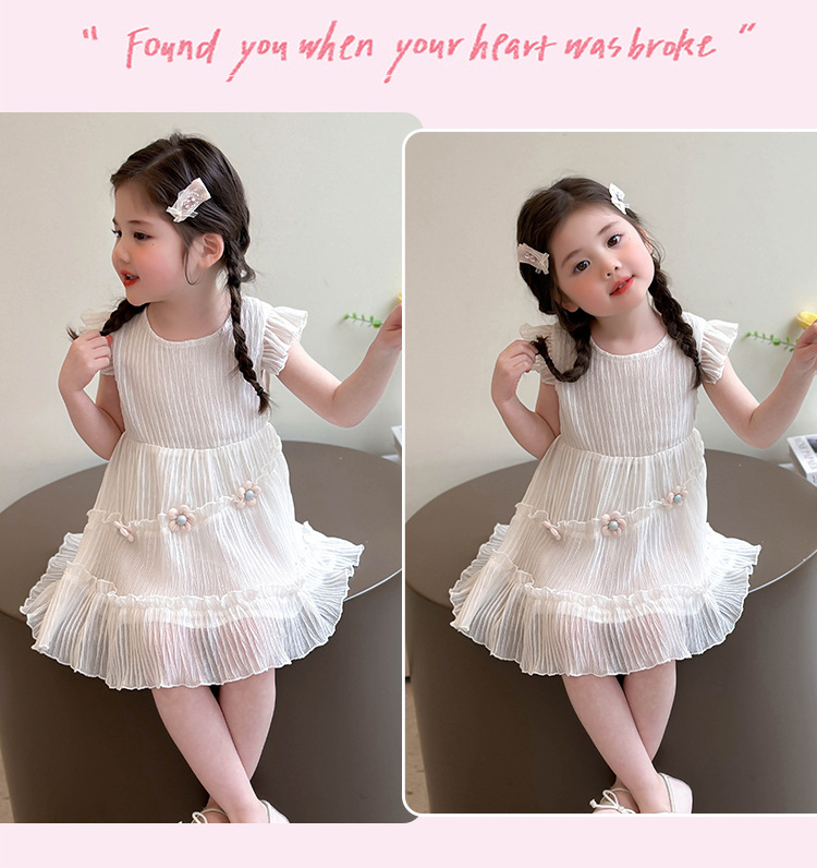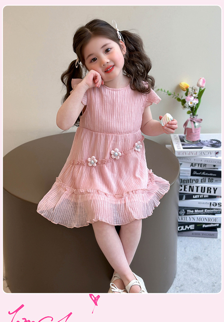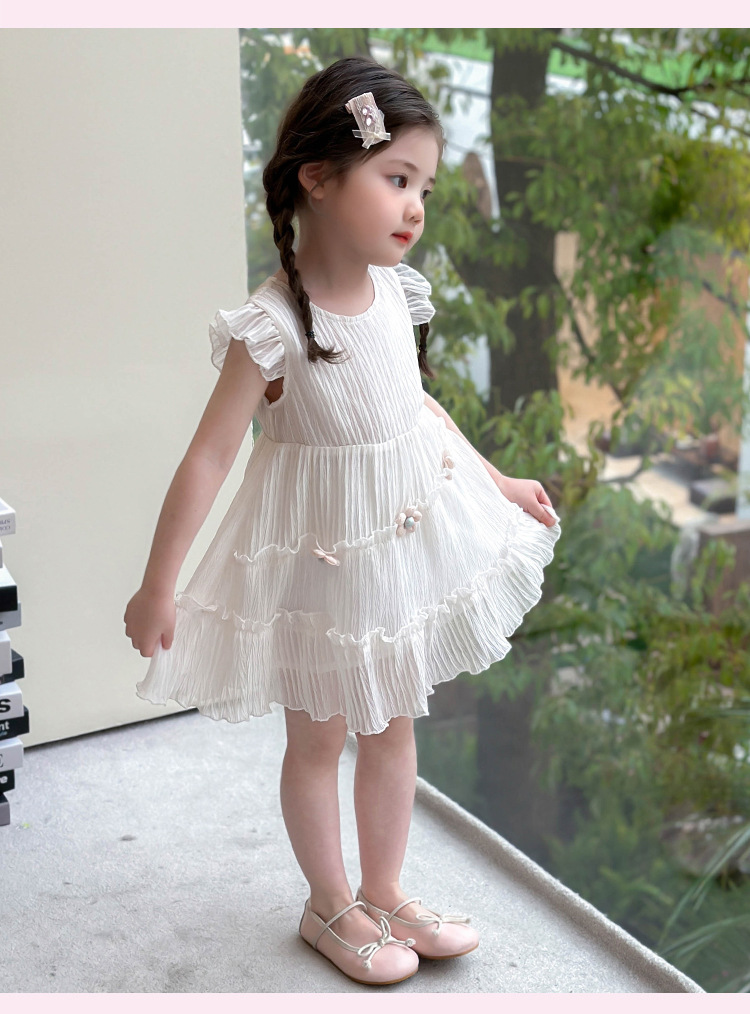 여자 크럼플 쉬폰 원피스 2025 여름 새로운 패션 소녀 세련된 공주 원피스 어린이 여름 원피스스토어 가기
