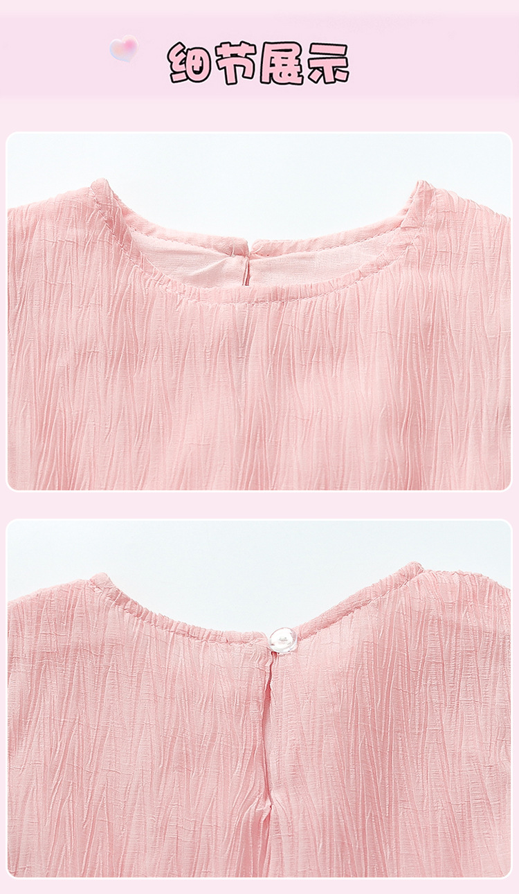 여자 크럼플 쉬폰 원피스 2025 여름 새로운 패션 소녀 세련된 공주 원피스 어린이 여름 원피스