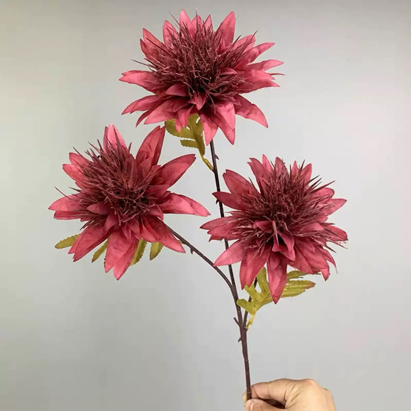 • 3송이 아네모네 꽃 - 와인 레드