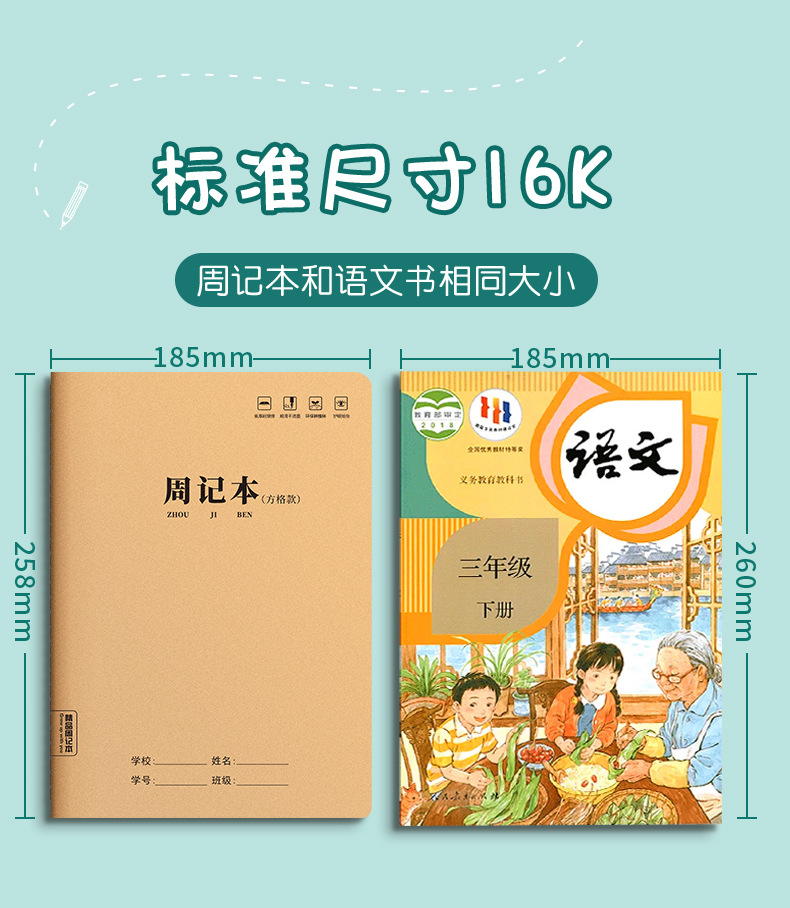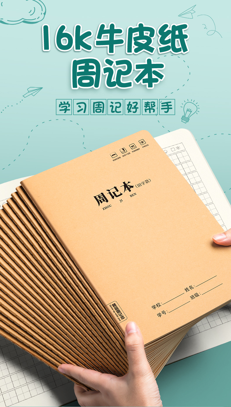 Zhou Ji Ben Kraft 종이 16K 대형 학생 Tian Zi 패드 스퀘어 노트북 간단한 B5 중학교 고등학교 광장