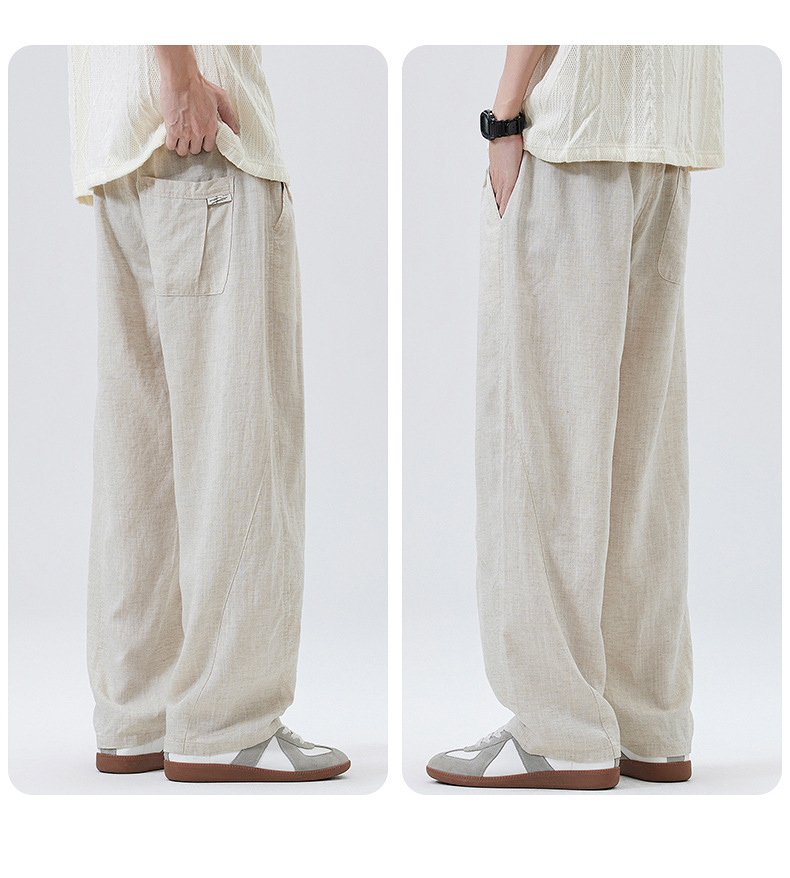 여름 새로운 쿨 Lyocell 리넨 캐주얼 바지 남자 일본 스타일 트렌디 올매치 느슨한 스트레이트 레그 스포츠 바지스토어 가기